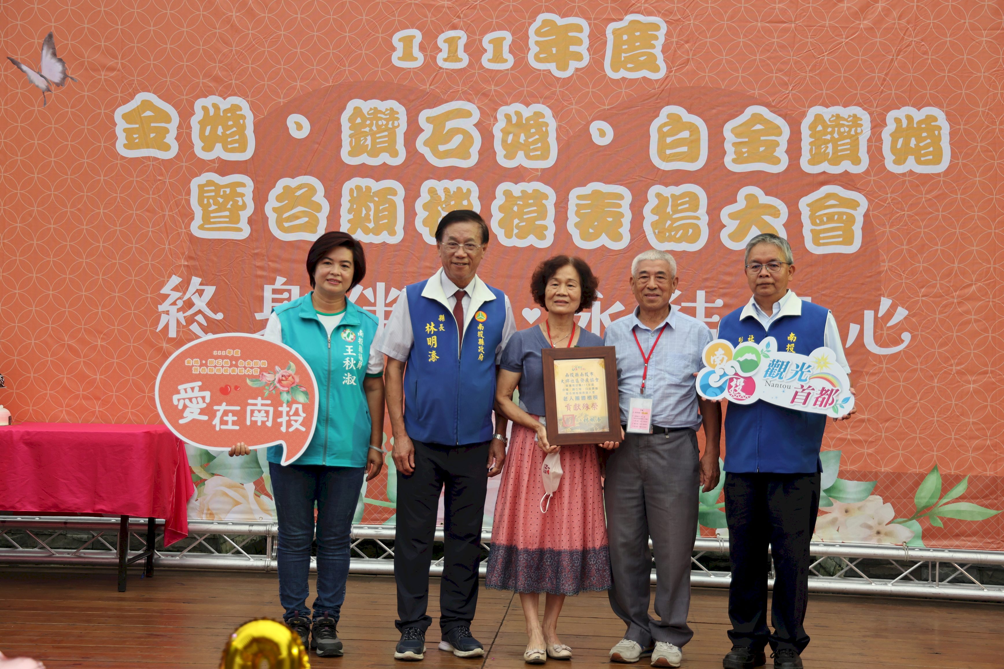 林縣長頒獎表揚111年草屯南投名間水里集集信義6鄉鎮市 金鑽石婚暨長青敬老等楷模表揚