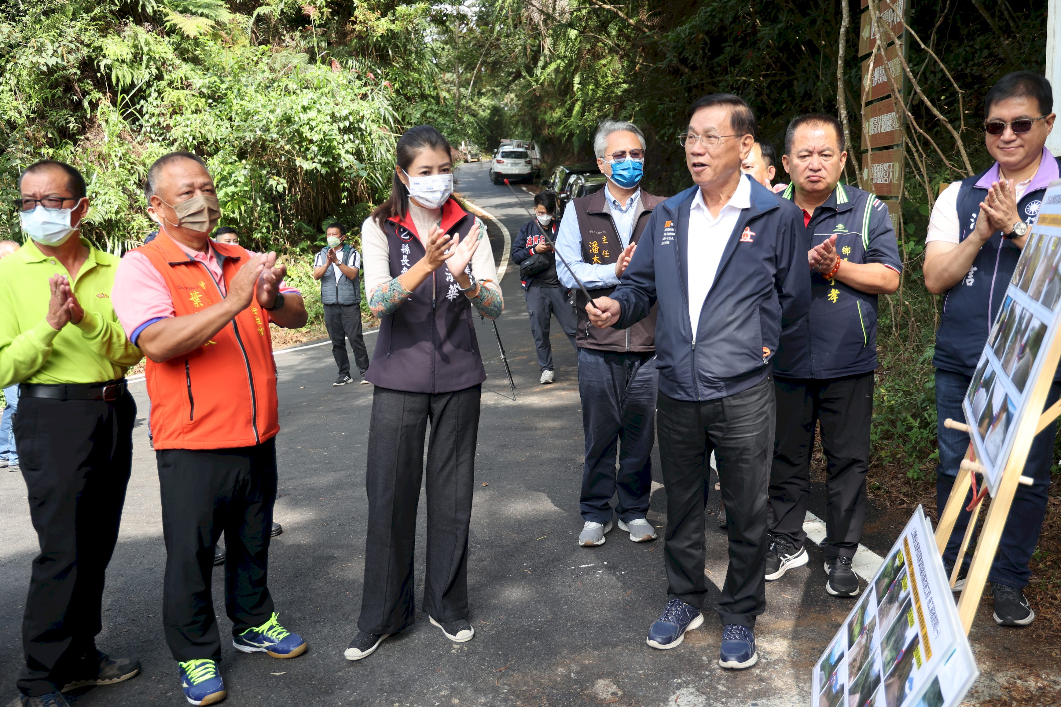 「真不敢相信這是真的」!仁愛鄉法治村長葉阿良25日在等候縣長林明溱前往視察「武界部落產業聯絡道路」改善工程竣工成果的空檔,說出他反映縣府爭取改善這條道路多年,從不抱希望到美夢成真的驚喜轉折。 葉阿良說,仁愛鄉法治村武界部落產業聯絡道路全長達10.3公里,原本屬於投71線鄉道,在95年卓社隧道開通後,這條因蜿蜒途遠人車日少的道路變成產業聯絡道,從此歷經15、6年的荒蕪失修。 原本寬達9公尺的道路在蔓草盤據下淪為只剩2、3公尺寬,更有多處坍方待修路況險象環生。經他和鄰長紀添福反映陳情,3年前終於等到第一次會勘,由於經費龐大,當時武界部落幾乎沒有人敢奢望,這麼長壞得這麼嚴重的路能夠一次修好,沒想到今天大家都看到成果了。 縣長林明溱25日在立委許淑華、代理鄉長張子孝陪同下,實地視察武界部落產業聯絡道路改善工程的成果,林縣長指出,改善路段位於以雲海聞名,素有雲的故鄉的仁愛鄉法治村,為舊投71線,不僅是武界部落千餘居民聯外交通的重要替代道路,周邊鄰近武界水庫、引水道等景觀,還有露營區及武界茶園等眾多景點。 自從95年卓社隧道通車後,這段舊路因人車變少逐漸被雜草淹沒回歸原始路面,甚至被部落民眾戲稱是山羌獼猴專用道,卻嚴重影響法治村第三鄰山區大片茶園等農作的運輸安全,村辦公處、部落居民更是不斷陳情殷盼徹底改善。 林縣長說,有鑑於此,南投縣政府以增進偏鄉地區基礎建設的目標,向內政部營建署提出納入「提升道路品質計畫」,在立委許淑華、馬文君大力協助下,順利獲核定3,500萬元改善工程。總工程經費3,500萬元整,內政部營建署補助比例 84%約2,900萬元,南投縣政府自籌比例 16%約600萬元。 改善工程翻新重鋪路面長達8,244公尺,並增設鋼板護欄1,070公尺,也增設下邊坡擋土牆109公尺,徹底將全長10.3公里的武界部落產業聯絡道路恢復到最佳的安全路況。
