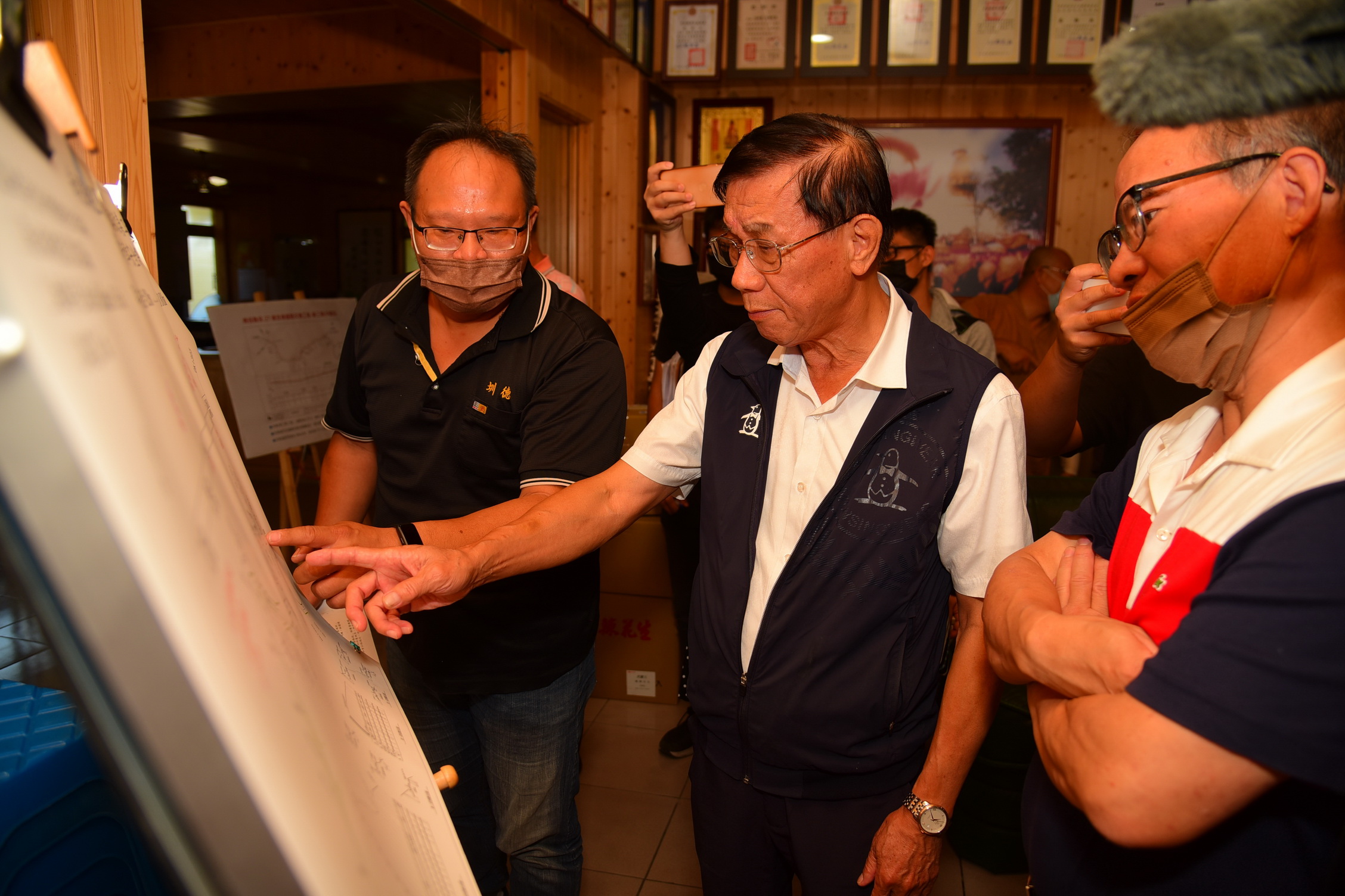縣長林明溱15日前往集集鎮會勘茄苳坑排水幹線護岸應急工程及投27線道路改善第二期工程,林縣長首先會同水利署副工程司簡榮成、第三河川局副局長劉敏梧、縣議員謝明謀、縣政顧問吳大村、集集鎮民代表鄧碧惠及審查委員一同聽取茄荖坑排水幹線護岸應急工程簡報。為維護農地安全,維護農民財產,林縣長指示工務處儘快補充土地同意書等資料給水利署第三河川局,以順利爭取經費儘快改善。