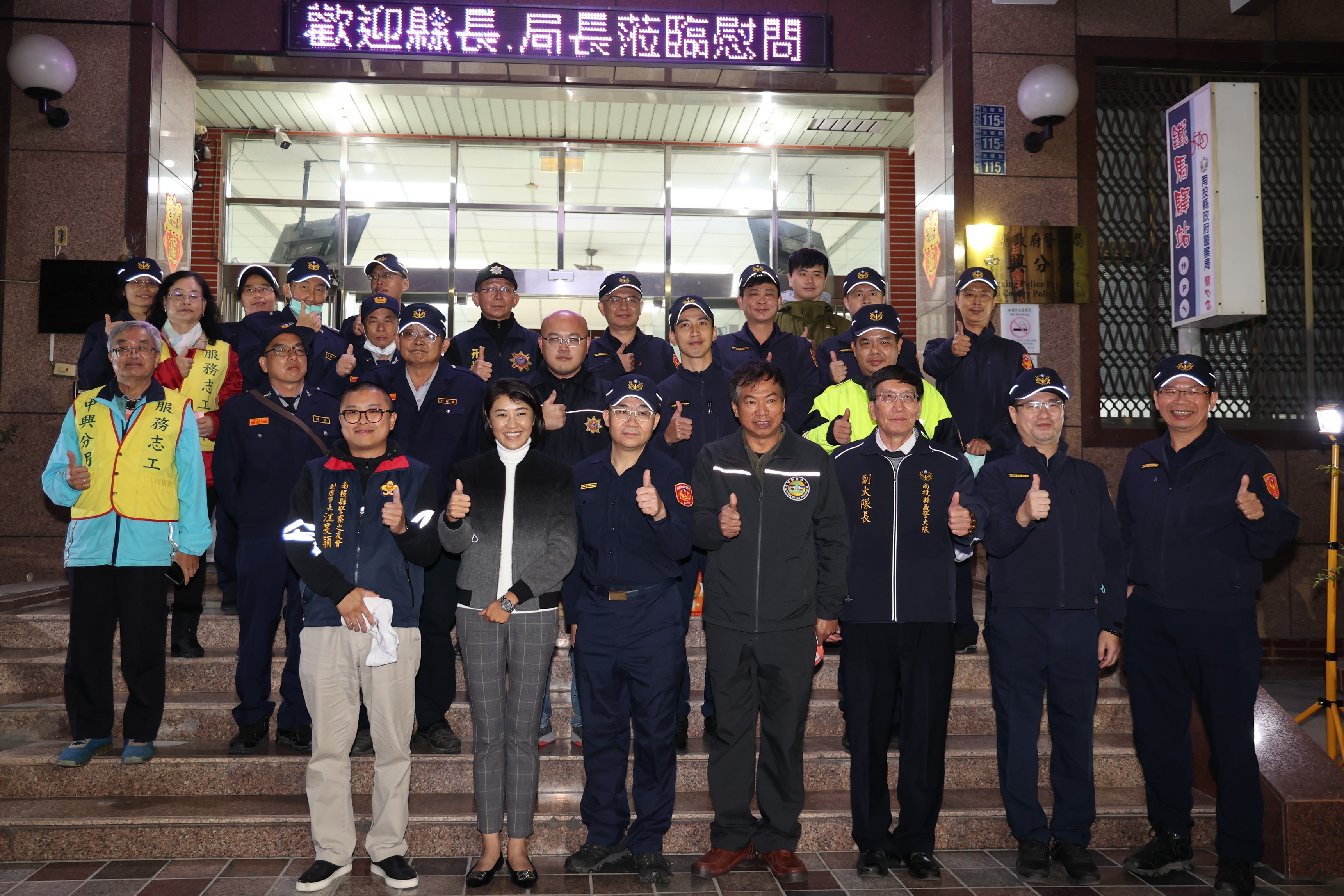 南投縣政府警察局112年加強重要節日(春節)安全維護工作,動員大批員警及協勤民力,以確保春節連假治安,同時加強南投燈會及縣內各旅遊景點交通與安全。縣長許淑華18日晚間,在警察局長黃勝源、民防大隊副大隊長何景傳、義警大隊副大隊長葉文心等人陪同,到中興、南投分局慰勉警民一家共同辛苦維護春節治安的辛勞。 許縣長表示,農曆春節連續假期即將到來,南投縣府維護治安及交通疏導服務沒有空窗期,一定要讓民眾安心、快樂過好年。所有執勤員警及協勤民力,犧牲春節假期與家人團聚的時間,全力投入春節安全維護工作,備極辛勞令人感佩,她也再度保證會在三年內增補員警缺額,並在最短期間內改善提升各項的警政設備,讓南投縣治安交通等各方面更讓縣民放心與安心。 今年南投縣警局全縣加強重要節日(春節)安全維護工作慰問行程,18日晚間分成5組,分別由許縣長、 警察局黃局長、2位副局長、主任秘書及督察長等人擔任領隊,同步分赴全縣各分局、派出所慰勞員警及協勤民力辛勞。 縣警局長黃勝源表示,警政署規劃自112年1 月1日22時起至同年1月30日24時止執行『112年加強重要節日安全維護工作」,以「治安平穩、交通順暢、民眾安心』為三大主軸,因應當前社會治安狀況並發揮安定民心的功效,南投縣警局依轄區特性及治安狀況,早已提前部署並妥善整備規劃,以回應民眾對於治安、交通服務等全方位需求。 在「治安平穩」方面,春節期間民眾有赴金融機構 提領鉅額現金需求,加上年貨商圈、彩券行、觀光景點 及廟宇等人潮熱絡,現金交易數量大增,易遭不法之徒覬覦,因此落實「犯罪預防、偵防並重」,缜密規劃治安維護,強化勤務作為,展現警察維護治安 的決心。 「交通順暢」則以疏導管制並重,確保交通順暢,春節假期民眾返鄉團圓、拜年及闔家出遊走春,高速公路、各地交通樞紐、觀光風景區、遊樂區及名勝古蹟勢必湧入大量車潮,恐造成交通阻塞,影響車流順暢。因此,縣警局及各分局派出所採機動、彈性與即時之管制措施,加強疏導易壅塞路段,強化稽查及管制,降低事故肇事率,維護行車秩序與道路安全,期能確保交通順暢,讓民眾安心返鄉過節及出遊。 最後「民眾安心」部分,秉持「立即有效回應民眾需求」的同理心與服務熱忱,結合協勤民力資源提供具體服務,著重於協尋失蹤人口、協助弱勢家庭急難紓困 或轉介社福單位、推動協助民眾舉家外出住居安全維護 及結合民力服務社區等項目,讓社會大眾感受警察貼心 之服務,讓民眾可以「安全」、「平順」、「安心」地過個好年。