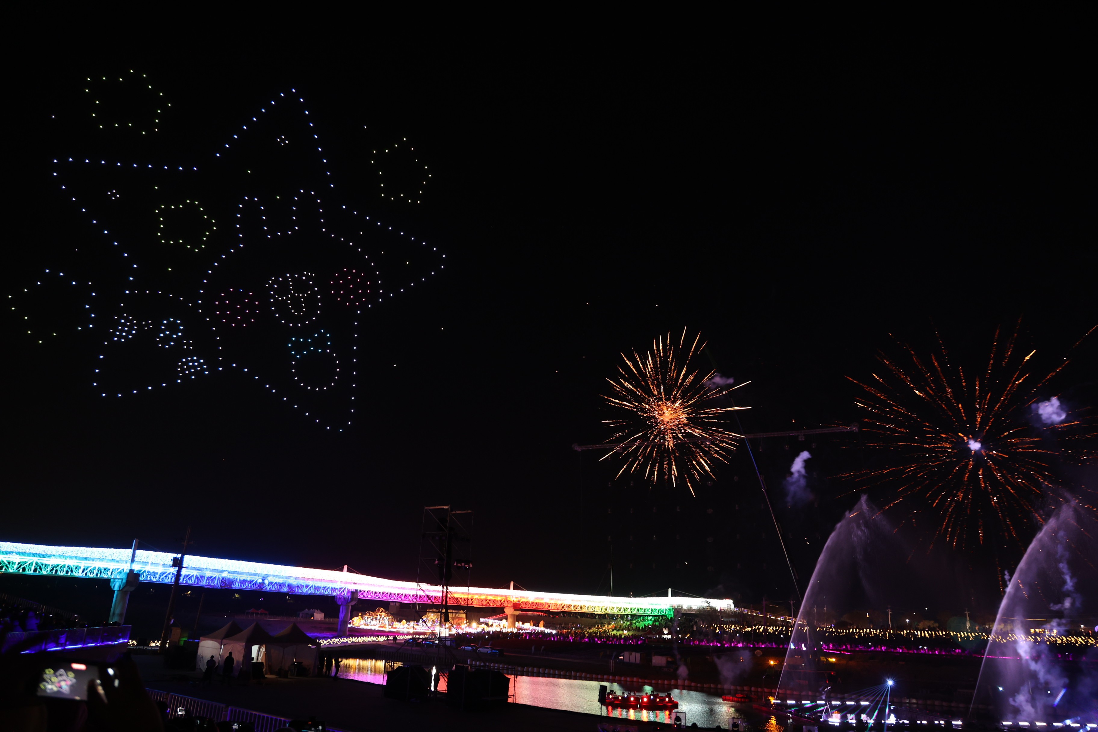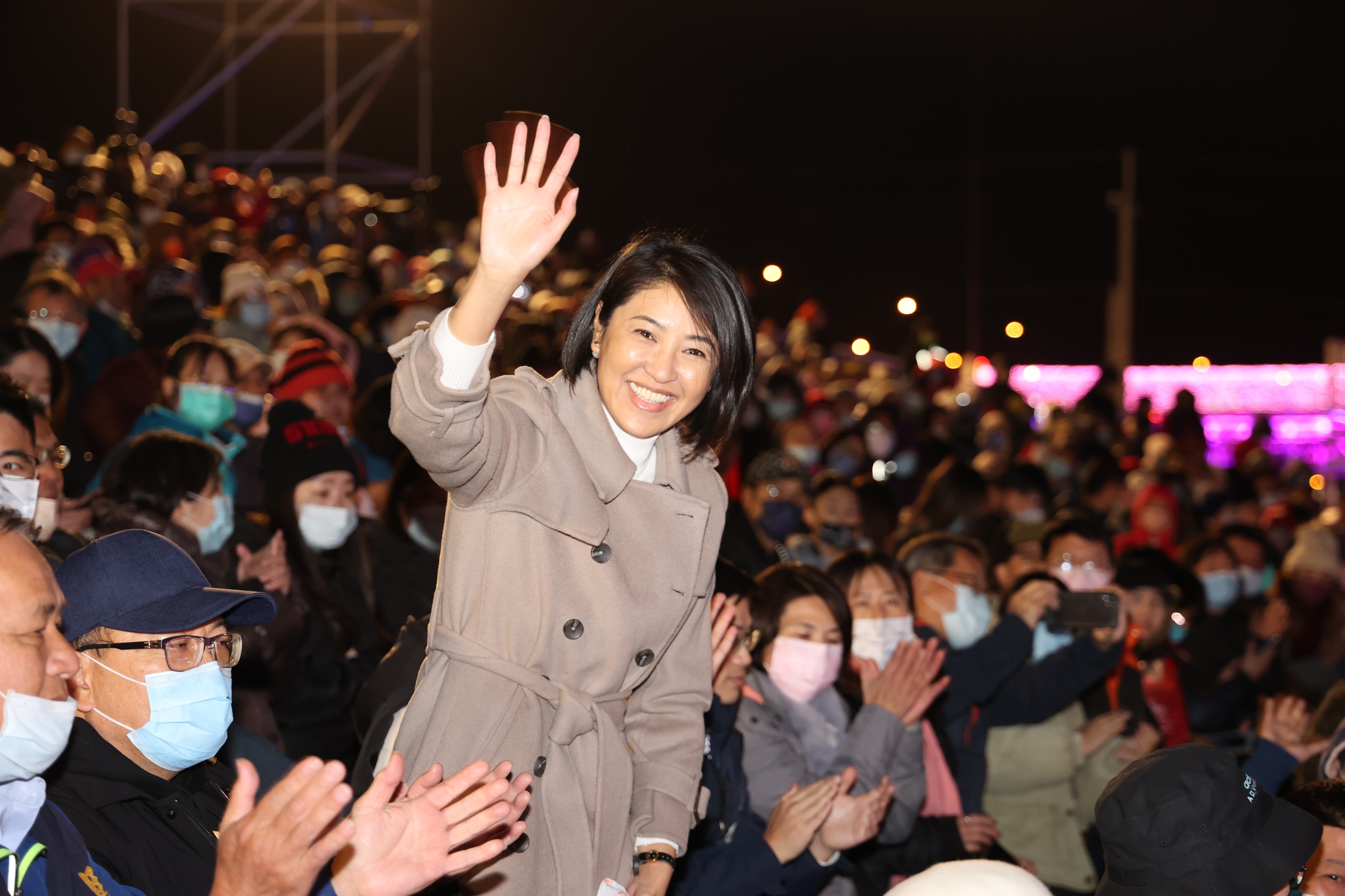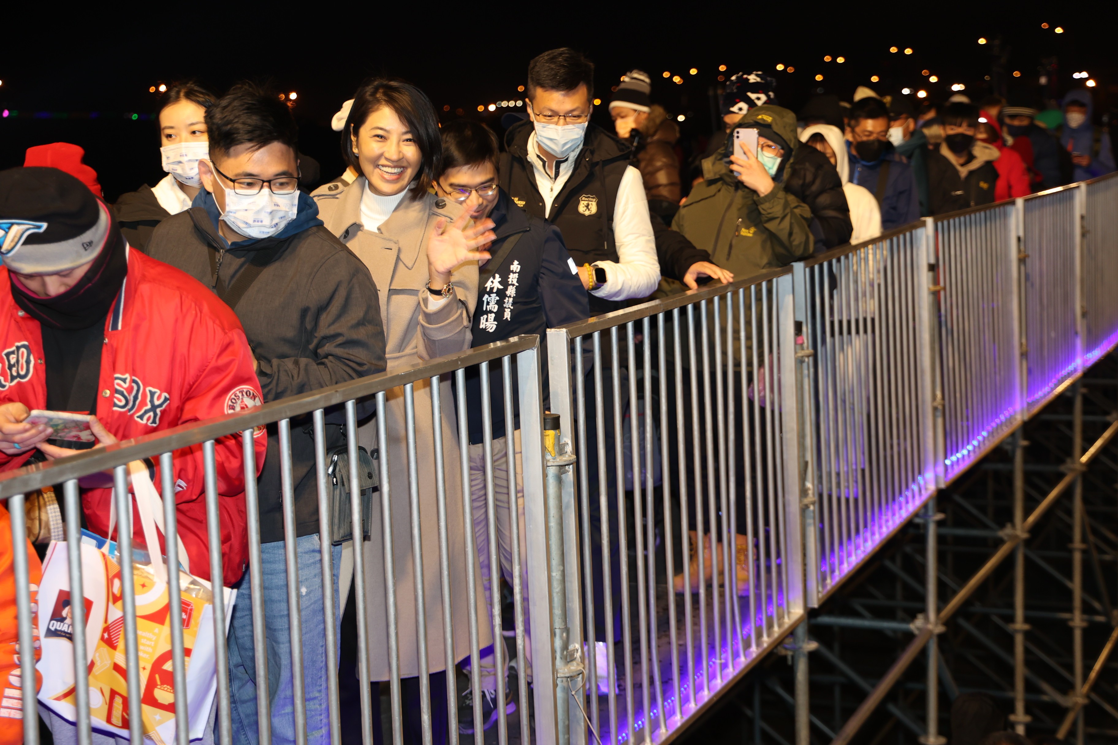 南投燈會28日盛大推出春節特演壓軸場,火舞、水舞、煙火、「卡娜赫拉的小動物」無人機「今夜齊上」,為春節連假的南投燈會掀起最高潮,入夜後湧進的遊客造成燈會展周邊道路途為之塞,縣長許淑華也到場觀賞與所有民眾同歡,除了擺出俏皮的「愛你哦」手勢,更不忘提醒全國遊客不容錯過精彩連連處處驚喜的南投燈會,她說,歡迎大家一定要趕在南投燈會閉幕的元宵夜之前,到南投暢遊為兔年留下最美好的回憶。 許縣長指出,從通往南投會展中心的接踵人潮及水舞廣場擠的滿滿的觀眾,可以看出南投燈會的大受歡迎,所有來逛燈會的民眾都以具體的行動,肯定縣府舉南投燈會的努力,「我會持續努力,好還要更好」,南投燈會在春假期間天天有主題活動與展演,尤其是卡娜赫拉的小動物,無論是特色花燈或是無人機高空表演,都大受全國民眾歡迎,僅管有些意外的小插曲,相信民眾依舊支持縣府的用心,未來會持 續做好每一項工作,更希望大家千萬要記得,一定要邀請所有好朋友,趕在元宵節南投燈會閉幕前,到南投暢遊日夜皆美驚喜不斷的燈會。 2023兔年南投燈會自1月14日燈會點燈到27日,已吸引297萬人次,28日春節特別表演壓軸場再創吸客魅力高峰,已確定今年到南投燈會的遊客已破300萬大關,2月5日元宵節將是燈會閉幕場,民眾務必要把握最後一周的機會。 28日的南投燈會特演壓軸場,除了貓羅溪畔花海小火車、SUP立槳免費體驗及南投會展中心園區兔年主燈等多元精彩奪目的燈區展示,入夜後,更在水舞廣場周遭安排一連串KD流行舞蹈團、曼暉舞蹈團和雲火火舞秀,而大受歡迎「卡娜赫拉的小動物」無人機高空表演,更將日月潭萬人泳渡、星空季、溫泉季、花卉嘉年華、螢火蟲季編排成精彩的「南投慶典祭」,再搭配五彩水舞及三D矩陣煙火,令滿場觀眾耳目一新,人人更是看得目不轉睛,無異是讓在假期結束前準備收心的民眾,體驗了一個最難忘的震撼與美好。
