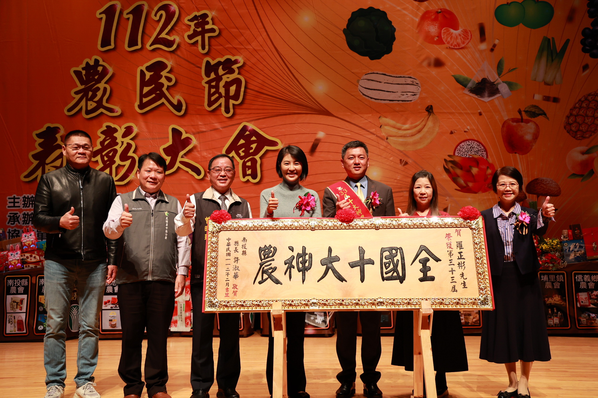 許縣長也依序頒獎表揚南投縣模範農民黃崇敬,及榮獲第二屆十大綠色照顧優良典範獎與第16屆農金獎農業保險貢獻獎優等獎的草屯鎮農會,還有榮獲第二屆農業推廣金推獎的南投縣農會、草屯鎮農會、名間鄉農會,而金推獎的個人獎則是由信義鄉農會的劉家岑獲得,還有榮獲第6屆百大青農獎的縣內9位優秀青農。