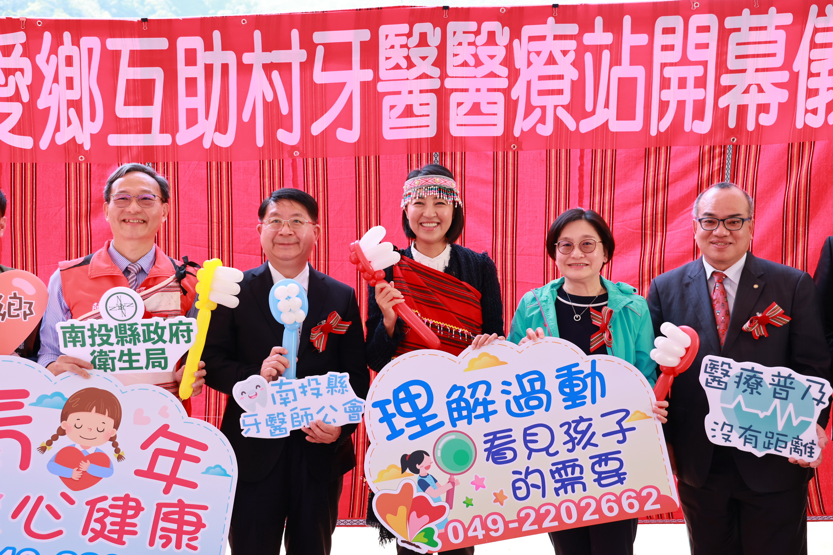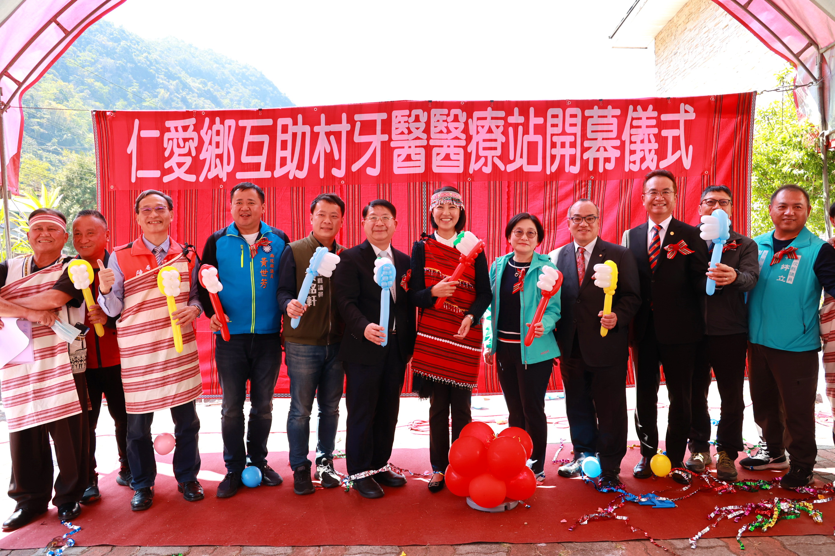 縣府為推動偏鄉健康照護升級,在多方協調媒合下,由南投縣牙醫師公會及仁愛鄉衛生所共同合作,在互助衛生室設置「仁愛鄉互助村牙醫醫療站」,3月10日由縣長許淑華身穿賽德克披肩主持啟用儀式,許縣長感謝南投縣牙醫師公會的協助,讓互助、新生村三個部落的民眾不用再大老遠跑到埔里看牙醫,就近即能接受全面的口腔醫療照顧。 包括縣議員黃世芳、蔡明軒、衛生福利部中央健保署中區業務組組長李純馥、中華民國牙醫公會全國聯合會理事長陳彥廷、牙醫門診醫療服務中區審查分會主任委員羅界山、南投縣牙醫師公會理事長李泰憲、縣府衛生局長陳南松、醫療團團長黃源昌、仁愛鄉公所秘書余三郎等貴賓也都到場共襄盛舉,一起拿起大牙刷進行啟用儀式。 許縣長表示,南投幅員廣闊,許多偏鄉在醫療服務上確實不足,所以縣府也積極引進醫療資源進來,期望透過巡迴醫療或駐點的方式,提供部落民眾就近且便利的醫療服務,這次很高興能夠邀請到南投縣牙醫師公會願意投注人力與心力來衛生室駐診,也感謝健保署中區業務組及各界的大力支持,讓互助、新生村民眾就近得到全面的口腔醫療照護服務。 許縣長指出,仁愛鄉互助村、新生村的鄉親要看牙醫,都需要到國姓或埔里,預約也通常要1-2星期,每次治療療程需多次往返十分不便,現在有互助村牙醫醫療站,這裡有牙科治療椅與X光儀器等新進的醫療設備,就可讓在地的鄉親能就近享受到專業的牙科照護服務水準,未來縣府也會持續與南投縣牙醫師公會合作,並會積極尋求更多的醫療資源,針對醫缺地區也會配合以巡迴醫療方式來改善,希望能有更多人受惠。 縣府衛生局陳局長表示,仁愛鄉屬牙科醫療資源匱乏地區,南投縣牙醫師公會的進駐,可有效地解決兒童蛀牙及長者牙周病問題,且缺牙與失智症息息相關,把長者的牙齒照顧好,除提升長輩的健康也增加自信心,期盼透過政府及民間團體的協力合作,使更多原鄉族人的口腔保健,有更全方位的醫療照護。 【仁愛鄉互助村牙科醫療站】位於互助衛生室內(原民路47號),就診時間為每週一下午1時30分至4時30分,每週五下午1時至4時及晚上4時至7時30分,每月第二週星期六、日上午9時至12時及下午1時至4時,另每月第四週提供週六上午9時至12時及下午1時至4時門診服務,預約電話:0966-772100,歡迎有需求的民眾攜帶健保卡前往看診。
