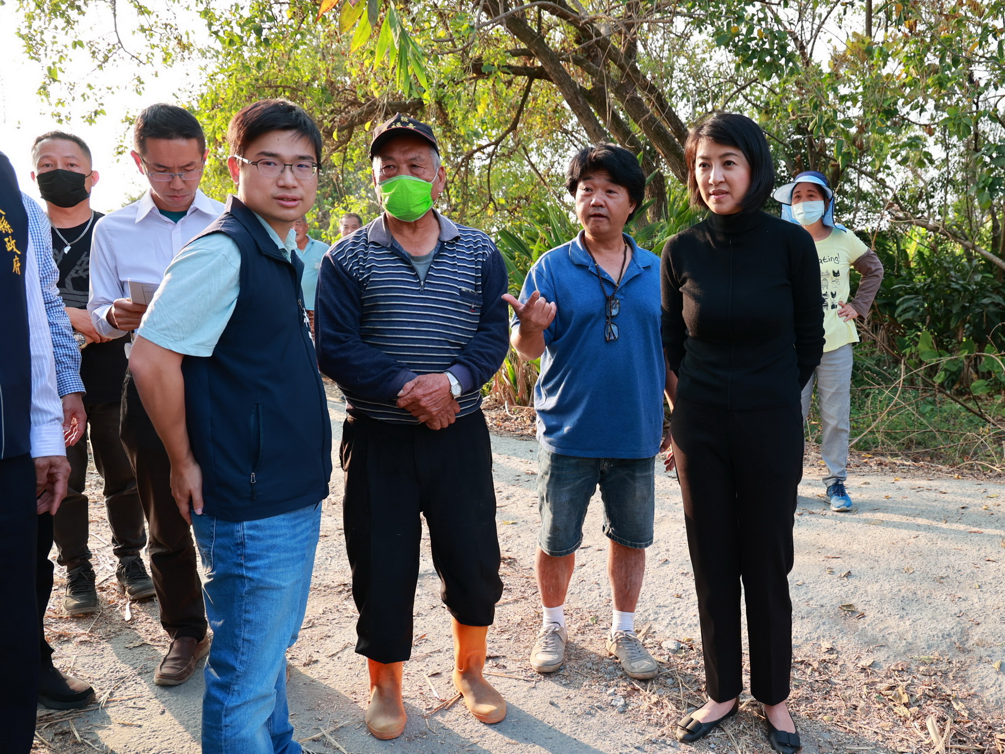 至於田仔村蓮蕉巷產業道路因多年未修,加上常有農產運送大車進出,導致路面破碎不平,坑洞連連,當地農民強烈希望縣府能重鋪路面改善。許縣長跟著多位陳情民眾一同走過原本預計改善的540公尺路面,但是民眾則希望將破碎嚴重的路段全部一次改善,對此,許縣長也同意民眾建言,並責由工務處追加預算延長改善路面,讓鄉親出入及農產運輸更安全。