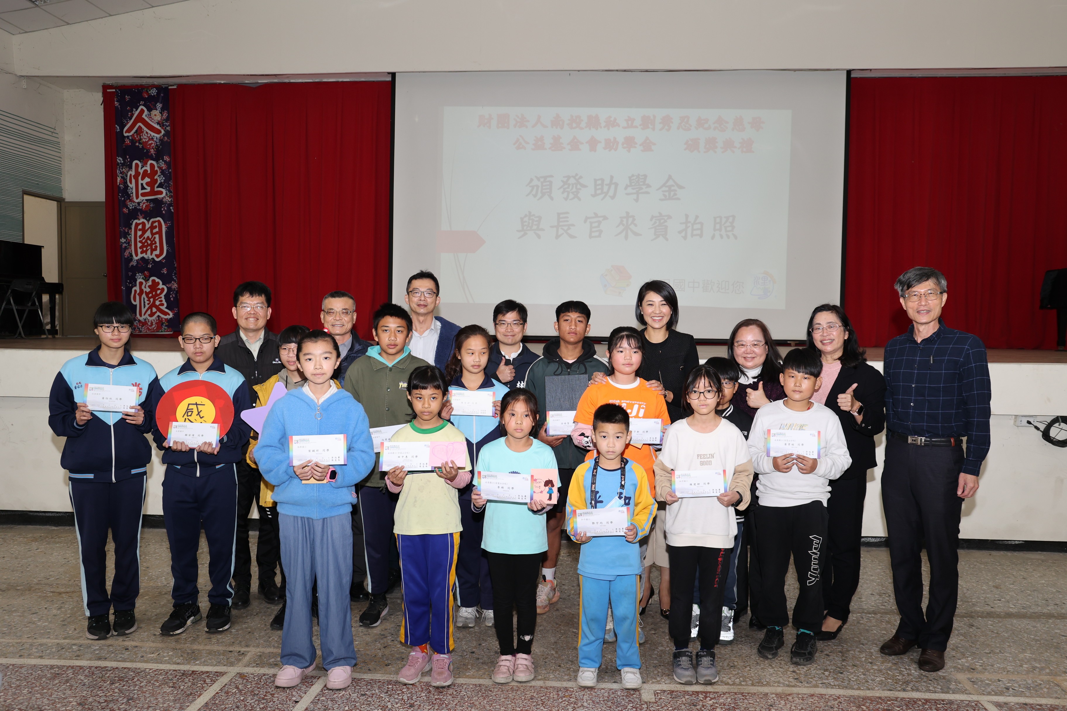 為了協助家庭遭受困境的學子安心向學,縣府積極尋求社會資源的挹注,透過「財團法人南投縣私立劉秀忍紀念慈母公益基金會」的慷慨捐助,分六場次頒發每人1萬元傳愛學子助學金,全縣受惠學生達515位;今天第三、第四場次分別在名間國小及水里國中辦理,許淑華縣長親自頒給中寮鄉、名間鄉、水里鄉、集集鎮、信義鄉共49校、102位家境困難亟需幫助的學生,許縣長感謝傳愛學子助學金協助弱勢學子求學無礙,減輕家長經濟壓力負擔,也期許鼓勵孩子健康成長、奮發努力上進。 「教育除了拔尖,更要扶弱」,許縣長指出,她要特別感謝劉秀忍基金會長期對南投縣的捐助,其善心義舉讓人感動,也期望能藉由基金會的拋磚引玉,帶動社會各大企業伸出援手,協助提升縣內的教育資源,提供優質的學習環境,讓孩子們能安心向學。 兩場次傳愛學子助學金頒發典禮,身為劉秀忍基金會董事的縣議員林儒暘都到場關心並協助頒發助學金,縣府教育處長王淑玲、駐區督學及各校校長都陪同。 許縣長說,學校的老師最瞭解學生的學習狀況,學生的學習是否受到家中經濟影響,校方站在教育第一現場最為瞭解,所以由教育處協助,透過學校協助學生提出申請。經瞭解,這幾年因為疫情關係,有些家庭原本經濟來源就不穩定,遇到大環境不景氣,更面臨失業、收入減少的問題,還要支付學費、生活費、貸款等,入不敷出,或是家庭遭逢變故如家人重病等,需支付龐大的醫療費用。由於這些學生都有亟需幫助的境況,因此要求教育處要全力協助發放,讓善款發揮最大的效果,讓學子們在寒冬中感受到社會的溫暖。 許縣長也感謝各校校長主任親自帶學生出席,共同關心孩子的學習與成長,鼓勵受到幫助的學童,能夠樂觀面對未來的人生,認真求學,將來取得好的成就,能夠孝順父母且回饋社會。為了幫助學習優異或清寒學子,縣府目前設有各項經常性獎助金,包含體育、清寒優秀、原住民學生、身心障礙幼兒特教等項目。希望各校校長,協助關心學校孩子的學習狀況,如果發現有家庭急難影響到孩子學習的狀況,可以通報教育處,針對特殊個案給予專案性協助。 南投縣府努力提供學生安心的求學環境。在教育政策方面,除了拔尖扶弱,也要打造多元共好的優質學習環境、推動友善校園、持續辦理學生免費營養午餐,減輕家長負擔。為了培養南投青年具備國際視野,由縣府教育處規劃本縣學子出國獎助學金計畫,讓想赴國外進修或提升語文能力的學子,一圓出國夢想,厚植南投在地人才的國際競爭力。 許縣長強調說,孩子的學習與成長需要持續加強關注,「希望透過教育的希望工程,翻轉南投孩子的未來。」,縣府施政目標要打造南投成為宜居城市,其中教育是相當重要的一環,縣府會致力提供學生安心的求學環境。 教育處指出,名間鄉、中寮鄉、水里鄉、集集鎮與信義鄉,多數學校位置偏遠,許多家庭為隔代教養或單親,所幸各校校長、老師均能為孩子爭取多項教育福利,諸如課後照顧、國小全日制、夜光天使、學習扶助、國際教育、城鄉交流計畫、清寒助學金、住宿式伙食費、沉浸式族語教學、直播共學、夏日樂學、國際學伴、數位學伴、線上學習、採購全縣授權免費軟體國小全主科測驗等大規模的數位服務,有效降低偏鄉學生學習的障礙與不便。