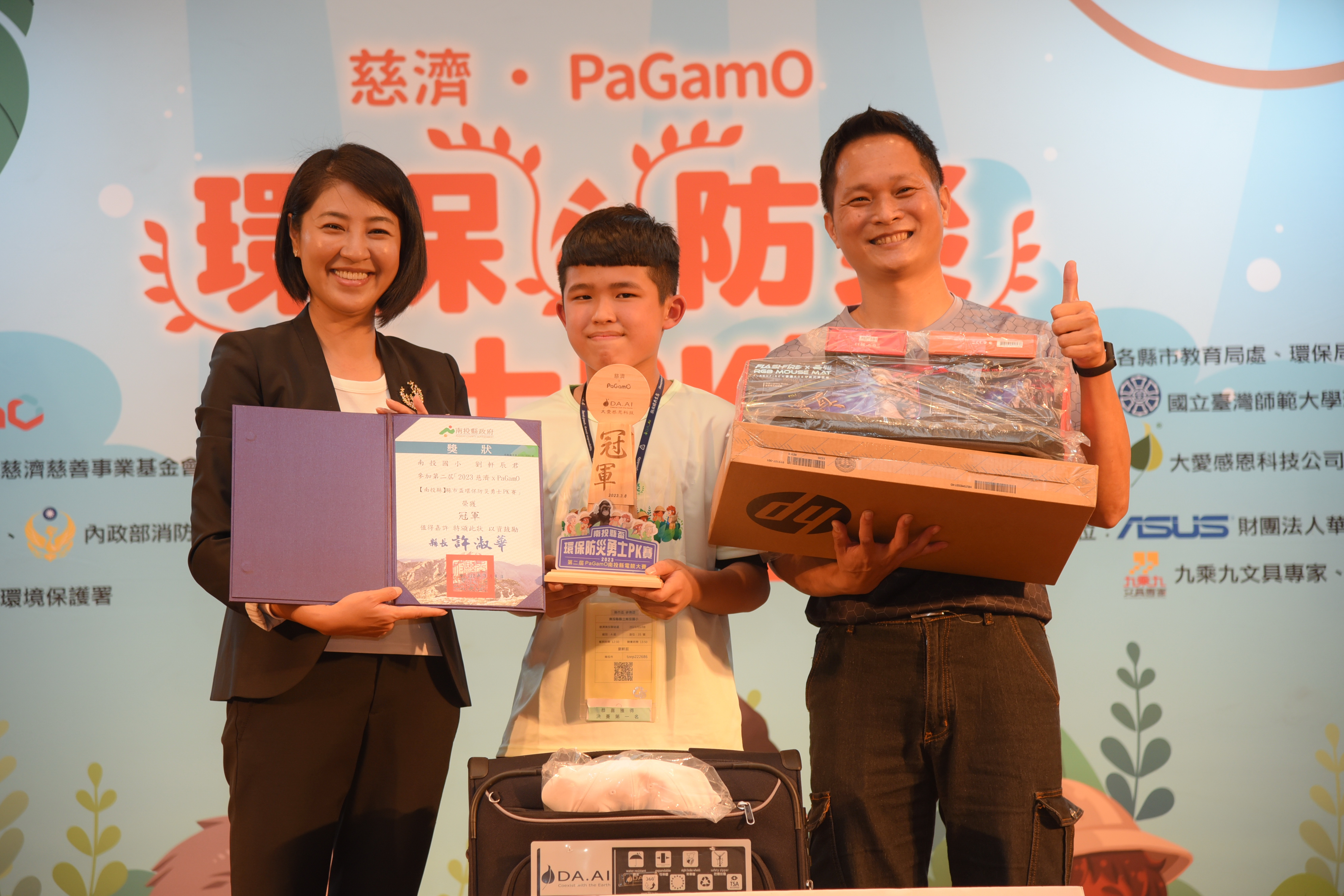 8日舉辦第二屆南投縣環保防災勇士pk 賽,南投國小包辦前三名,成了大贏家。縣長許淑華前往頒獎,認為這項環境教育比賽很有意義,除宣布參加活動師生記功、嘉獎外,她同時推祟慈濟,在國際救災、救難外,更推動環保,是台灣環保先驅。 一、二、三「衆人合力,從保特瓶製的鯨魚口中拉出垃圾!」,象徵「救鯨魚、愛地球!」。第二屆南投縣環保防災勇士pk 賽,8日下午在南投市慈濟連絡處展開。 為推動環境教育,由慈濟基金會、縣府教育處、環保局、消防局策畫的環保防災勇士pk 賽,透過電競,以有趣、寓教於樂的學習方式,提升學童環境防災素養,強化防災觀念,並落實到環保防災生活中。 這次活動計有58所國小、166班約三千人參賽,比賽從班級初賽、校內複賽,到縣決賽,經過最後選出171位選手進入8日的縣決賽,決賽前十名可晉級參加國際盃全球總決賽。 包括縣長許淑華、秘書長洪瑞智、教育處長王淑玲、環保局長李易書、衛生局長陳南松、民政處長林琦瑜、縣議員林儒暘、南投市長張嘉哲等人到場,為進入決賽的師生加油打氣。 環保防災勇士pk賽,競爭激烈,最後由南投國小劉軒辰、張善、黃郁烜最後脫穎而出包辦前三名。許淑華縣長直呼是大贏家,她並頒獎給縣決賽得獎學生及老師,表示祝賀。 許淑華縣長表示,去年全國總決賽本縣獲第二名、第三名、第六名,她勉勵今年前十名得獎的同學,4月9日到台中參加總決賽,能有更優異的成績表現。 縣長許淑華表示,她的施政主張食、衣、住、行永續發展,南投縣好山好水,更有條件來推廣,縣府配合慈濟辦理環保防災勇士pk賽活動,透過電競了解環保、防救災等知識,非常有意義。 慈濟基金會環保防災勇士ok賽,藉由線上教育、線下體驗、互動學習與生活實踐,傳達環境教育相關的知識,進而落實具體環保防災行動,學生在答題時,吸收環保防災資訊,建立環保與防災知識,啟發環保概念,希望養成節能減碳習慣,並落實在生活中。 環保防災勇士pk賽,場內緊張,場外熱鬧。慈濟與南投縣政府設有攤位,提供防災、防毒、愛健康、兒少保護資訊,進行宣導與體驗。 「一顆桌球從上方滾下來,得搶先用線拉起一顆樹,否則宣告失敗⋯⋯」,遊戲設計很環保,傳達種樹防災的概念,學生及民眾玩得很開心。許淑華也到縣府攤位,拿著反毒、保護兒少、守護失智等標語,標語、當起臨時代言人,大受歡迎。