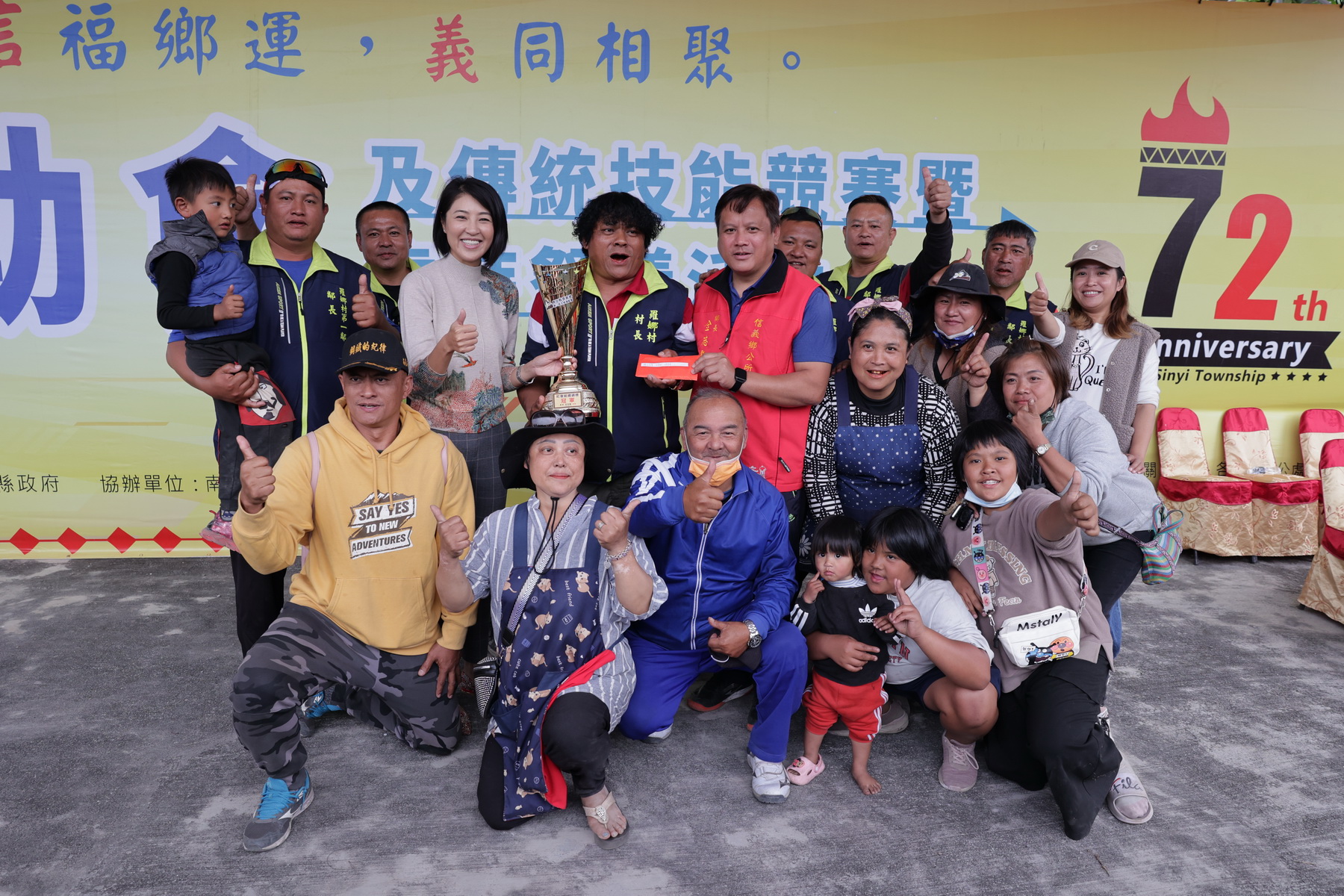 信義鄉第72屆鄉運在人和村濁水溪畔的信義鄉運動廣場盛大舉行,除了各項賽事,也同時舉辦112年傳統技能競賽及歲時祭儀表演。許縣長到場時,運動場上正進行社女400公尺接力及社男400公尺接力,場邊大人小孩都在為選手搖旗吶喊,她也與鄉長全志堅、縣府原民局長史強、縣議員全文才一同為場上選手加油打氣。