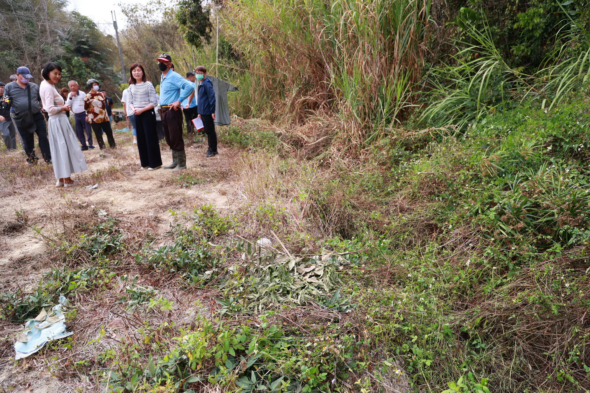 至於爽文村小龜坑野溪整治工程,許縣長也親至現場會勘了解,因該野溪目前山溝土層裸露且遭野草叢生覆蓋,大雨來時土壤易遭沖刷流失,造成附近農地及作物受損。許縣長表示,此案縣府已多次派員勘查,為保護農地土方及排水順暢,將會施設排水溝,銜接至下游的既有溝渠以利排水,也方便農民耕作,初估工程經費約需130萬元。