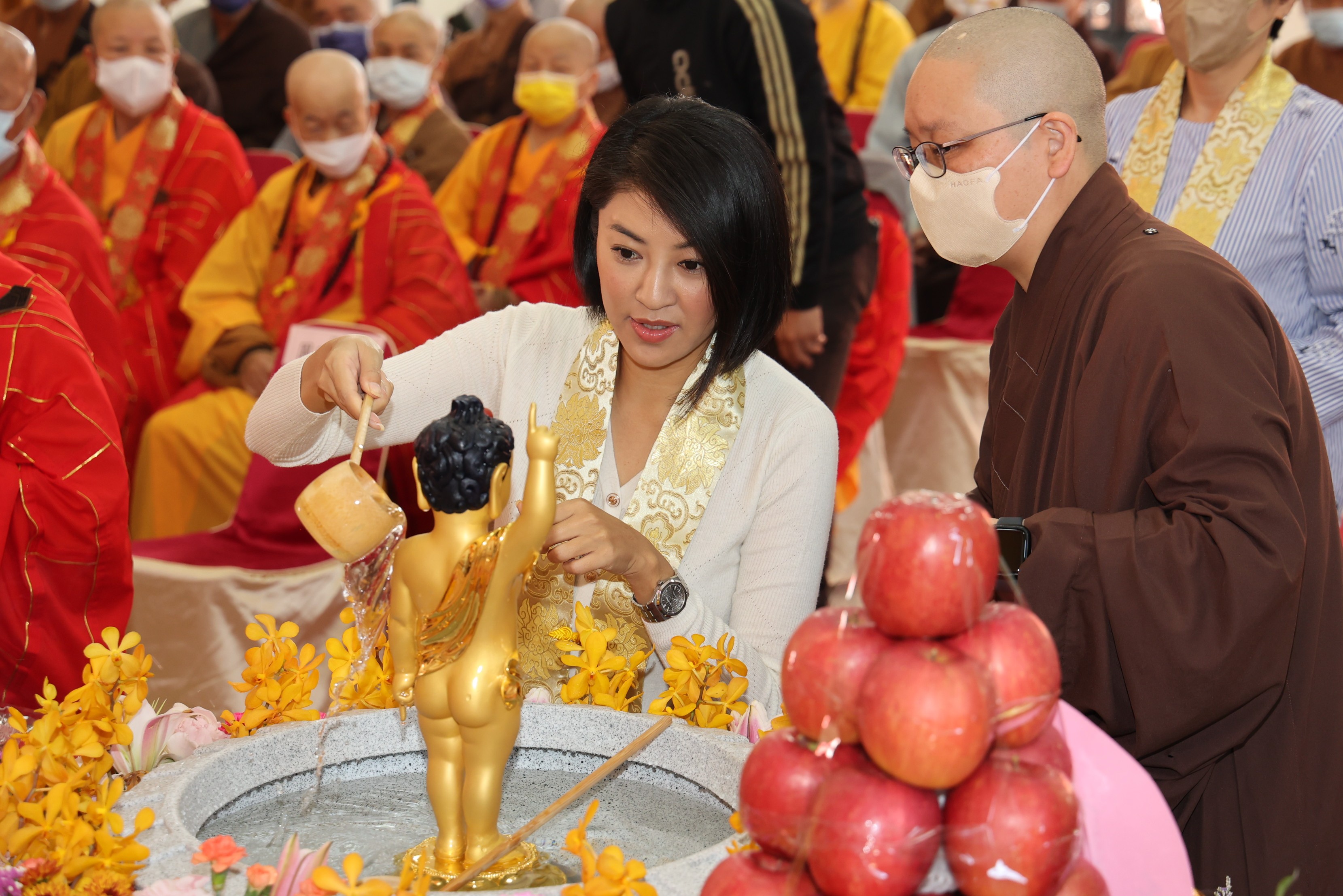 包括縣長許淑華、縣府民政處長林琦瑜、縣議員游顥及諸多善信人士參加供燈、浴佛祝聖普佛,祝禱佛光慈照,國泰民安、世界和平、家家吉祥、 戶戶安康。許縣長偕林處長、游議員等來賓佛前供燈,虔誠點燈供佛及浴佛,照開成佛之道與自性光明,也點燃十方眾生光明之路,預示迎向美好的明天。