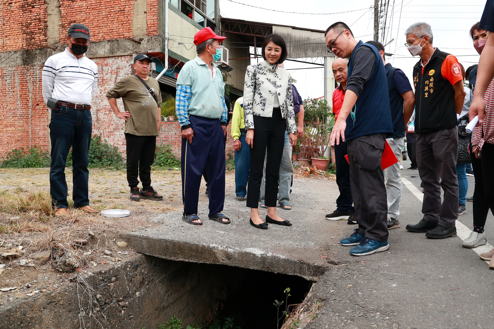縣長許淑華20日在南投市長張嘉哲及縣議員林儒暘、游顥等人陪同下,分別前往內興里、營南里、福興里及三興里等地,會勘多條道路路面、排水溝與野溪整治等改善工程,許縣長到現場仔細聆聽民眾意見,也都盡量滿足地方需求,就是要讓在地民眾出入更方便、更安全。 許縣長一行前往內興里大埤街190巷前道路會勘,並與當地民眾一起在社區活動中心聽取工程單位簡報,大埤街為投13線,是當地社區居民的主要出入道路,沿線道路只剩這一段長約65公尺的路邊排水溝尚未加蓋,易生危險。林儒暘議員也說她媽媽前日開車行經此處時,前輪也曾卡在排水溝邊,差點掉進排水溝,虛驚一場,真的是要盡快改善。 許縣長表示,此路段排水溝確實有加蓋的必要,新增暗溝及隔柵板加蓋等改善工程完成後,除了可增加路面寬度,提高道路行車安全外,也能發揮正常的排水功能,尤其附近就是活動中心和廟宇,老人家早晚運動及參加關懷據點活動時都會經過,確實是有改善的必要,總工程經費約154萬元。 至於新興路20巷的路面改善工程,則是位於大埤大排旁邊的道路,住在路旁的民住表示,此路已多年未修,路面破損已經修補多次,且部分路段下陷,遇雨積水,造成困擾,希望縣府能協助改善。對此,許縣長表示,此段道路路面確實有多處坑洞破損,造成民眾出入不便,經工務處初步會勘,改善長度約300米,總工程經費約需100萬元,將會盡快發包改善。 至於營南里東閔路686巷的道路,因為是通往營北里的道路,也是農民進出及老人家運動散步的道路,蔡姓老鄰長表示,他每日都會騎腳踏車經過,有時還要發宣傳單,這條路多年未修,路面破損崎嶇不平,騎起車來確實很不舒服,希望縣府能夠盡快改善。 許縣長聽完當地民眾陳情希望延長整條道路的路面改善後,也特別再次驅車視察整條道路沿線的狀況,實地會勘後,許縣長表示,路面改善工程確實是有必要施作,也同意加碼延長將整條道路都做改善,長約700公尺,預估經費為300萬元。 至於位於八卦山上的三興里嶺興路玉女宮旁坑溝治理工程,當地民眾表示,此坑溝多年未整治,雜草叢生,下大雨時路面水漫流,加上社區生活排水也都匯集流入,整段溝坑土石沖刷日益嚴重,希望縣府盡早辦理整治。 對此,許縣長表示,此段坑溝兩岸邊坡沖刷嚴重,漸漸影響到周邊的農地,確實需要重新治理,防止岸坡繼續沖刷,避免農地流失,會責由農業處盡快辦理發包施作,保障在地鄉親的生命財產安全。