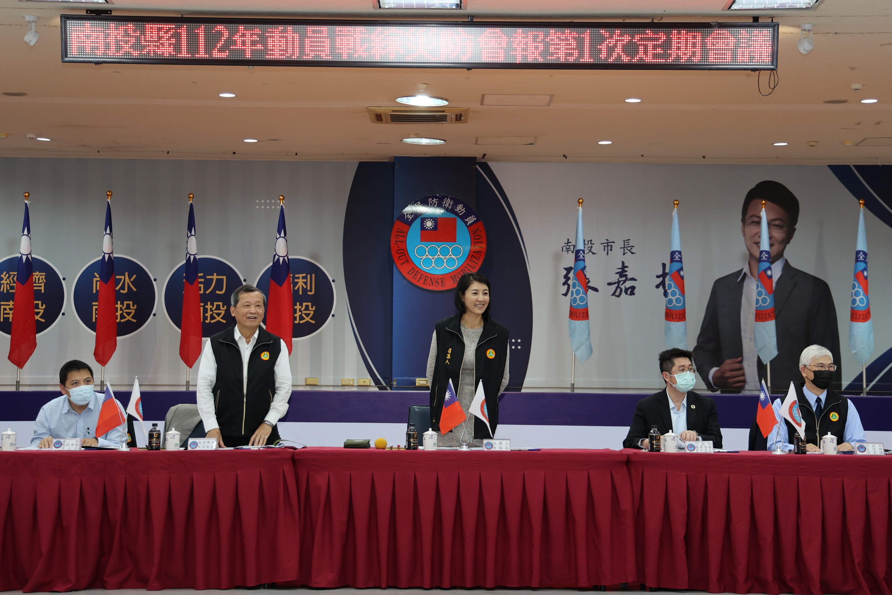 112年南投縣全民防衛動員、全民戰力綜合協調、災害防救3合1會報第1次定期會議,21日在南投市公所大禮堂舉行,擔任會報召集人的縣長許淑華親自主持,特別重點提示,務請縣府團隊整合上至中央下至公所村里,以及諸多協勤單位,透過兵棋推演、實際操練演習,加速熟練防救災的各項準備與作為,確保一旦災害發生能立即動員,從容不迫迅速確實的全面投入救災及復建。