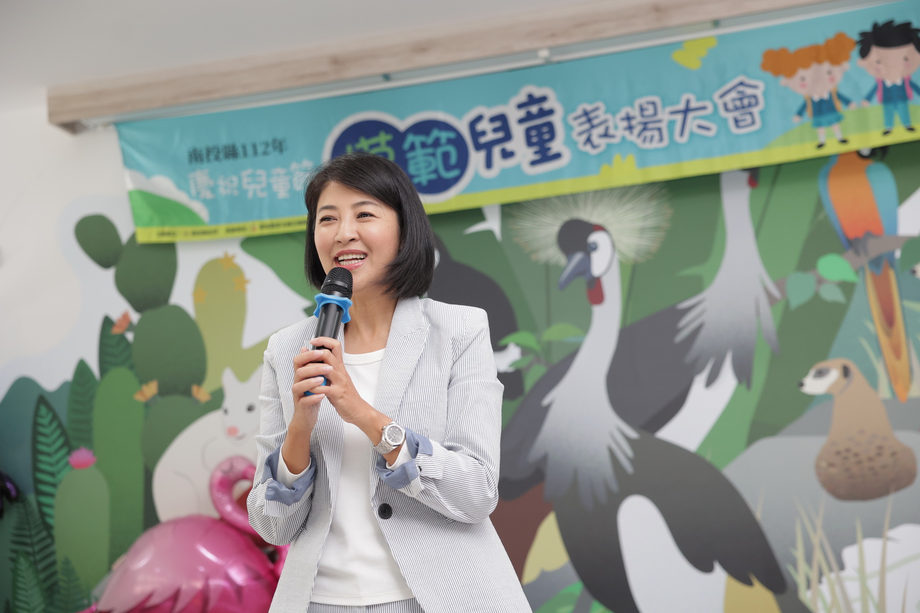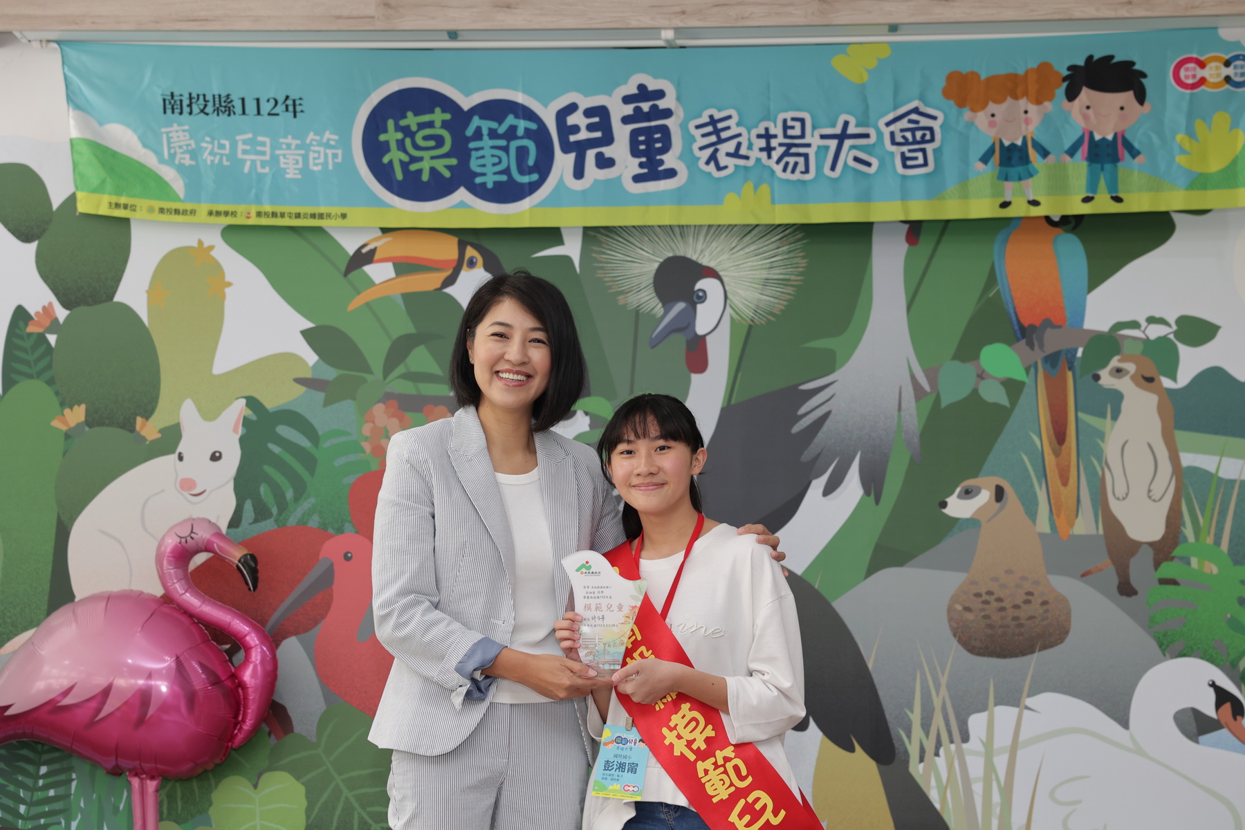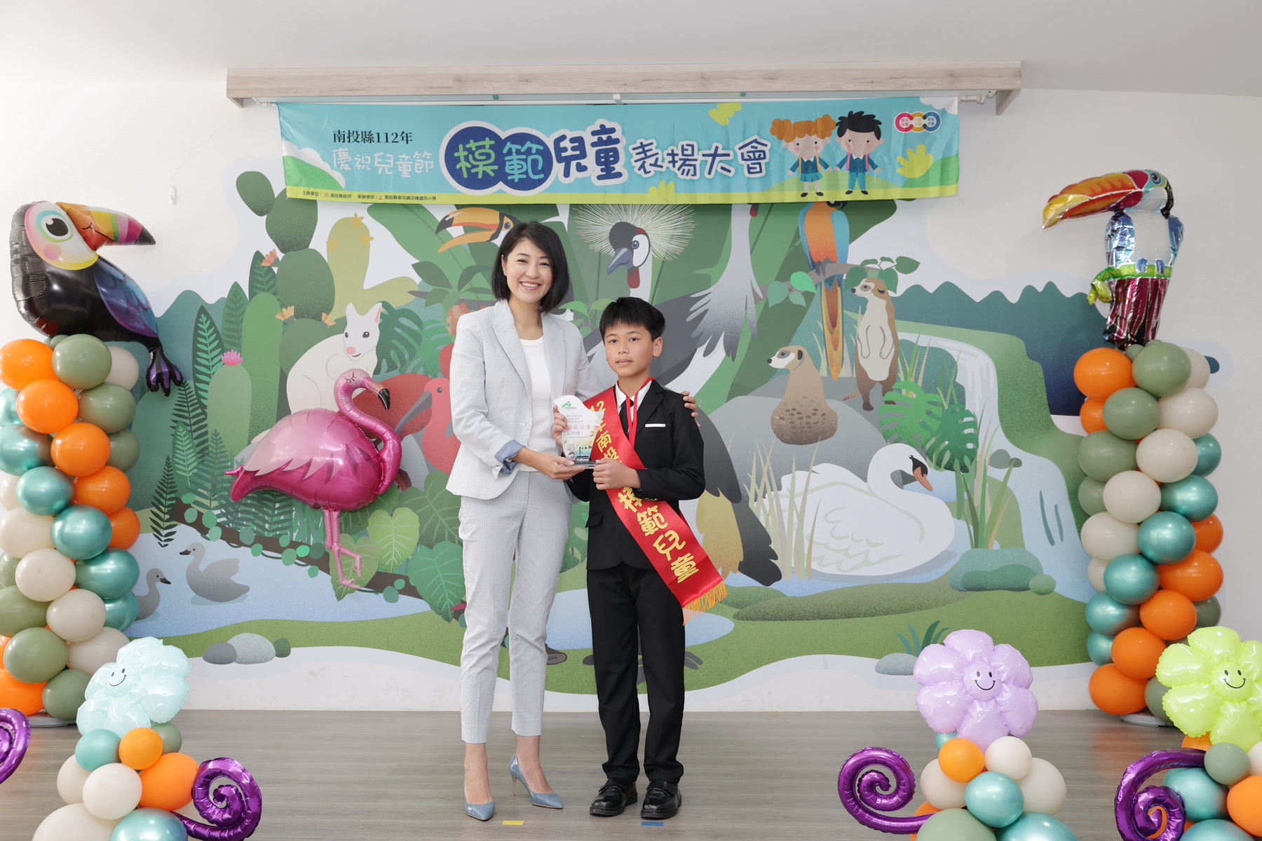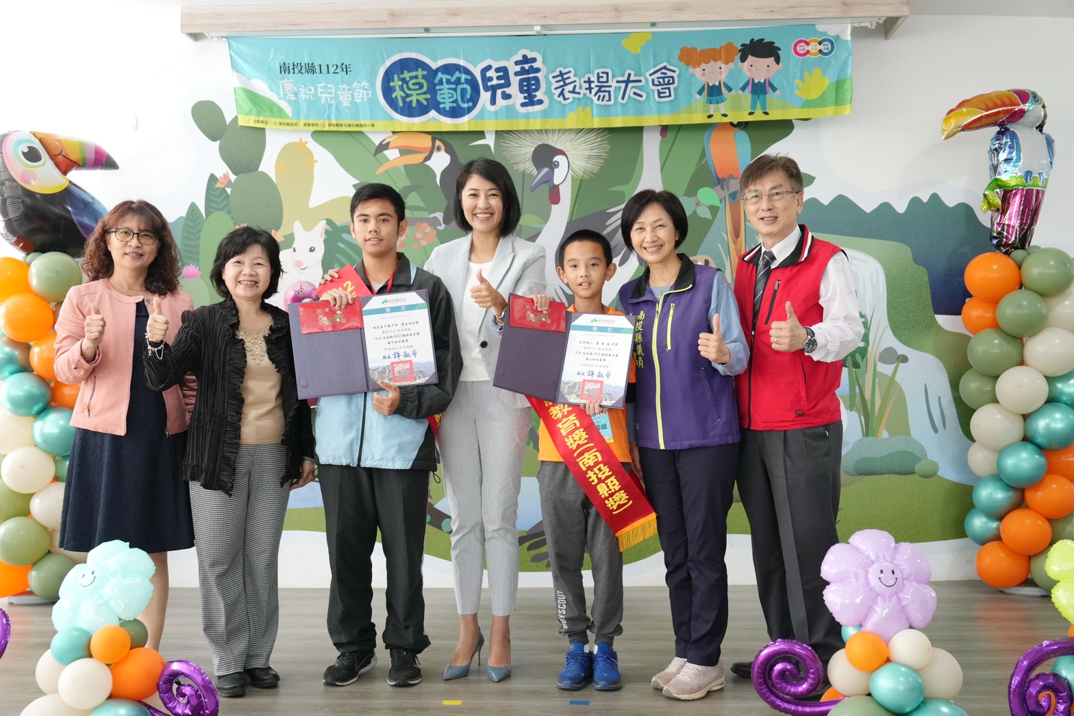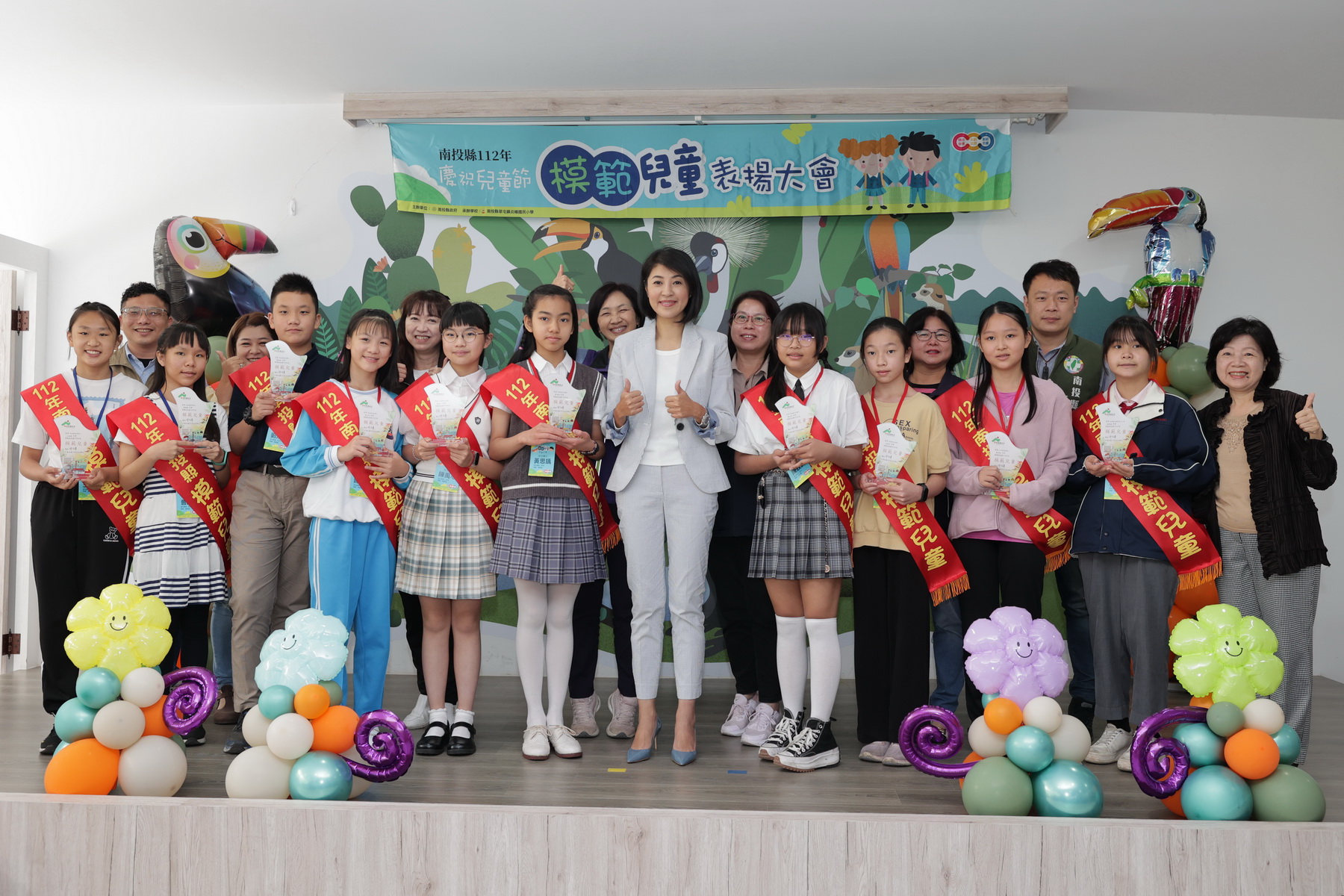 兒童節即將到來,縣府29日在草屯九九峰動物樂園舉辦「南投縣112年度慶祝兒童節模範兒童表揚大會」,縣長許淑華頒發模範生獎狀,表揚159位模範兒童及2位總統教育獎入選學生,肯定學生在學業、體育、才藝、孝行上的傑出表現。