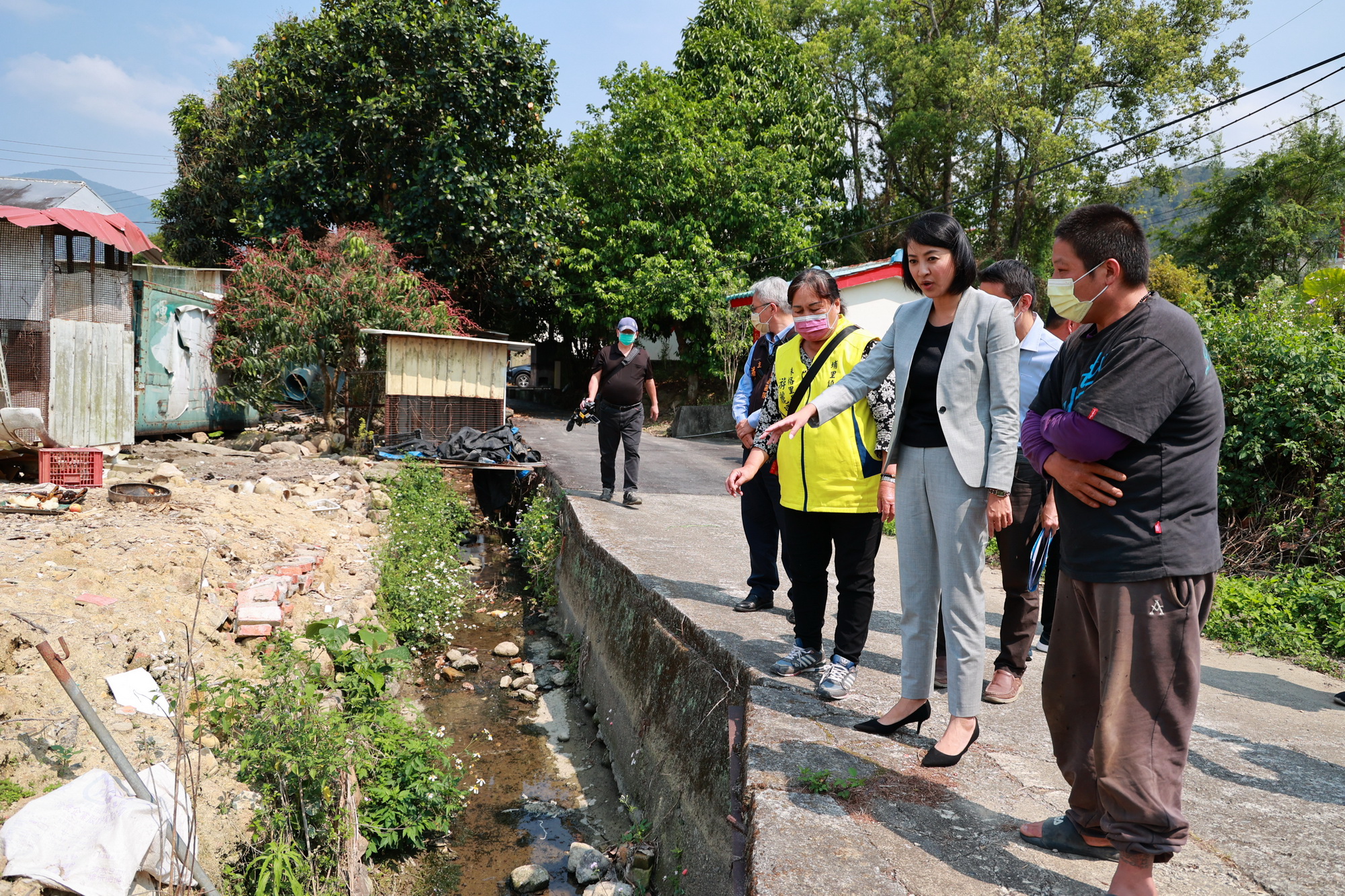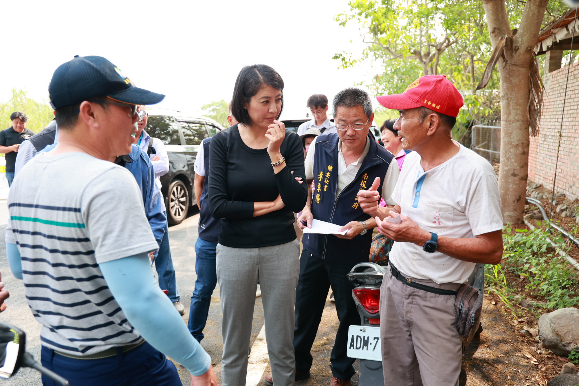 許縣長表示,此坡地排水狀況確實需要改善,才能有效排放至下游排水溝,以防止水流挾帶泥砂繼續侵蝕及淹沒,確保周邊土地及民生命財產安全,尤其大雨來時溝水溢流確實造成民眾困擾,初估經費約需90萬元,會請農業處發包予以改善。