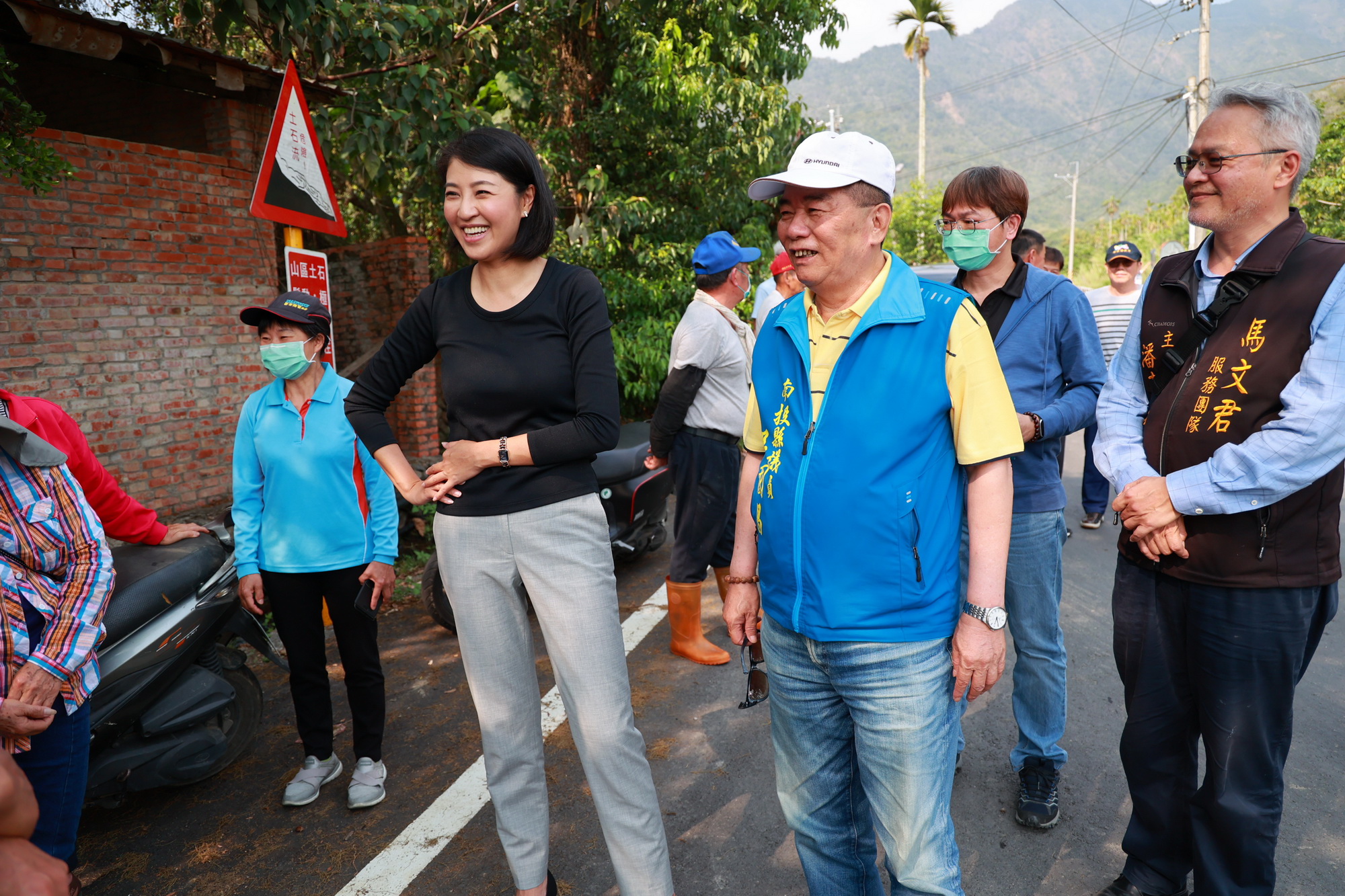 許縣長第一站來到珠格里珠生路38-2號前排水溝,珠格里里長游麗瓊及當地民眾表示,農路旁水溝因年久失修,水溝底部破損坑洞,且雜草叢生,希望縣府協助改善。許縣長會勘後表示,到現場看才發現此段排水溝前後都有住家,原來護岸的砌石擋土牆都已損壞崩落,確實有必要重新施作水溝,讓民眾身家財產可以獲得保障,初估經費約需80萬元,將責由工務處辦理測設發包予以改善。