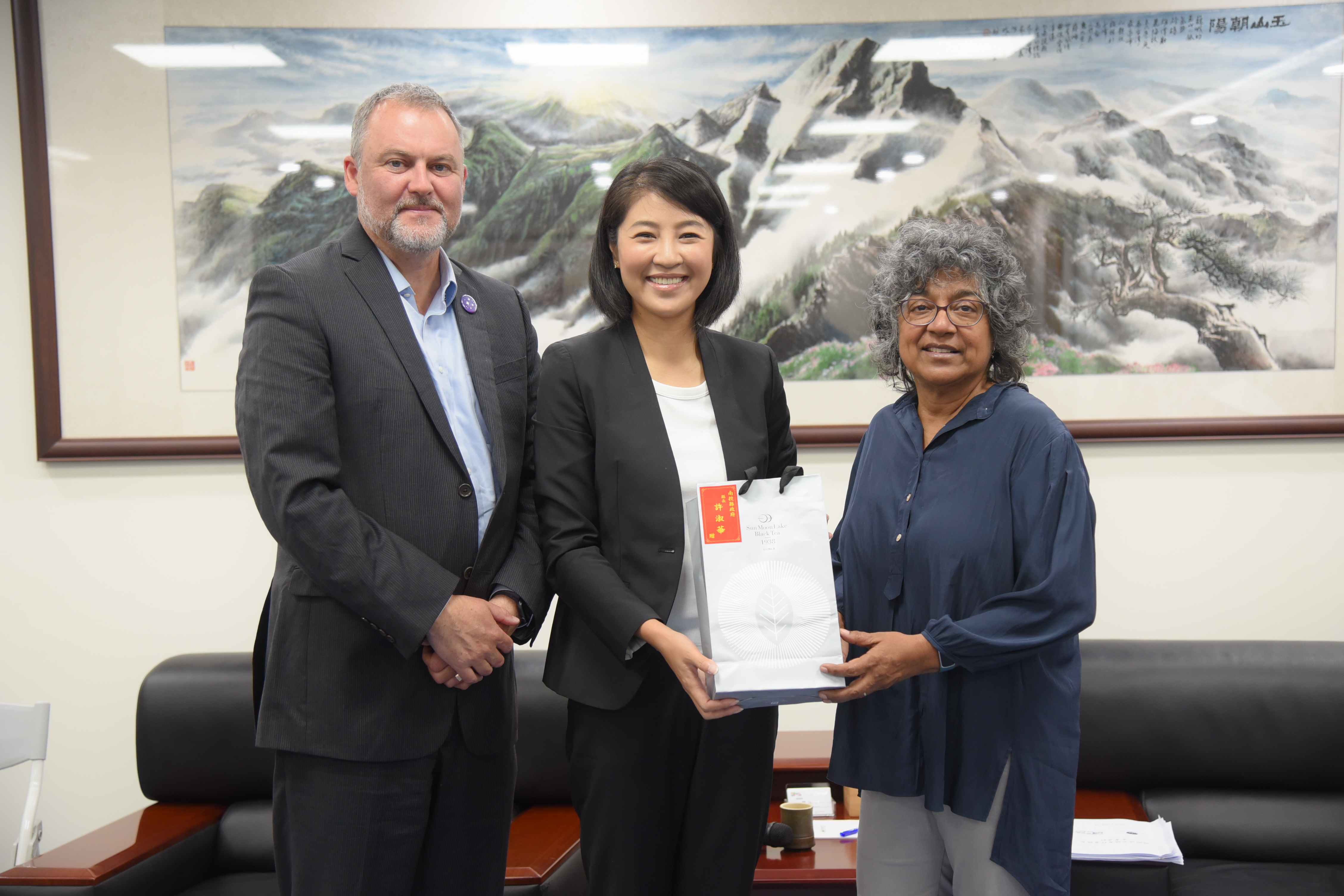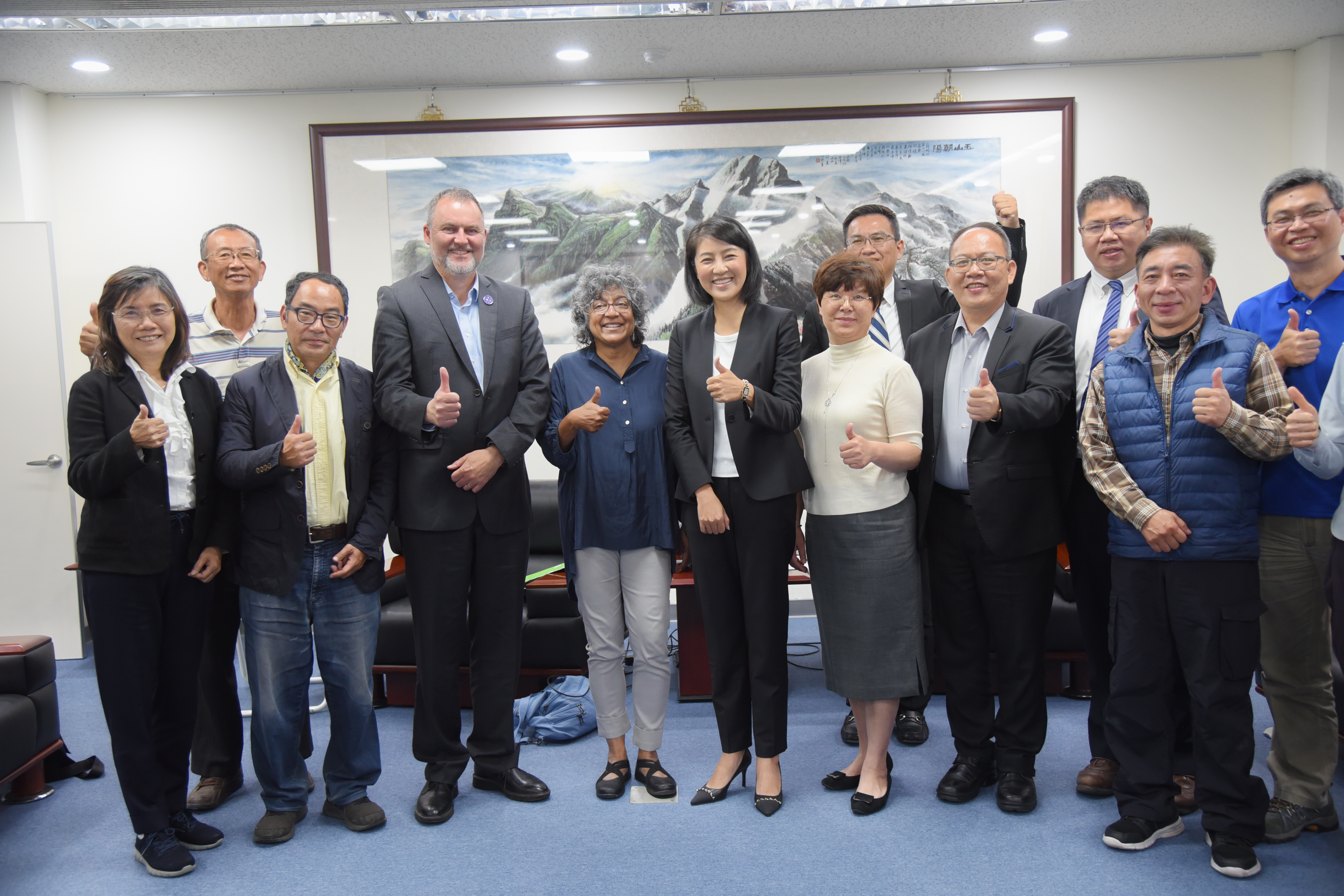 國際暗天協會副主席Nalayini Brito-Davies及執行長Ruskin Hartkey等人,17日上午由台灣暗空協會會長林正修陪同,拜會縣長許淑華,並就南投地區光害等問題,進行意見交換。