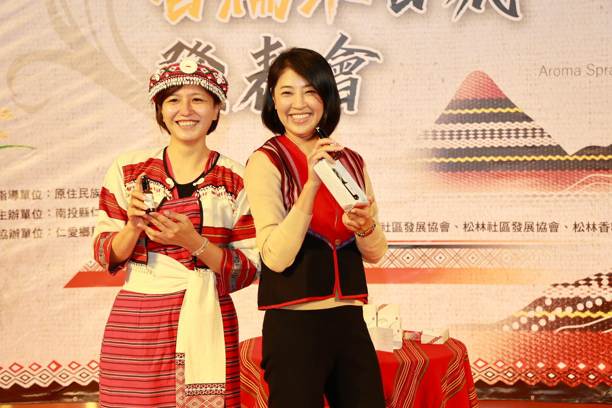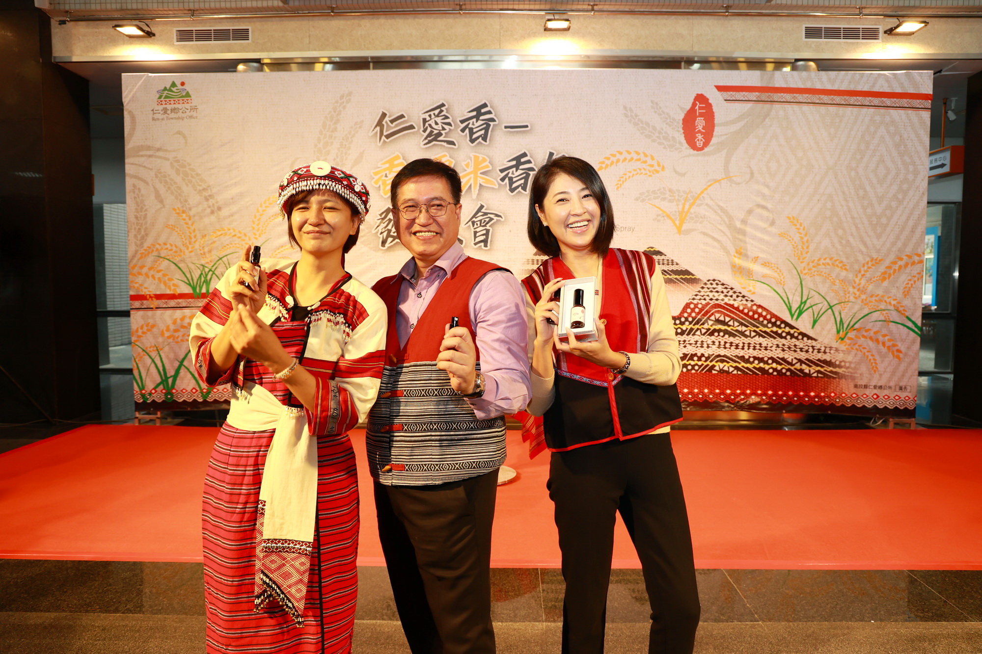仁愛鄉公所4月21日在縣政府一樓大廳舉辦「仁愛香-香糯米香氛」發表會,縣長許淑華與縣議員林婷立身著原住民傳統服飾擔任代言人,為這款以親愛村松林部落的香糯米稻梗所創新研發的香氛產品,進行推介與宣傳,許縣長肯定鄉公所及部落民眾的用心和創意,提升傳統農產品的價值與產值。