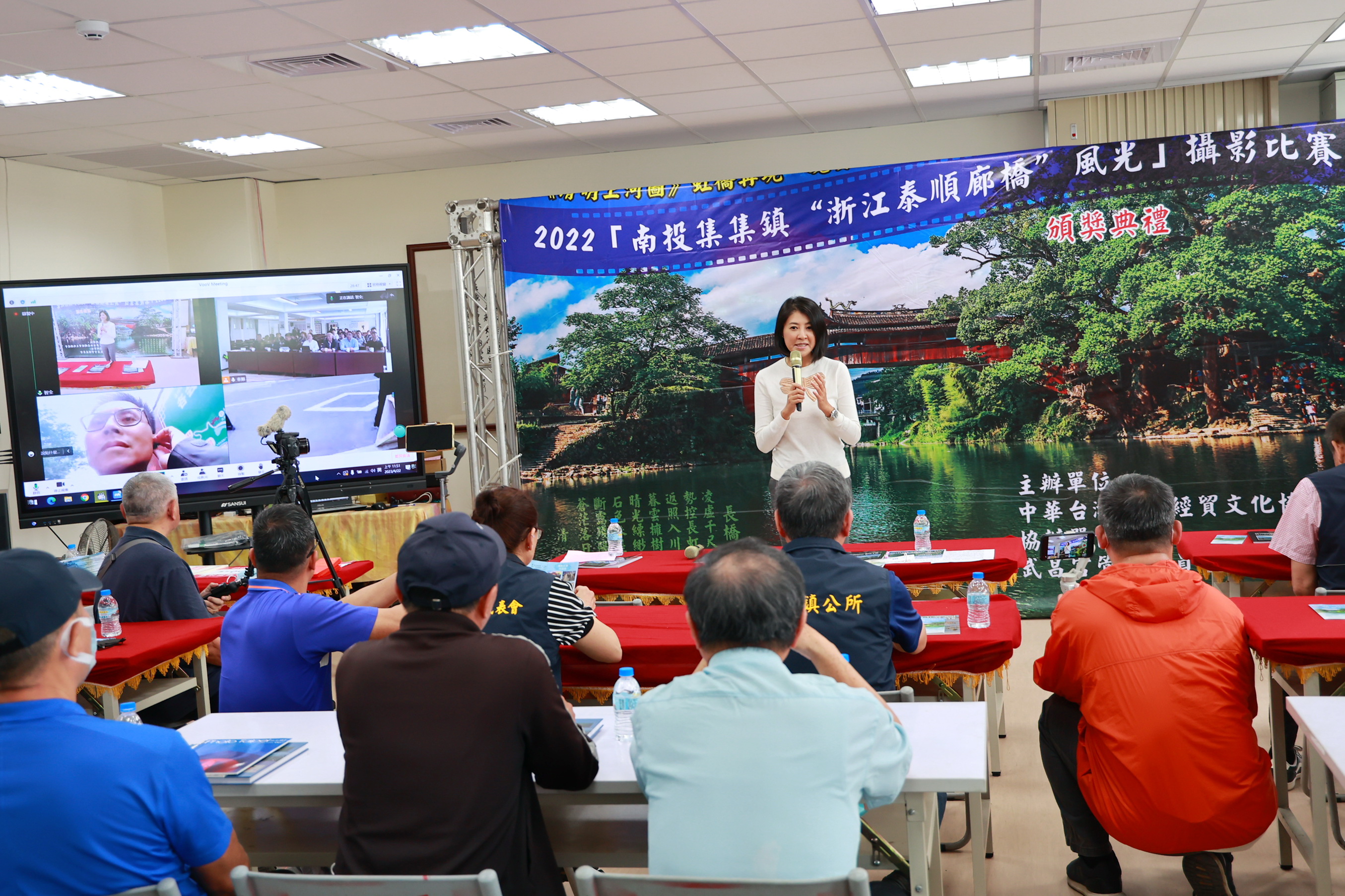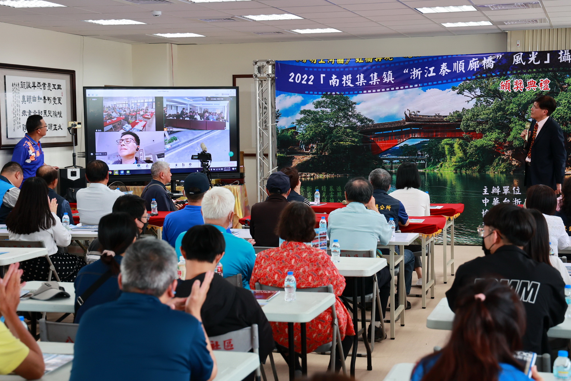 由中華台浙泰順經貿文化協進會主辦的「南投集集鎮“浙江泰順廊橋”風光」攝影比賽,22日於八張里集會所暨長照多功能服務中心舉辦頒獎典禮,縣長許淑華受邀出席並頒獎鼓勵獲獎者,許縣長肯定文化協進會長期致力兩岸交流的努力,也期望透過攝影比賽作品,能將集集鎮與泰順廊橋的美宣傳出去,吸引更多人到訪。 典禮中除了邀請所有得獎朋友參與外,包括縣議員黃春麟、游顥、集集鎮長吳大村、集集鎮代表會主席陳雅雯及多位地方里長也都到場共襄盛舉。協進會也透過網路與遠在大陸浙江省溫州市泰順縣的廊橋文化協會做現場連線,雙方藉由影像進行交流見證與互動,分享廊橋文化的歷史底蘊,都期望未來能有更多合作交流的機會。 許縣長除了頒發獎金、獎狀給獲得前三名的攝影作者外,也感謝文化協進會的促成和努力,許縣長表示,浙江泰順廊橋歷史悠久,是世界非物質文化遺產之一,在2019年時由溫州市捐贈給南投縣,設立在集集武昌宮旁。許縣長也談到當年接洽的艱辛過程,歷經3年不斷的協調,及許多人的努力下才順利落腳在南投,現在已經是集集的新觀光旅遊點,更是熱門的打卡景點,也希望透過攝影比賽的宣傳,能讓更多人透過專業的攝影作品認識廊橋與集集之美,進而吸引更多人來參觀。 協進會理事長蔡之貫則表示,舉辦攝影比賽就是要透過鏡頭呈現出全台唯一的泰順廊橋之美,從2022年8月開始徵件至2023年2月,共有2千件作品參加,其中社會組1600健、學生組400件,參加者非常踴躍,協會除將金牌獎金增至5萬元外,也特別增加10名入選獎,來鼓勵參與攝影比賽的朋友。 這座泰順廊橋是台灣唯一的一座泰順廊橋,位於集集武昌宮旁的清水溪上,採用三重簷結構,橋頭兩端設亭,2019年竣工圓橋,命名「浙江泰順廊橋」,成為架起兩岸友誼之橋,帶動南投旅遊發展,已成為南投旅遊的新名片。