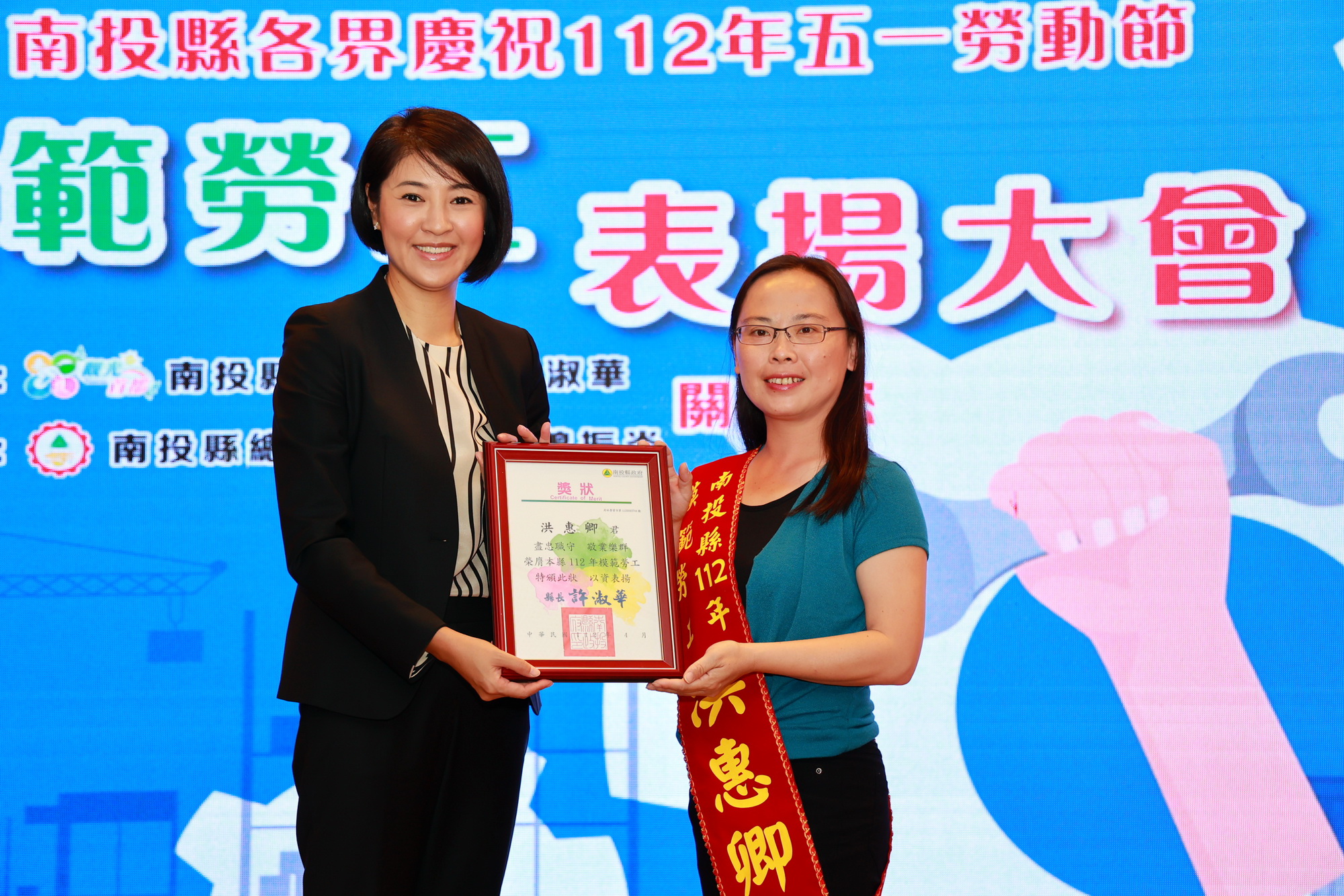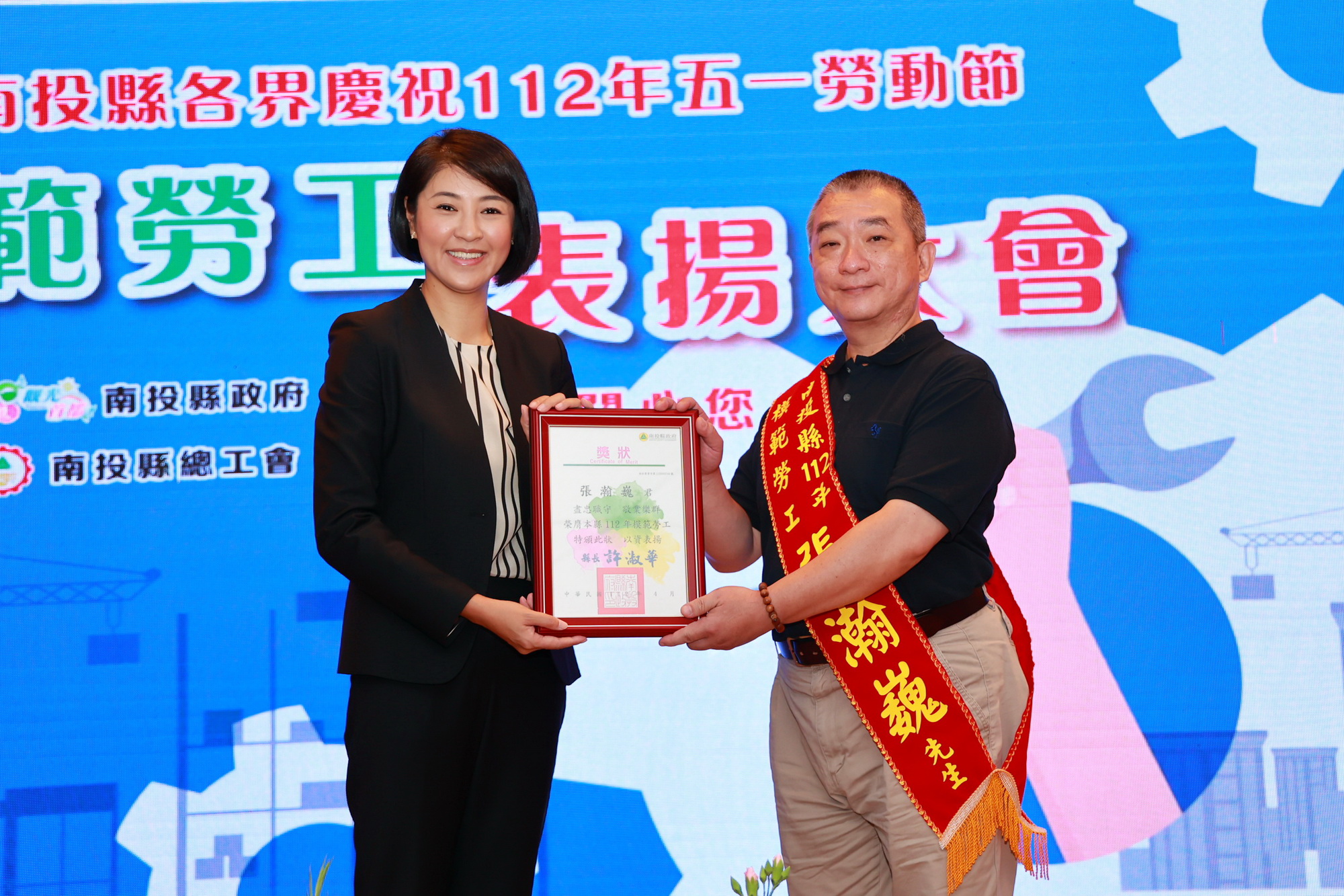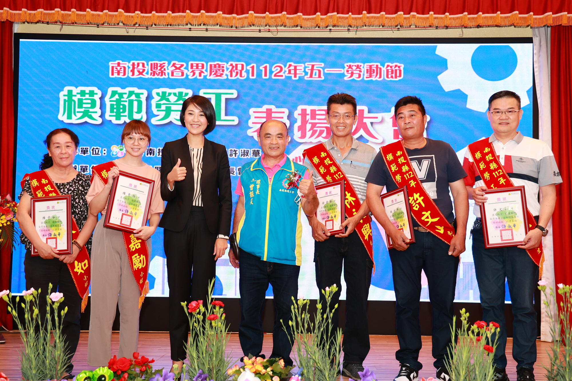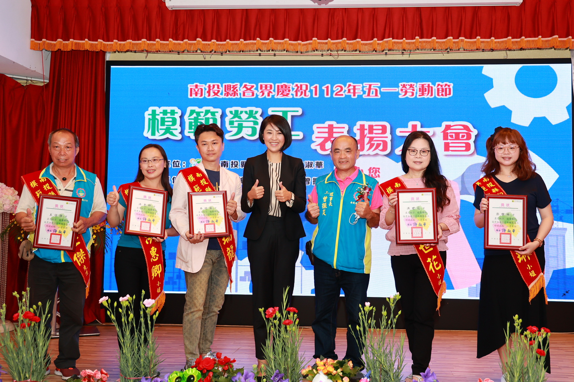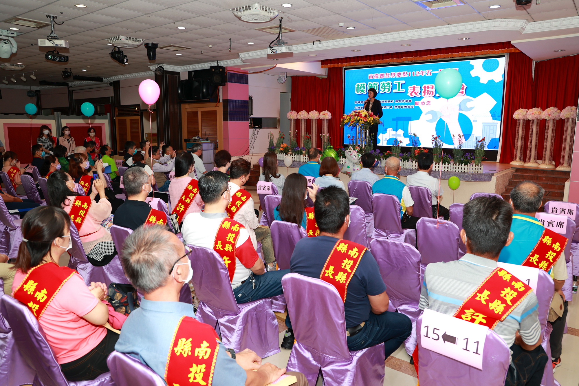 南投縣政府為表達對勞工們的重視與敬意,五一勞動節前夕,28日在南投市樂涼園藝餐廳舉辦一年一度的「模範勞工表揚大會」,共有來自全縣各產(企)、職業工會及事業單位所推薦的87位模範勞工接受表揚,縣長許淑華親自前往頒發獎狀並致贈紀念品,慰勞終年辛勤打拼的勞工朋友們,肯定大家的優秀表現。