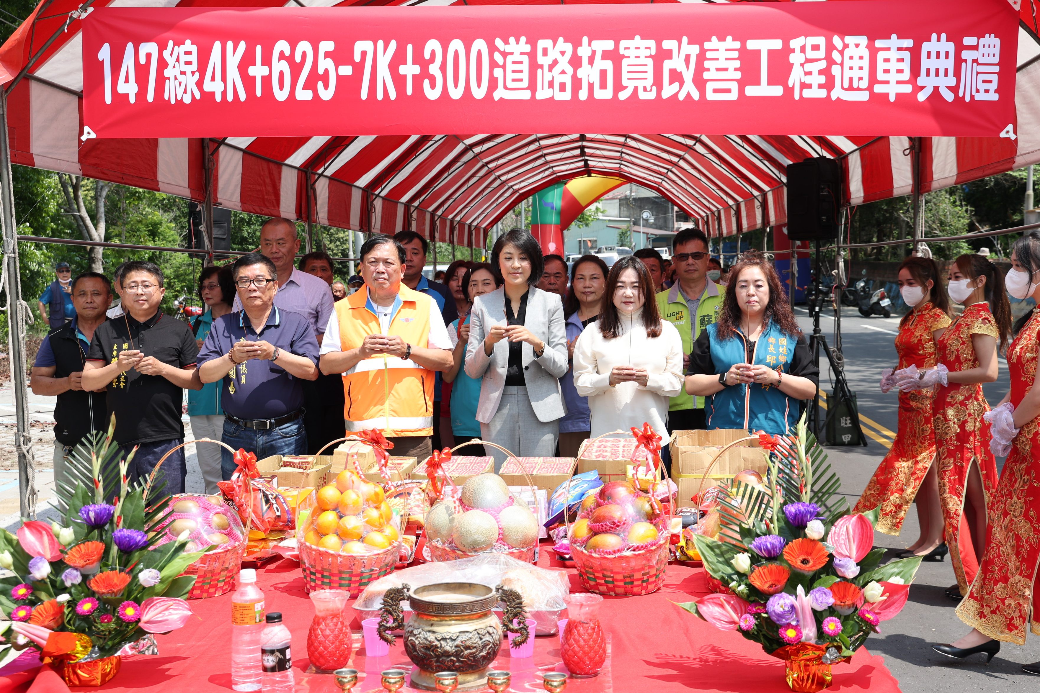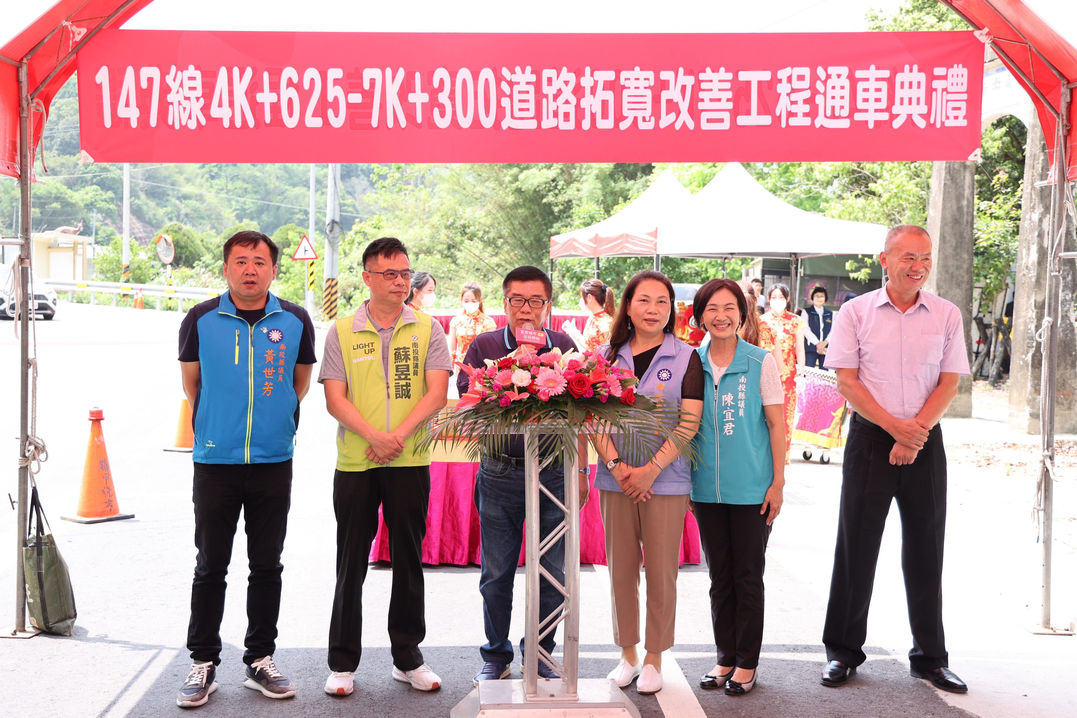147線國姓鄉段4K+625~7K+300道路拓寬改善工程完工,1日舉辦通車典禮,縣長許淑華偕立委馬文君、多位縣議員及眾多地方士紳共同剪綵,在地鄉親也熱情到場同樂,許縣長除正面回應縣議員建議解除這段禁行甲級遊覽車的限制,也強調指出,147線剩下最後的7公里路段還未拓寬,縣府會列入優先推動的重大建設,積極爭取經費早日完成。
