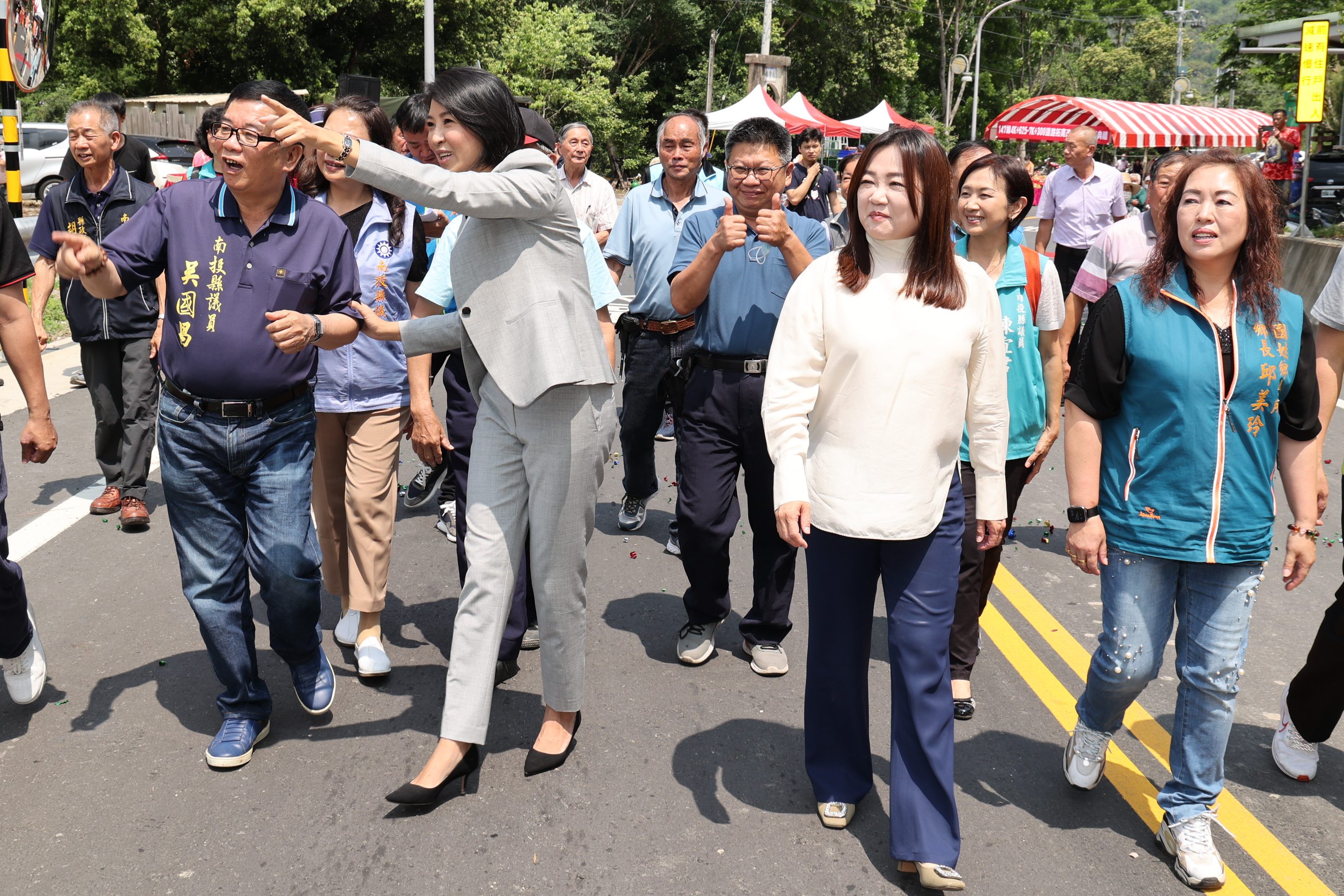 1日的通車典禮在南港村水鹿原鄉公園旁舉行,許淑華縣長由工務處長簡青松陪同出席,立委馬文君、公路總局第二區養護工程處長謝俊雄、縣議員吳國昌、林芳伃、黃世芳、戴世詮、陳宜君、蘇昱誠、國姓鄉長邱美玲、國姓鄉代會主席賴權藝等鄉代、南港村長洪永鎮及眾多地方鄉親參加,在鑼鼓陣頭及主獅獻瑞祈福後,許淑華縣長率領大家虔誠焚香祭拜祝禱通車平安,隨即熱鬧剪綵通車,許縣長並與眾人徒步走了一小段拓寬新路,看到一旁新設的水鹿裝飾候車亭特別介紹給同行的議員們,顯得十分滿意。