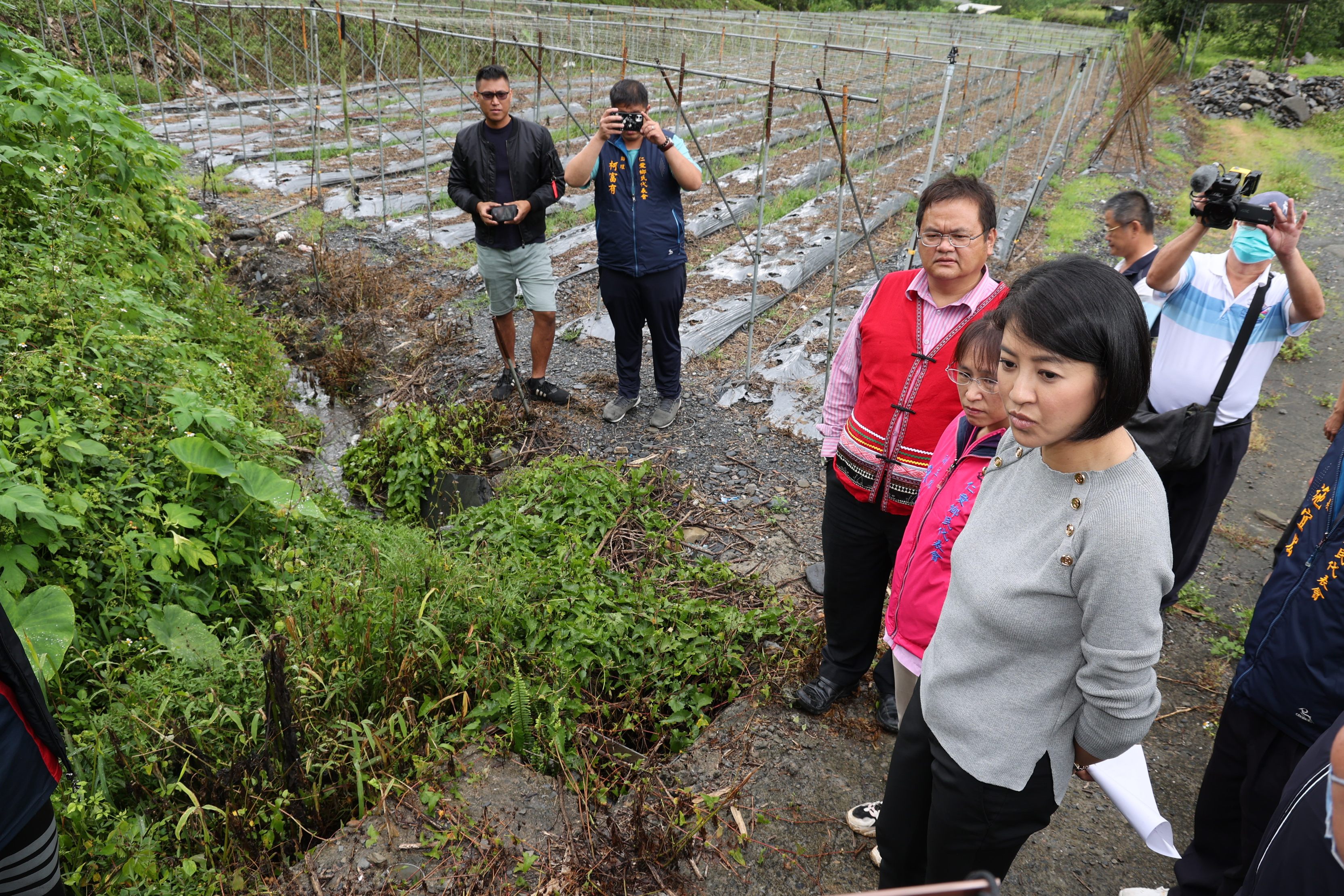 許淑華縣長8日的會勘行程,包括縣議員吳國昌、黃世芳、林婷立及立委馬文君服務處主任潘杰宏都陪同,仁愛鄉長江子信、鄉代會主席洪文全、副主席陳秀惠及高俊明等多位代表、村長也都出席會勘及簡報。