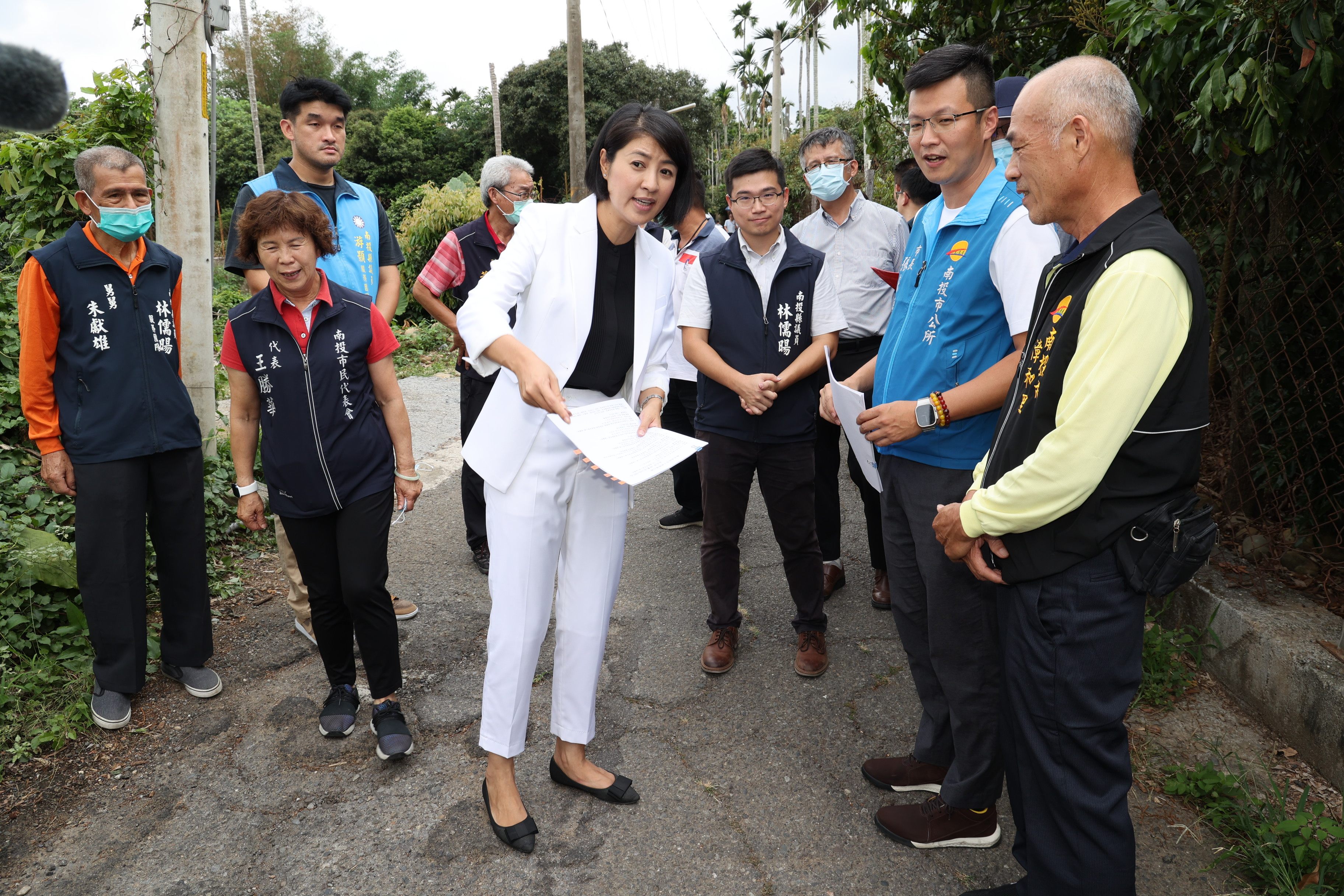許縣長一行接著也會勘了光輝里省府路巷弄路面老舊破損及營北里仁政街23巷路年久失修的問題,許縣長說,這兩處道路也將花費近200萬元刨除重鋪新的AC路面,感謝張市長也立即回應居民的擔心,在重鋪新的路面同時,市公所也會負責清疏改善路旁排水溝淤塞的問題。
