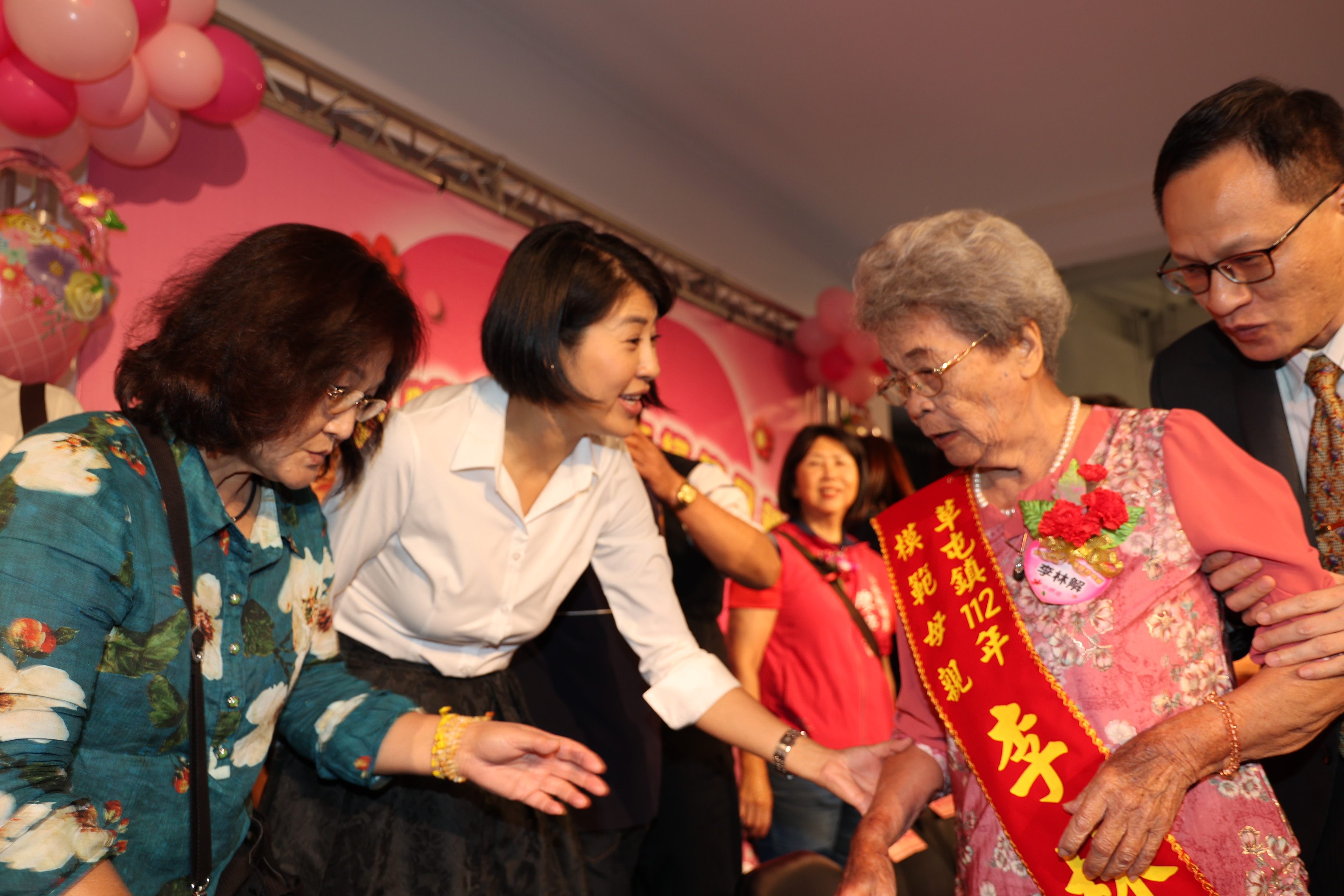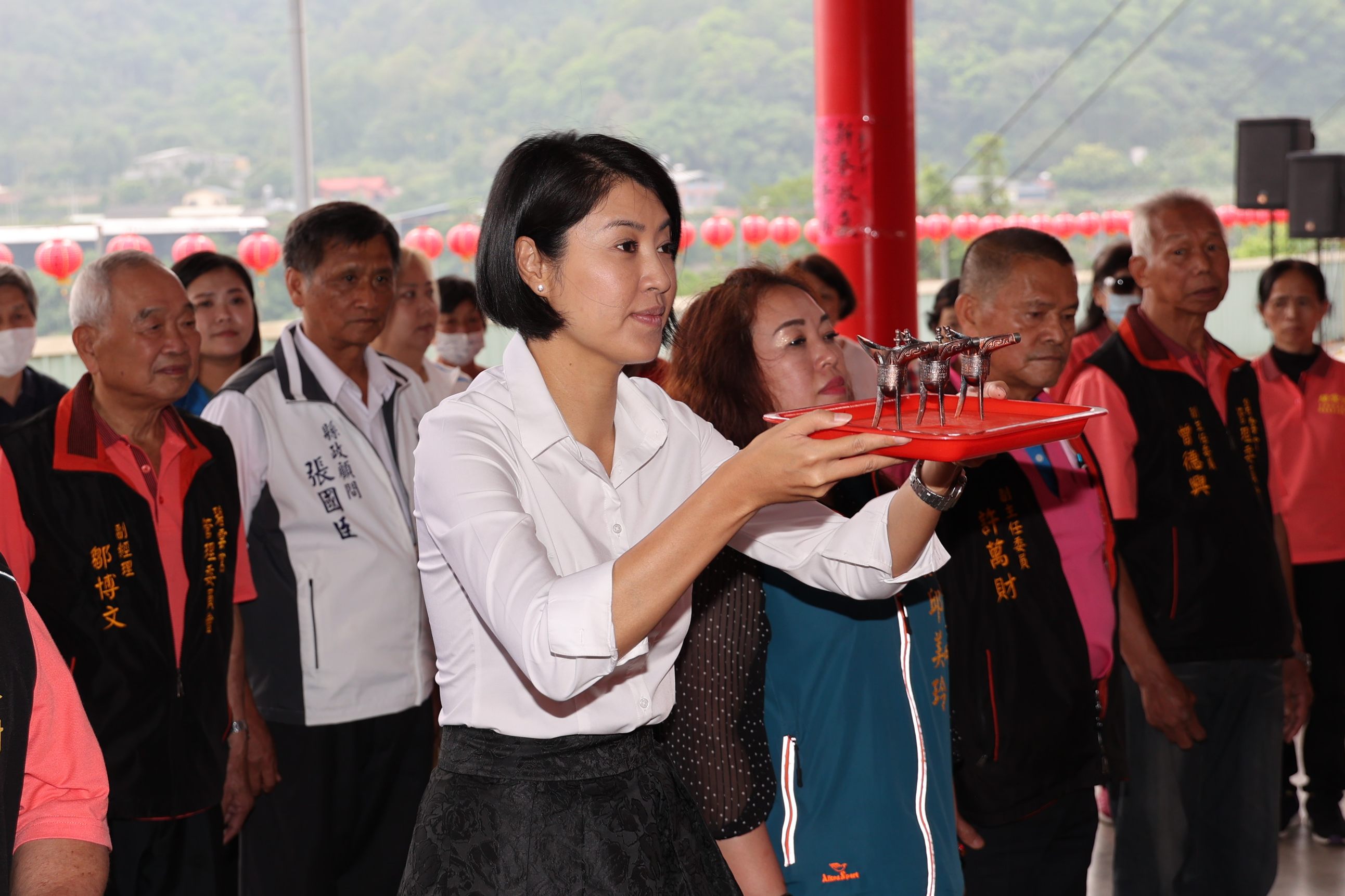 農曆3月23日喜逢天上聖母媽祖千秋壽誕,12日下午縣長許淑華專程遠赴國姓鄉碧雲宮,向主祀的天上聖母媽祖賀壽,並致贈「恩覃寶島」匾額,許縣長還與眾多到場參加「媽祖生」慶典的鄉親大啖志工媽媽現做的客家麻糬和特產國姓咖啡展現親和力;隨後許縣長趕往草屯鎮參加時隔3年再次舉辦的全鎮模範母親表揚及慶祝餐會,許縣長特別祝福天下的媽媽及所有獲表揚的模範母親,天天都像過母親節一樣健康快樂。 為慶祝「媽祖生」,國姓鄉北港村碧雲宮昨晚特別舉辦系列為天上聖母媽祖賀壽的活動,許縣長則趕在活動前專程前往參香獻祭虔誠向媽祖婆祝壽,許縣長在鄉長邱美玲、碧雲宮主委林慶禎率眾執事及縣政顧問胡水發、林衍州等人陪同上,依序焚香、獻花、獻果、獻爵、獻牲禮,最後並致贈碧雲宮「恩覃寶島」匾額,隨後邱美玲鄉長也致贈碧雲宮「神恩浩蕩」匾額。 許縣長指出,感謝碧雲宮天上聖母長期庇護國姓在地鄉親,能有機會以縣長身份到碧雲宮掛上一塊匾額,實在是非常榮幸,她也特別向媽祖婆祈求,能繼續展現神威並澤被國姓鄉及南投全縣,庇佑南投縣闔境平安風調雨順。 隨後,許縣長也在晚間7時許趕到草屯鎮公所在九九峰動物樂園舉辦的全鎮模範母親表揚及慶祝母親節餐會,許縣長除開心的與縣議員唐曉棻、廖梓佑、簡賜勝、李洲忠、簡峻庭、林友友接受表揚的模範母親合影,也祝福所有媽媽們母親節快樂,她表示,受疫情影響過去幾年表揚模範母親多改由鄉鎮長到宅祝賀的方式,如今疫情趨緩,草屯鎮公所就選擇極具特色的九九峰動物樂園擴大舉辦模範母親表揚大會,讓全鎮27里的模範母親、家屬及地方代表里長都能齊聚同樂,更顯意義不凡,在母親節前夕,特別要祝福天下所有的母親們佳節愉快,天天都像過母親節一樣平安快樂。 草屯鎮95歲高齡的新厝里模範母親張李秀絹由里長簡宏校陪同受訪,耳聰目明的張李女士談到獲獎心聲說,只希望全家大大小小都平安就好了,也談到當媽媽的甘苦說,她就是喜歡隨時和家人開開小玩笑,再大的事情就都能圓滿解決了,愛拍照的張李秀娟和簡里長合影時還比出俏皮的耶(Y)手勢,歡喜心情全寫在臉上。 山腳里模範母親郭敦尉女士在里長陳松茂眼中更是無比難得的抗癌志工,郭女士雖然罹癌3年,卻不僅仍是家中最受敬愛的媽媽,還堅持投入社區志工服務,郭女士說,當選模範母親她高興的好幾天睡不著,有機會在照顧好自己家人的同時,擔任志工打掃環境整理社區小公園讓她很有成就感,現在最大的希望就是兒女趕快成家立業讓她早點抱孫。