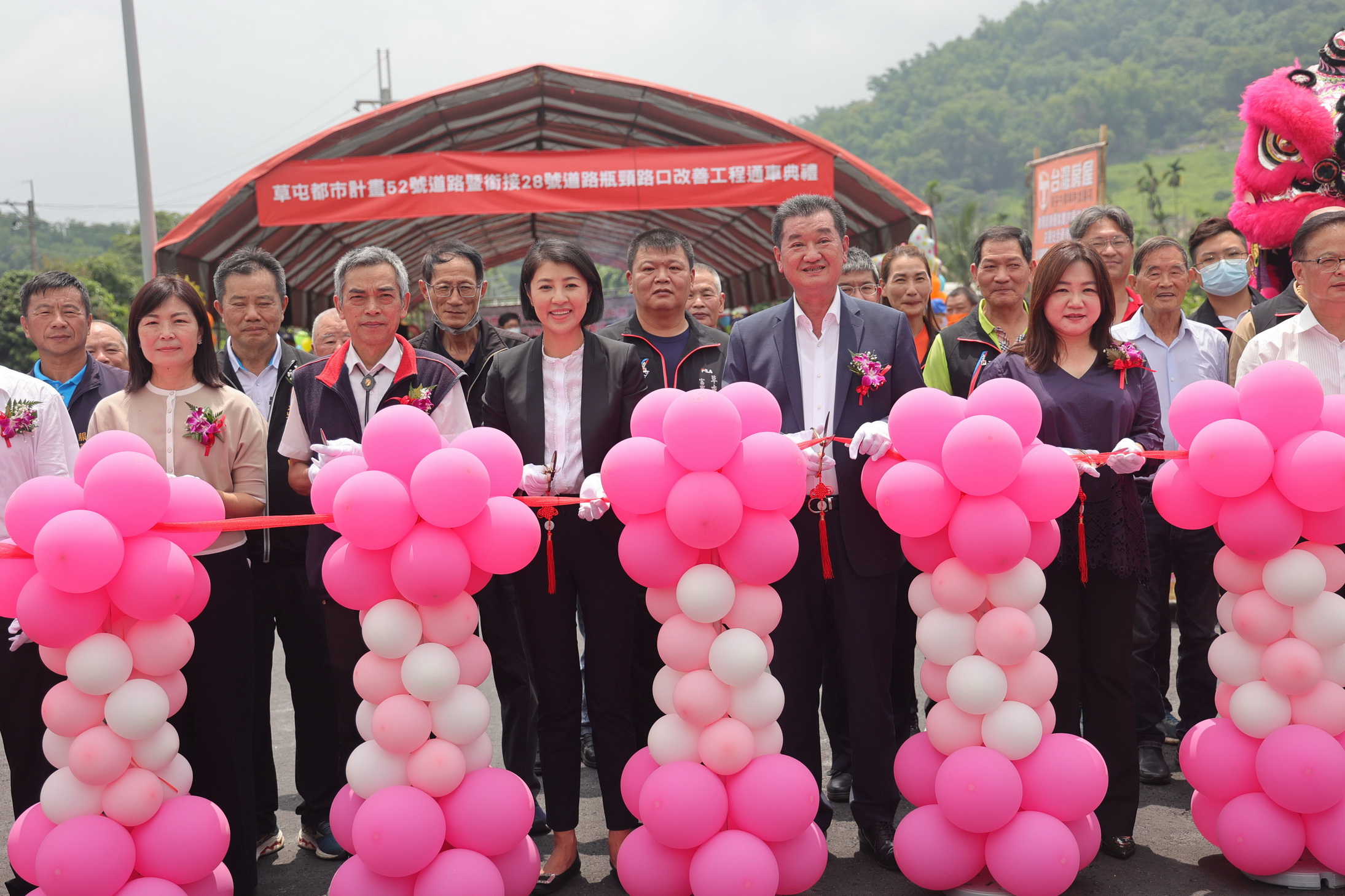 許縣長說,「草屯都市計畫52號道路暨銜接28號道路瓶頸路口改善工程」緣起虎山路沿街商店及住宅建物密集,聯外交通與居民生活互為干擾,形成道路瓶頸所在,民眾長年以來忍受不便,也造成交通安全之隱憂。自洪敦仁鎮長開始歷經數鎮長任期爭取,最終均以未能獲地主及地方人士認同而作罷,草屯鎮長簡景賢就任後,深感改善富林路28號道路瓶頸危險路段刻不容緩,公所遂提案向內政部營建署爭取生活圈交通系統建設計畫補助辦理新建都市計畫52號道路以求改善,俾落實都市計畫道路開闢及便捷交通,帶動地方發展的目標,在簡鎮長積極溝通下,獲得地主們同意後,歷經14個月的努力,終於完工通車,全長含舊有路段共約895公尺,核定計畫總經費(用地及工程費)為新臺幣1.54億元,中央補助新臺幣6,182餘萬元,餘為地方配合款,由縣府補助新臺幣2,500萬元,餘為公所自籌新台幣6,757萬元。此計畫道路通車啟用後可有效疏散富林路及虎山路車潮,提供在地民眾更順暢便利的替代道路,不管居民通行,鄰里聯絡或埔里、國姓民眾到草屯、中興新村都相當方便,未來縣府會持續結合縣籍立委爭取中央經費,住公所改善草屯鎮瓶頸路段,提升生活及交通品質,讓草屯鎮更宜居。