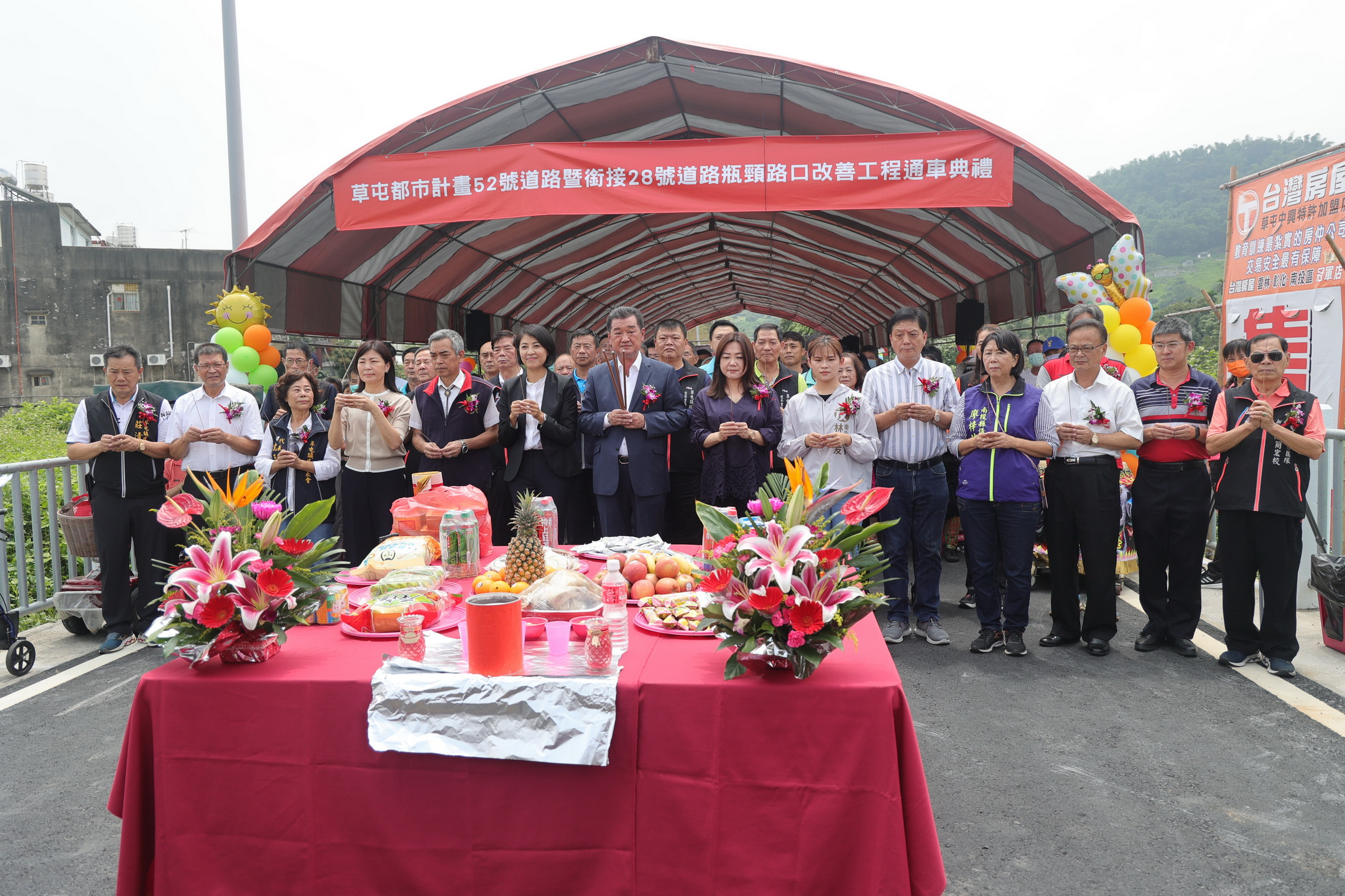 位於草屯鎮虎山路648巷底的草屯都市計畫52號道路暨銜接28號瓶頸路口改善工程,在地方的支持下,歷經14個月施工,於112年4月底完工,27日上午盛大舉行通車典禮,縣長許淑華、鎮長簡景賢牽著耆老與鄉親一同走在寬敞的路面,歡慶通車啟用,鄉親們異口同聲表示,新路又寬又平整,未來要來往富寮里更安全便利,鄉親都很高興。