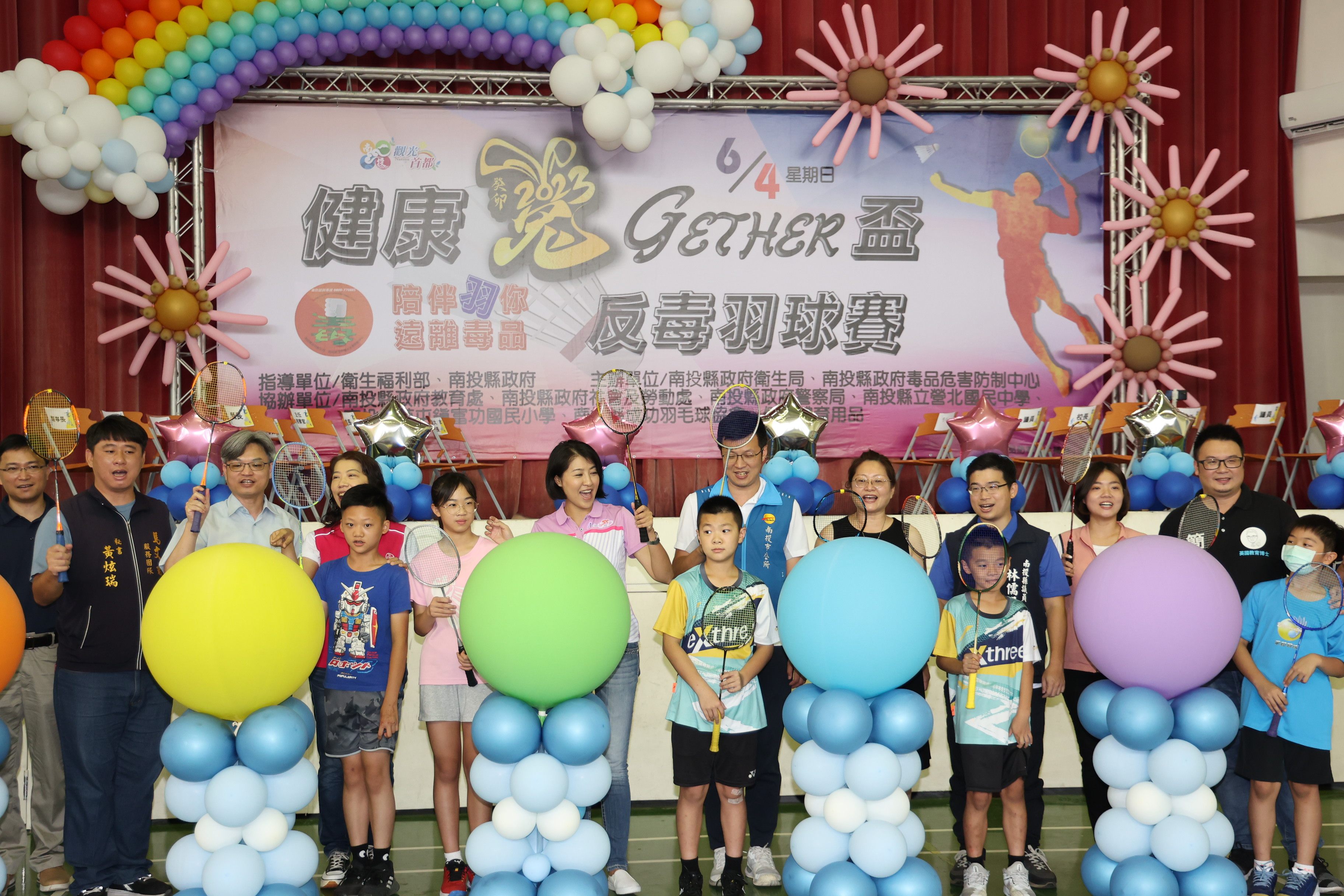 南投縣政府毒品危害防制中心為響應6月26日「國際反毒日」, 4日於營北國中舉辦「112年健康〝兔(To)〞gether盃反毒羽球賽」。縣長許淑華蒞臨開球,為參賽的國中小130組600位親子選手加油打氣,許縣長鼓勵大家藉由健康休閒運動,宣導毒品防制知識,透過正向運動取代不良嗜好,促進身心健康,打造反毒家園。