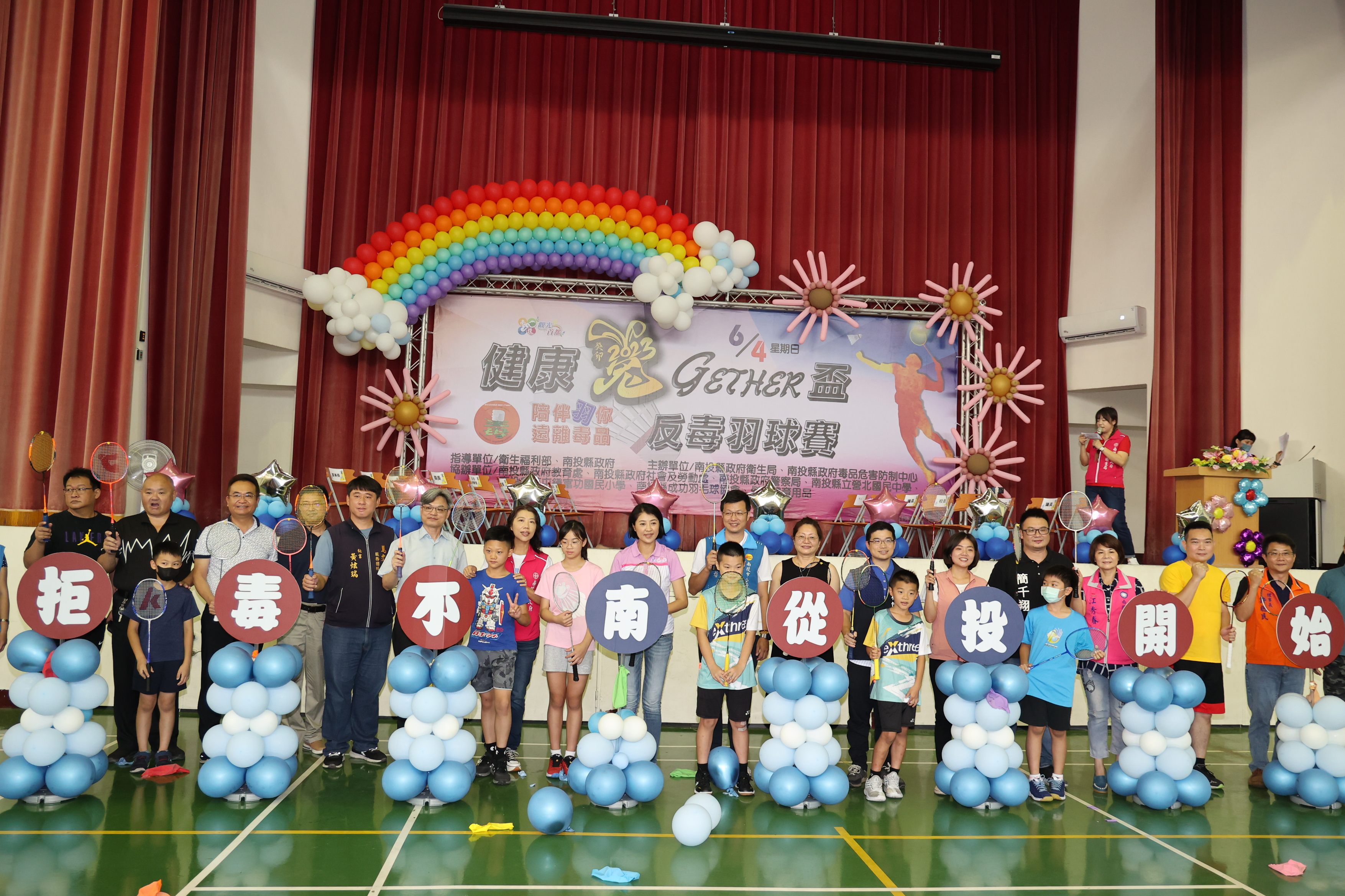 這項鼓勵親子大小朋友一起參加的反毒羽球賽,獲得各界重視與支持,包括許淑華縣長、南投縣議員林儒暘、張婉慈、簡千翔、立委馬文君秘書黃炫瑞、南投地檢署主任檢察官賴政安等眾多貴賓齊聚,並參加別開生面的開球儀式,宣示「拒毒不『南』.從『投』開始」的決心與行動力,許縣長並致贈感謝狀給提供場地的營北國中,由校長黃美玲代表接受。