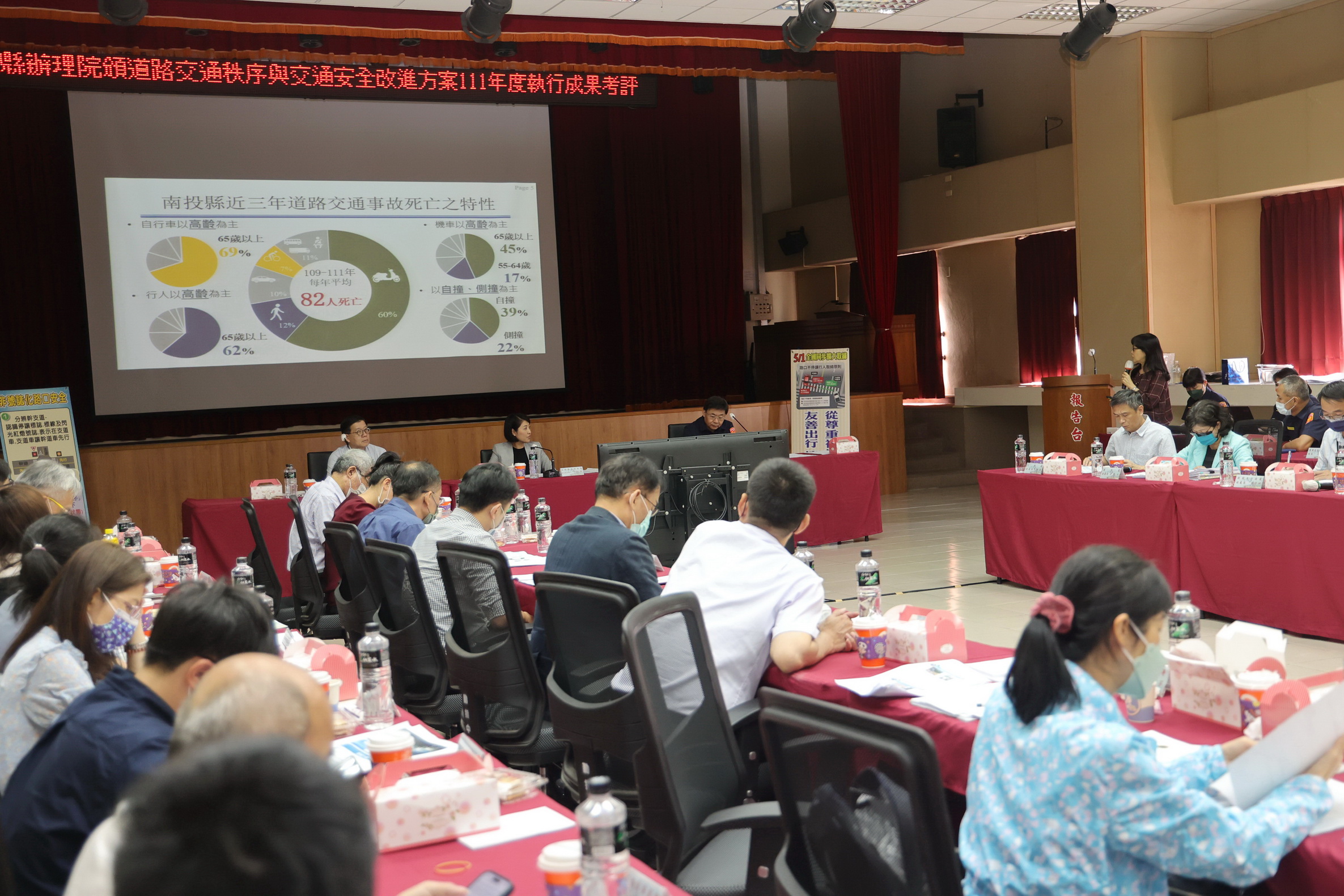 縣府辦理「院頒道路交通秩序與交通安全改進方案」111年度執行成果考評,6日在縣府警察局6樓大禮堂舉行,交通部考評小組由交通部道安委員會執行秘書黃運貴帶領蒞臨本縣實地考察,縣府道安會報相關局處及監理站等單位出席接受考評,縣長許淑華下午出席座談會,聽取各小組委員考評意見,並感謝委員對於本縣111年度執行成果給予高度肯定及多項精進建言。許縣長也表示縣府將成立交通管理所,未來執行人力及資源整合將更有效率。