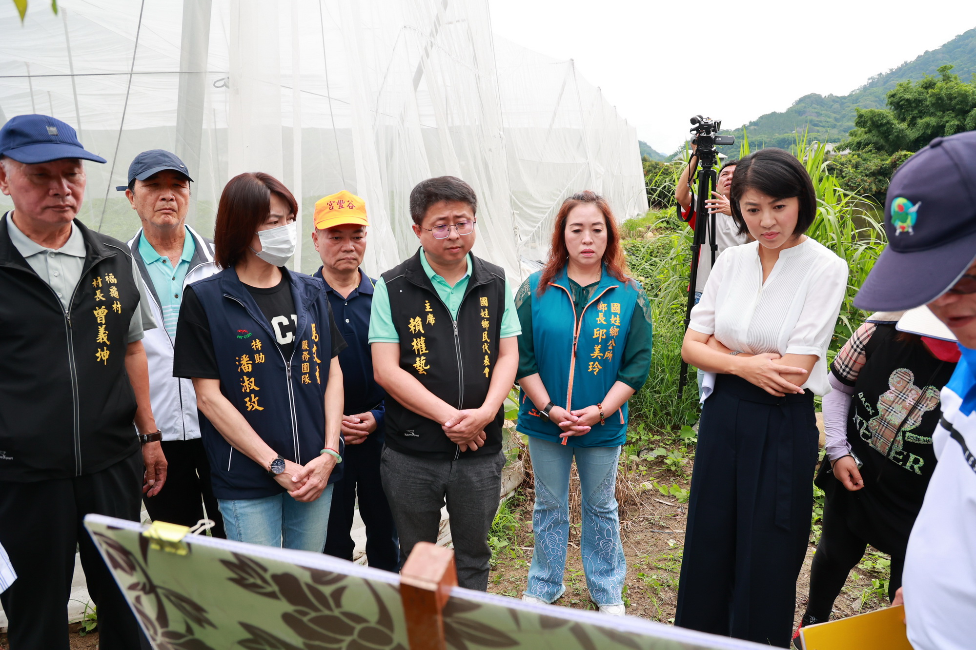 許縣長一行首先來到福龜村,在村長曾益坤帶領下來到龜溝段711地號、龜坑大排旁的農地,會勘了解護岸掏空的狀況,旁邊農地的農民表示,此段區域大排因護岸高度不夠,大水一來就容易淹水,也漸漸沖刷到農地,持續發生土地塌陷現象,希望縣府能盡快施作護岸,保護土地。