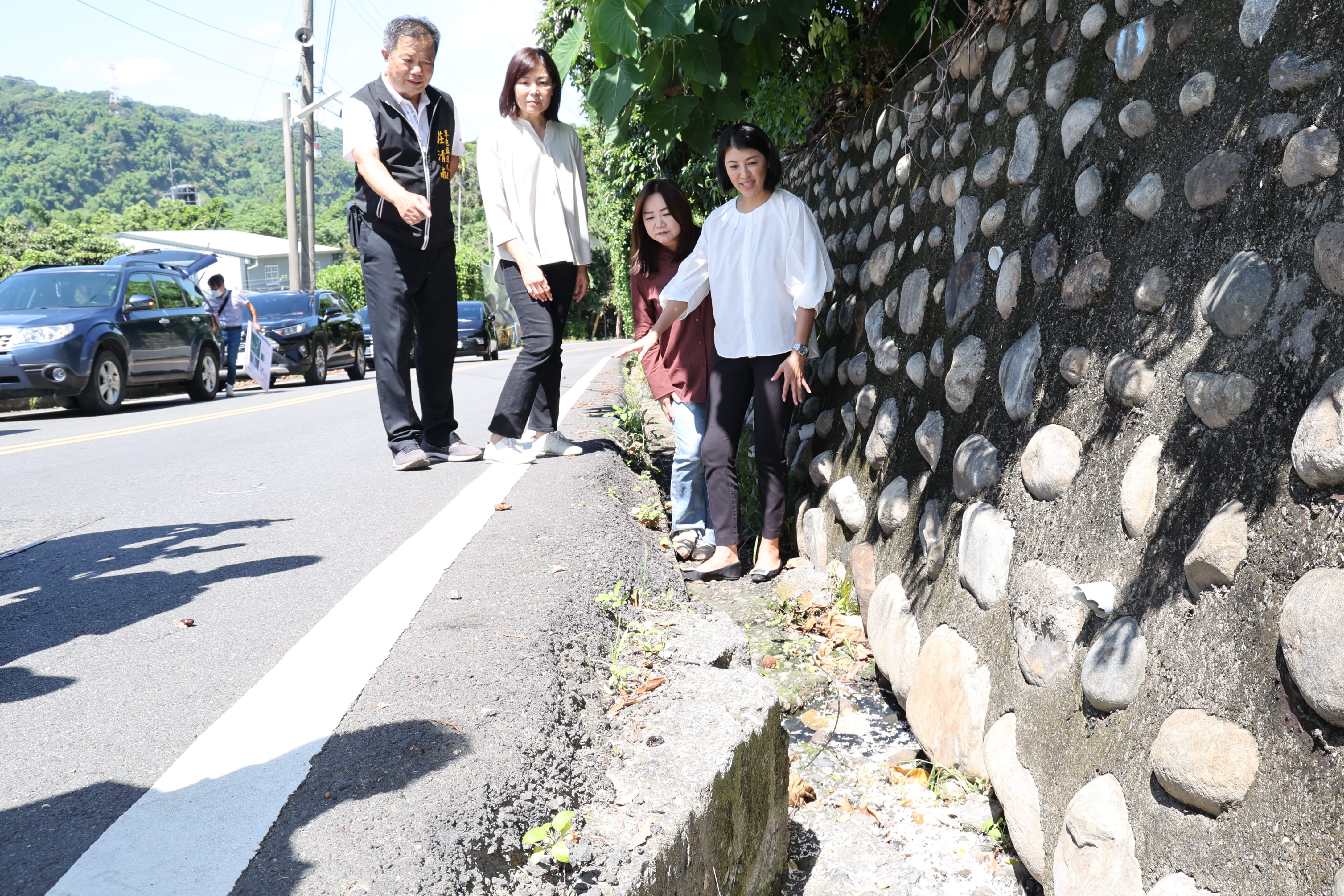 隨後許縣長一行轉往平林里,先會勘了排水溝損壞嚴重的健行路投19線,許縣長說,這段排水溝沒有加蓋,加上年久失修多處破損溝底凸起,有必要立即加以改善,將由工務處更新為100公尺長,高70公分的暗溝,再搭配10組鍍鋅隔柵板,徹底改善排水同時增加路寬提高通行安全,經費約需120萬元,全部由縣府籌措支應。平西段402地號前道路及平學路50巷113弄路面改善工程,許縣長也一併簽核了各71萬元及63萬元,責成工務處優先發包施工。