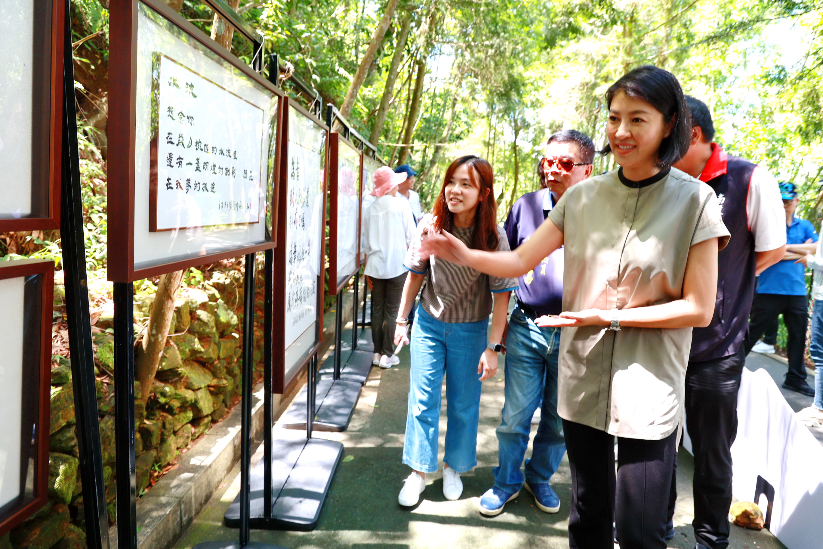 包括縣議員吳國昌、林芳伃、蘇昱誠、陳宜君、黃世芳、埔里鎮長廖志城,及參與設計的在地文學家陽荷老師、書法家蔡友老師、縣府文化局長林榮森等多位在地參與文學創作的藝術家也都到場共襄盛舉。