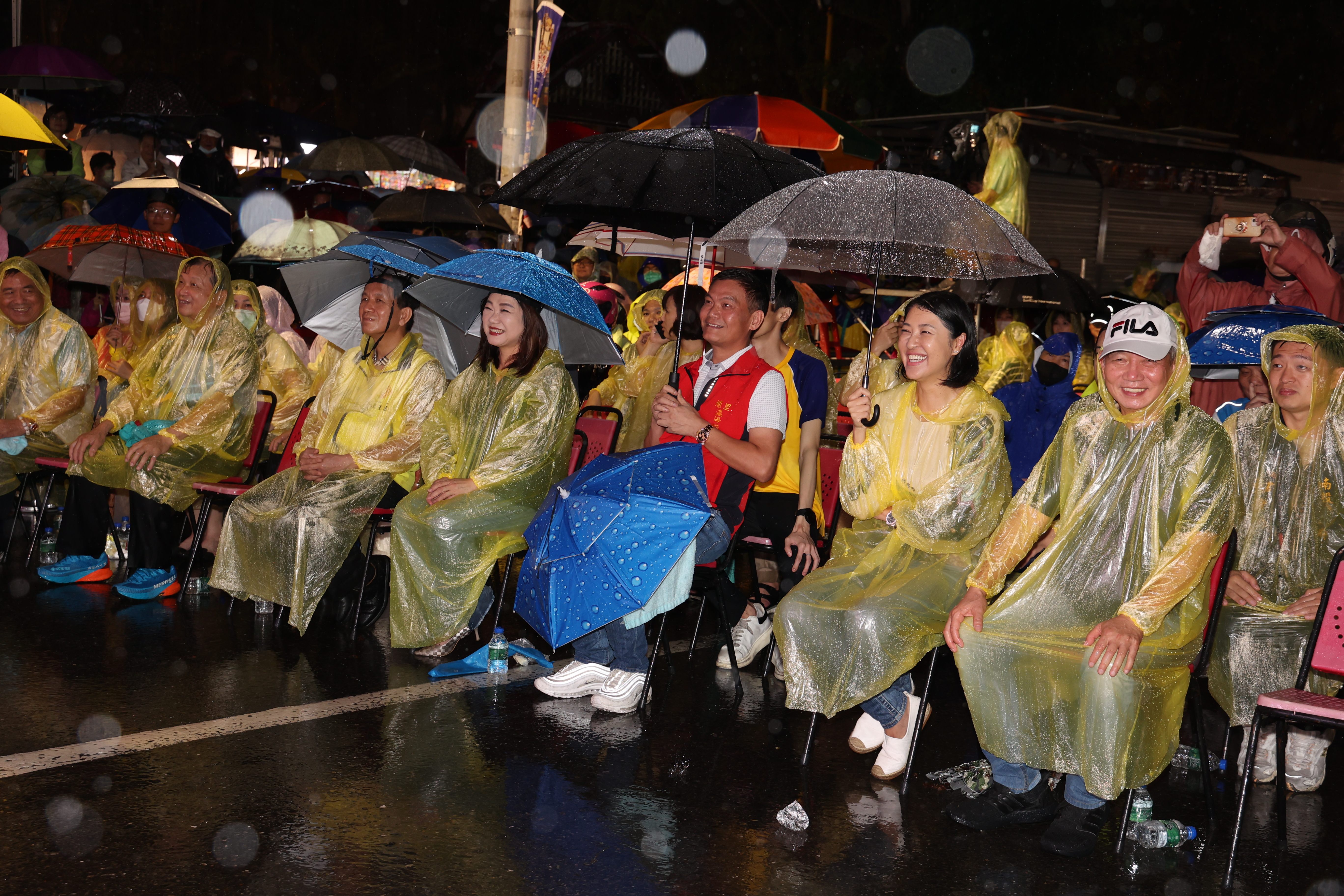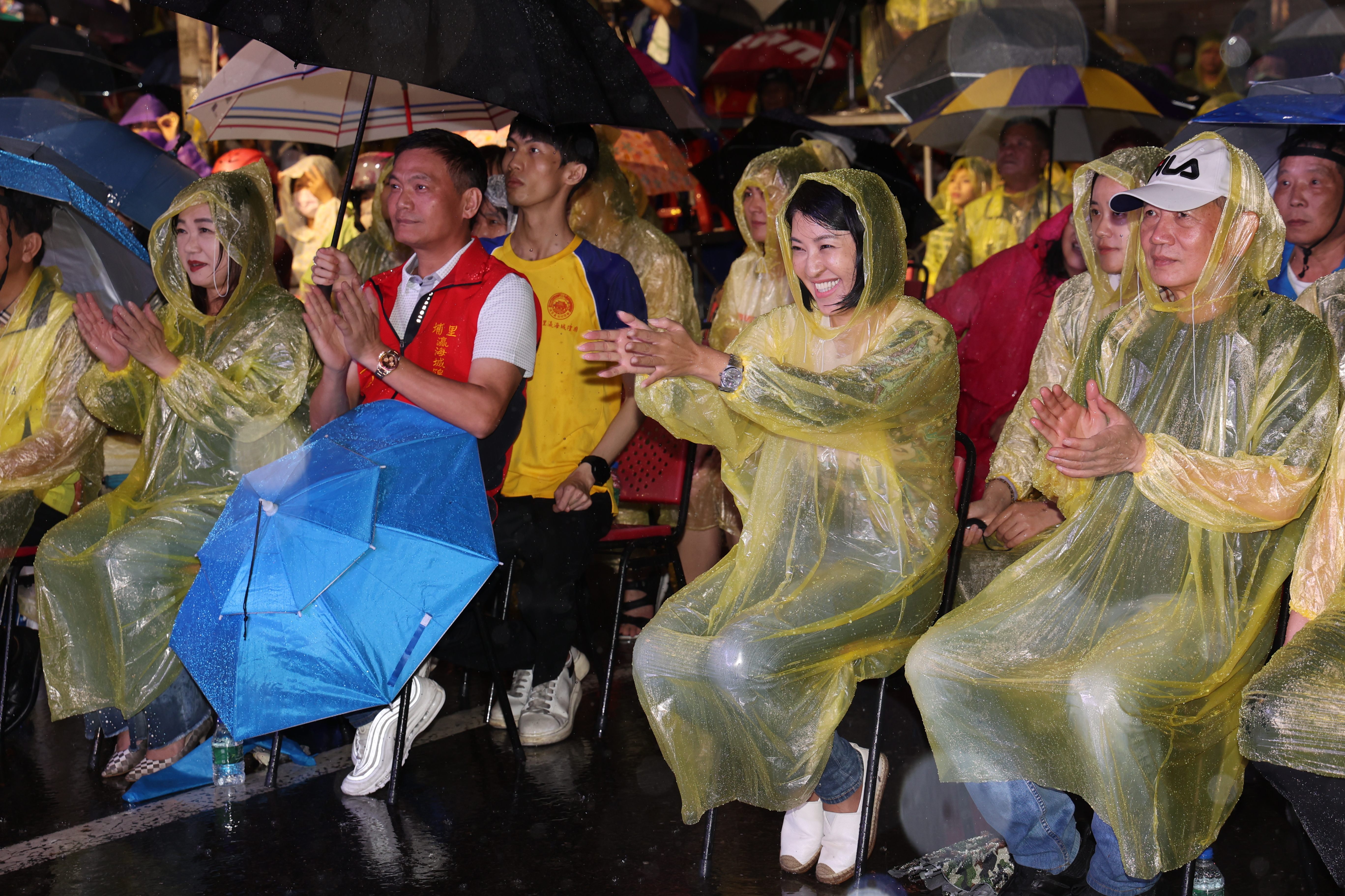 埔里大熱鬧!瀛海城隍靈驗保佑,眾神護台灣,兩大颱風從台灣南北擦邊球,全國42尊城隍爺埔里大會師照常舉行。29日晚上雖然雨勢不斷,縣長許淑華偕立委馬文君、副議長潘一全及滿場民眾,全程參加在埔里仁愛公園旁舉辦的賀壽晚會,金曲歌王、歌后輪番獻唱,熱鬧滾滾。