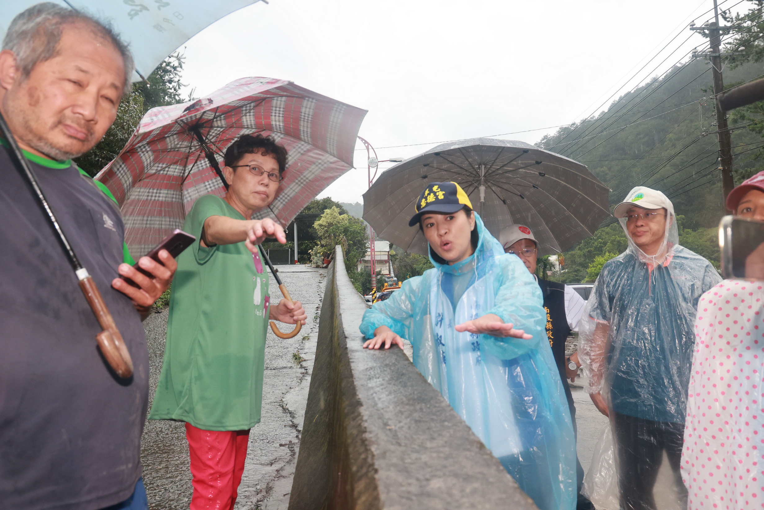 縣長許淑華5日一早會同縣議員林婷立、公路總局第二區養護工程處埔里工務段段長邱炳榕、南投後備指揮部指揮官陳建鋒、縣府原民局長史強、仁愛鄉農會總幹事戴錦稔前進仁愛鄉南豐村勘災,指示南投縣災害應變中心以撤離受困人員及協助民眾就醫優先,並與埔里工務段分工協作,儘速搶通道路,維護通行安全,並向行政院爭取救難直升機待命,支援協助民眾脫困。