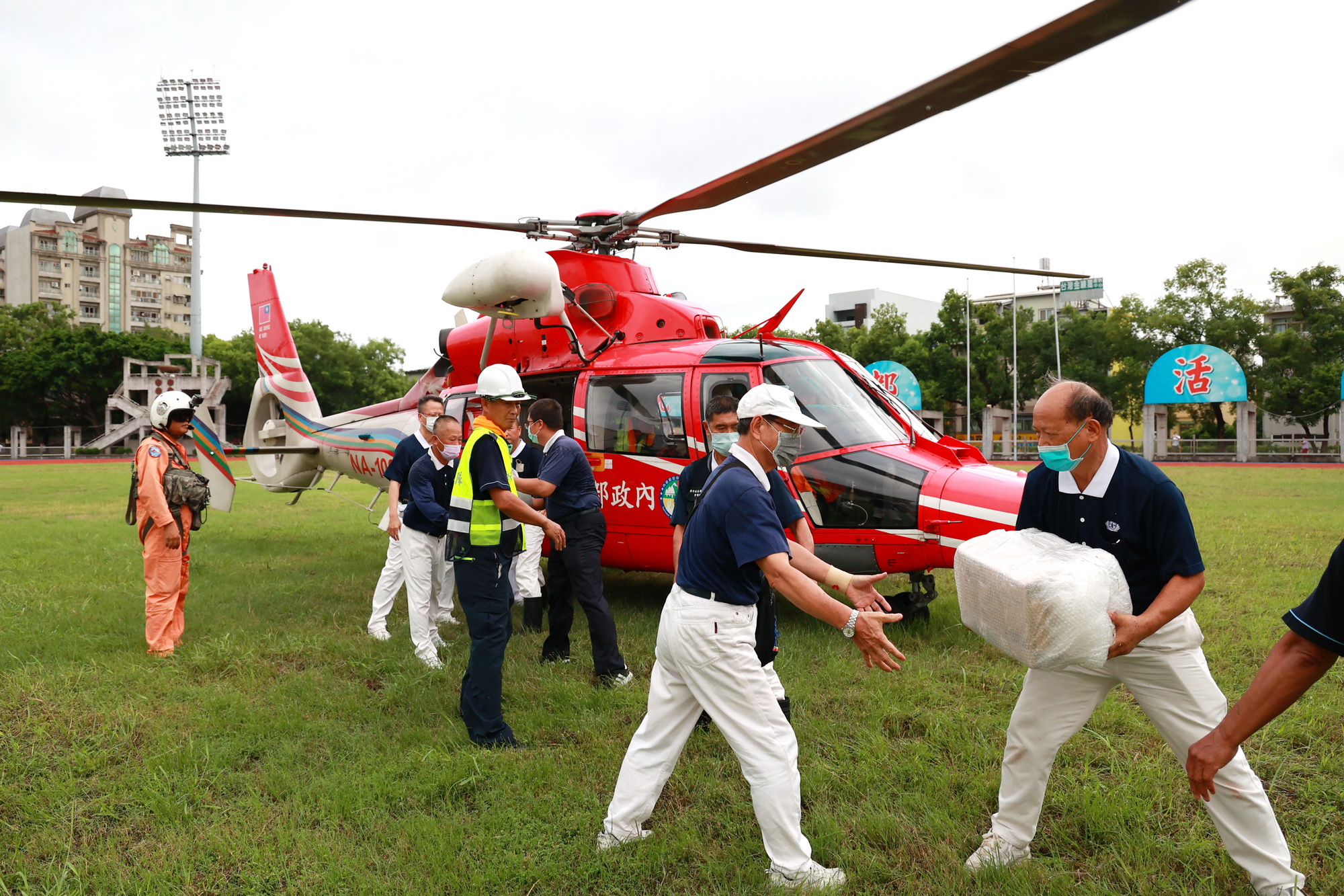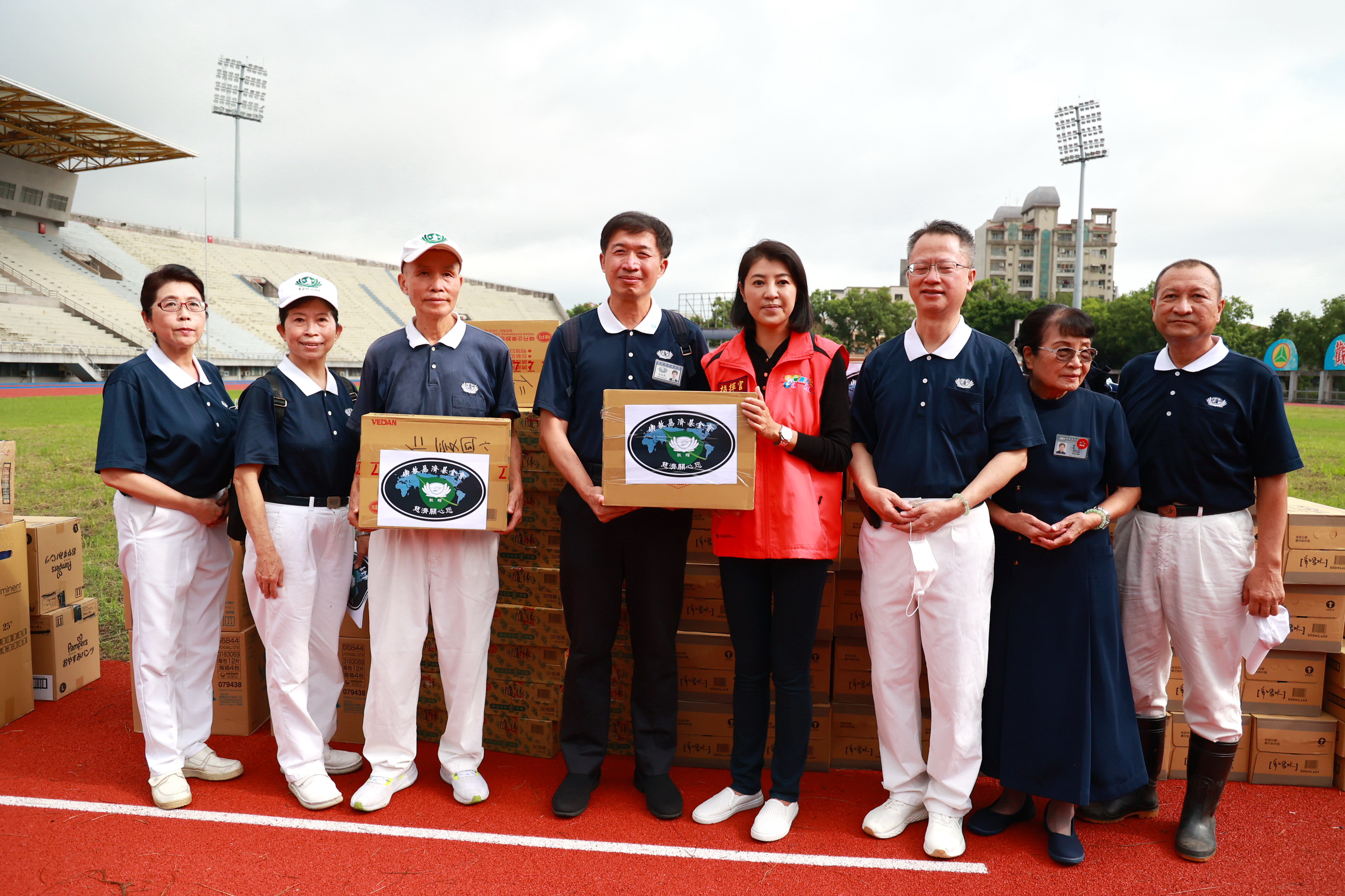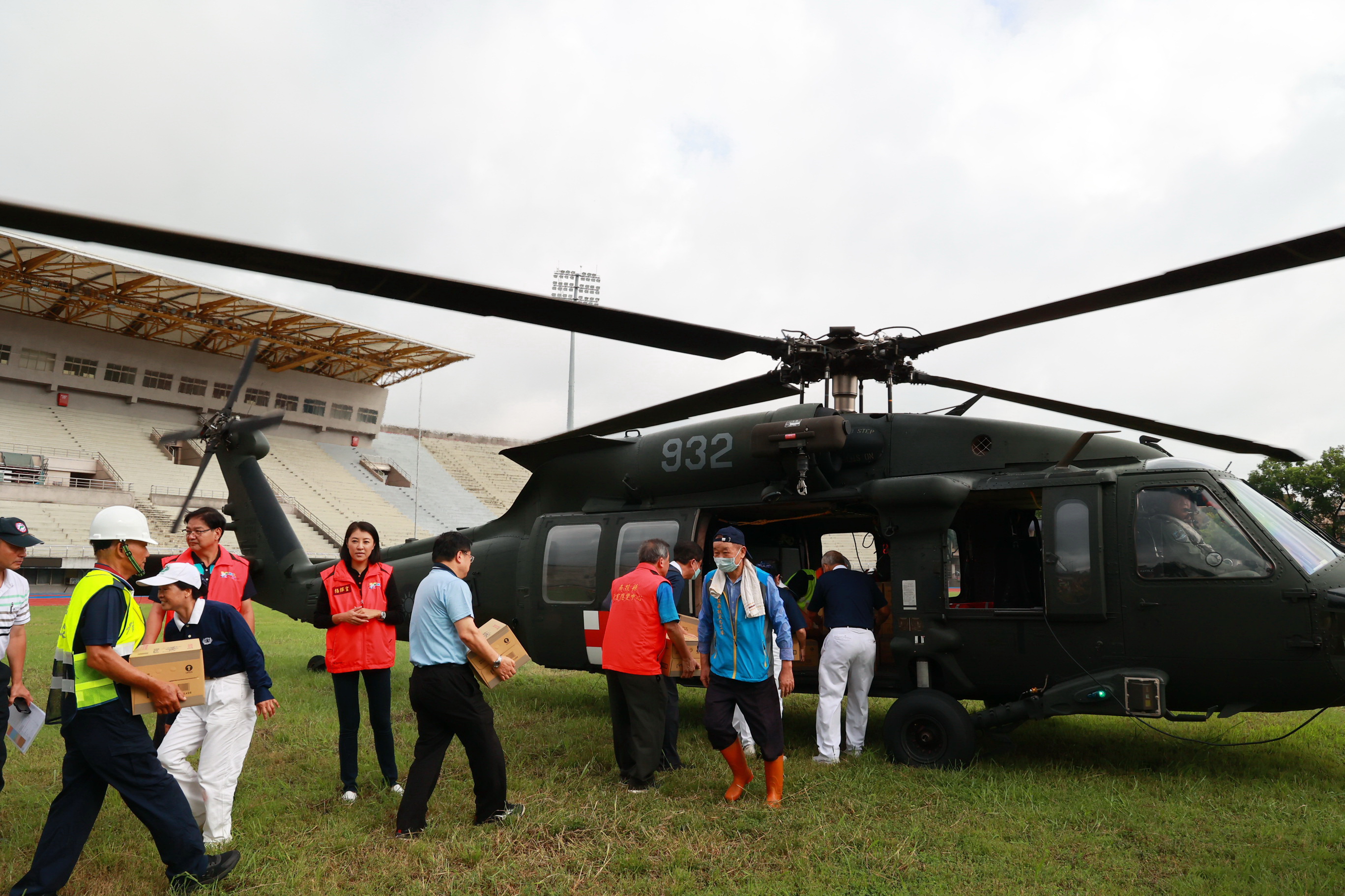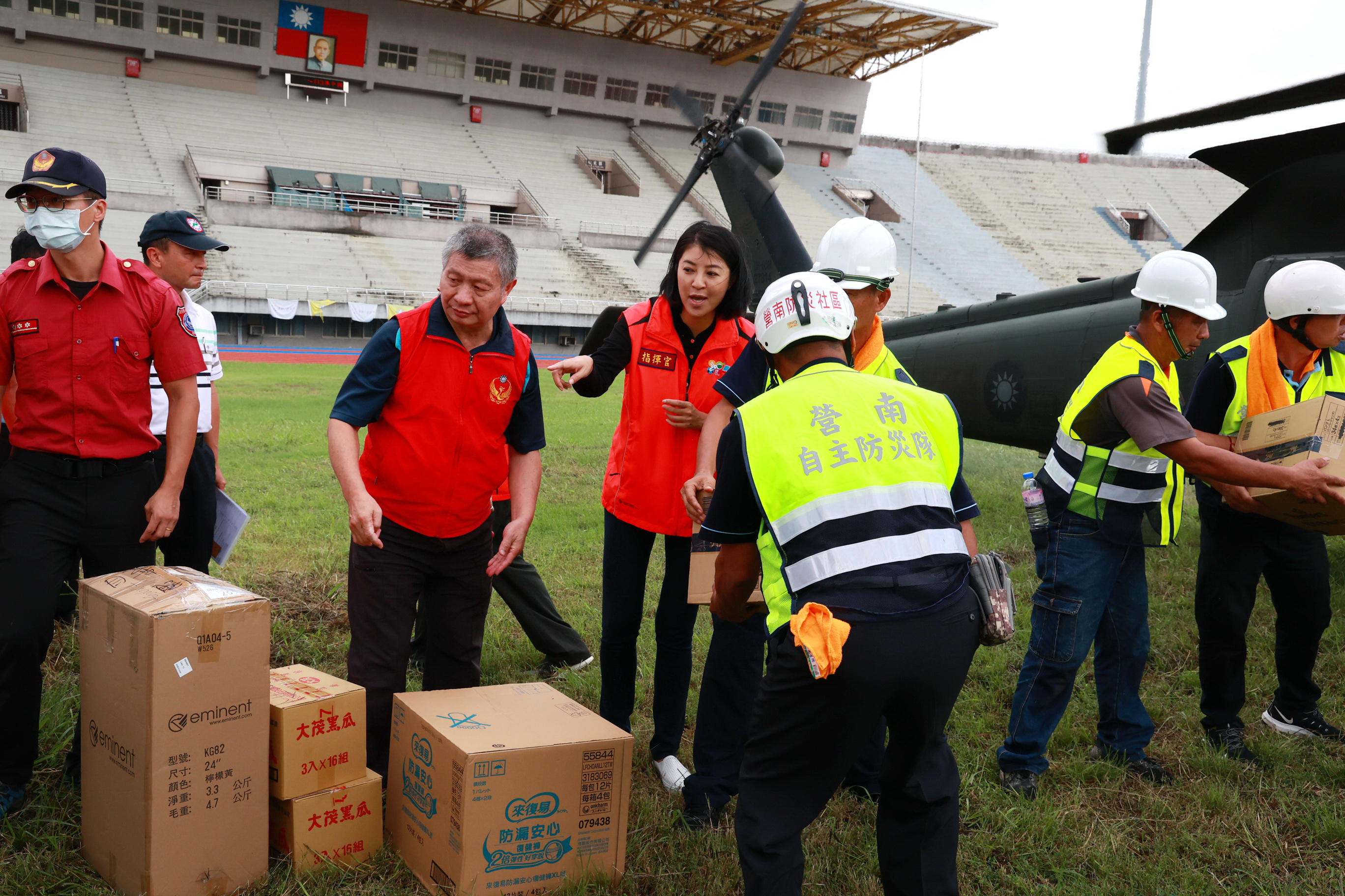 縣長許淑華6日一早特別到縣立體育場關心物資籌備與空投情形,她感謝慈濟志工、及南投市的嘉和與營南社區共出動近50名志工,在現場幫忙包裹清點物資,並協助送上直升機,在大家分工合作下,讓直升機的物資運補過程迅速順暢。