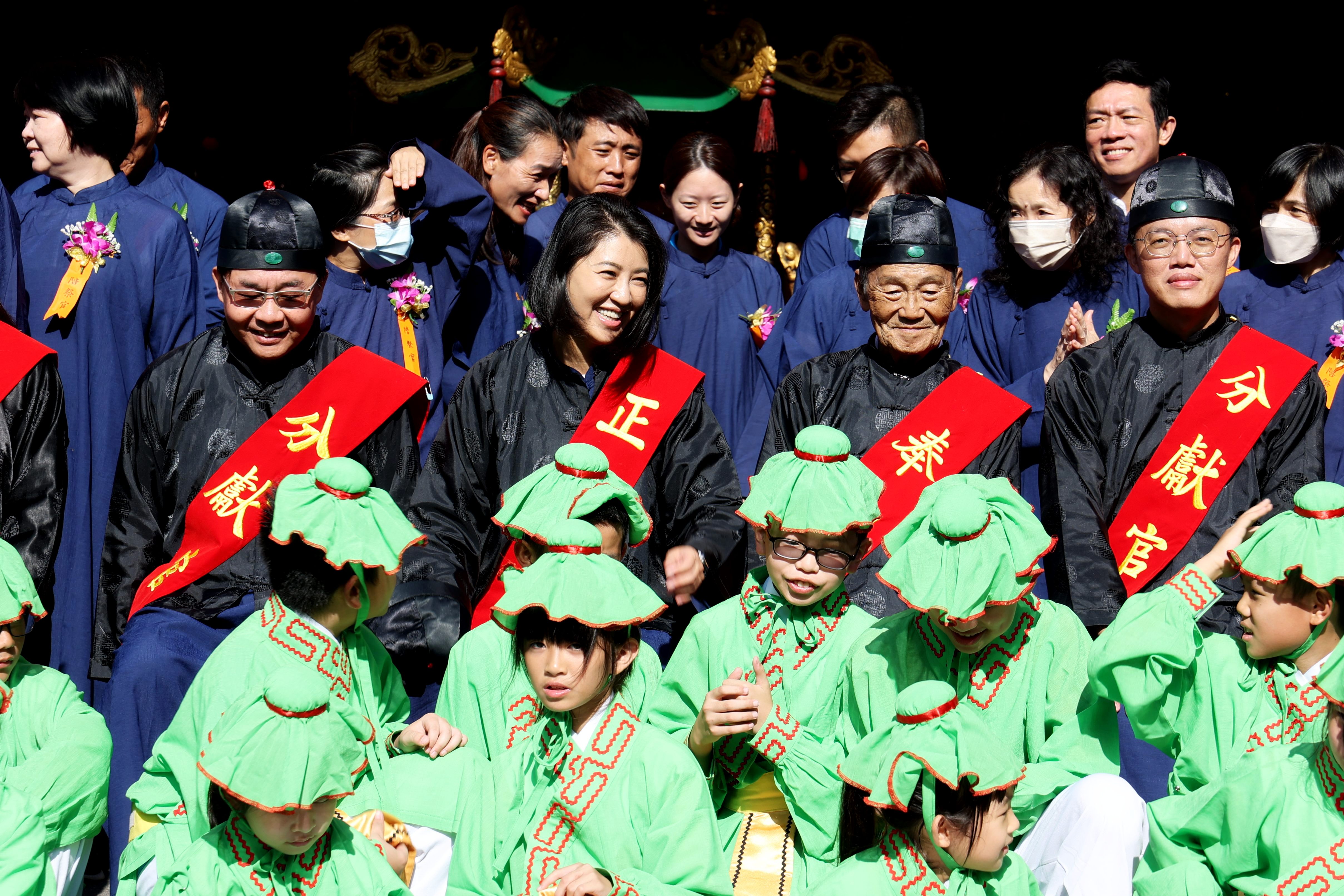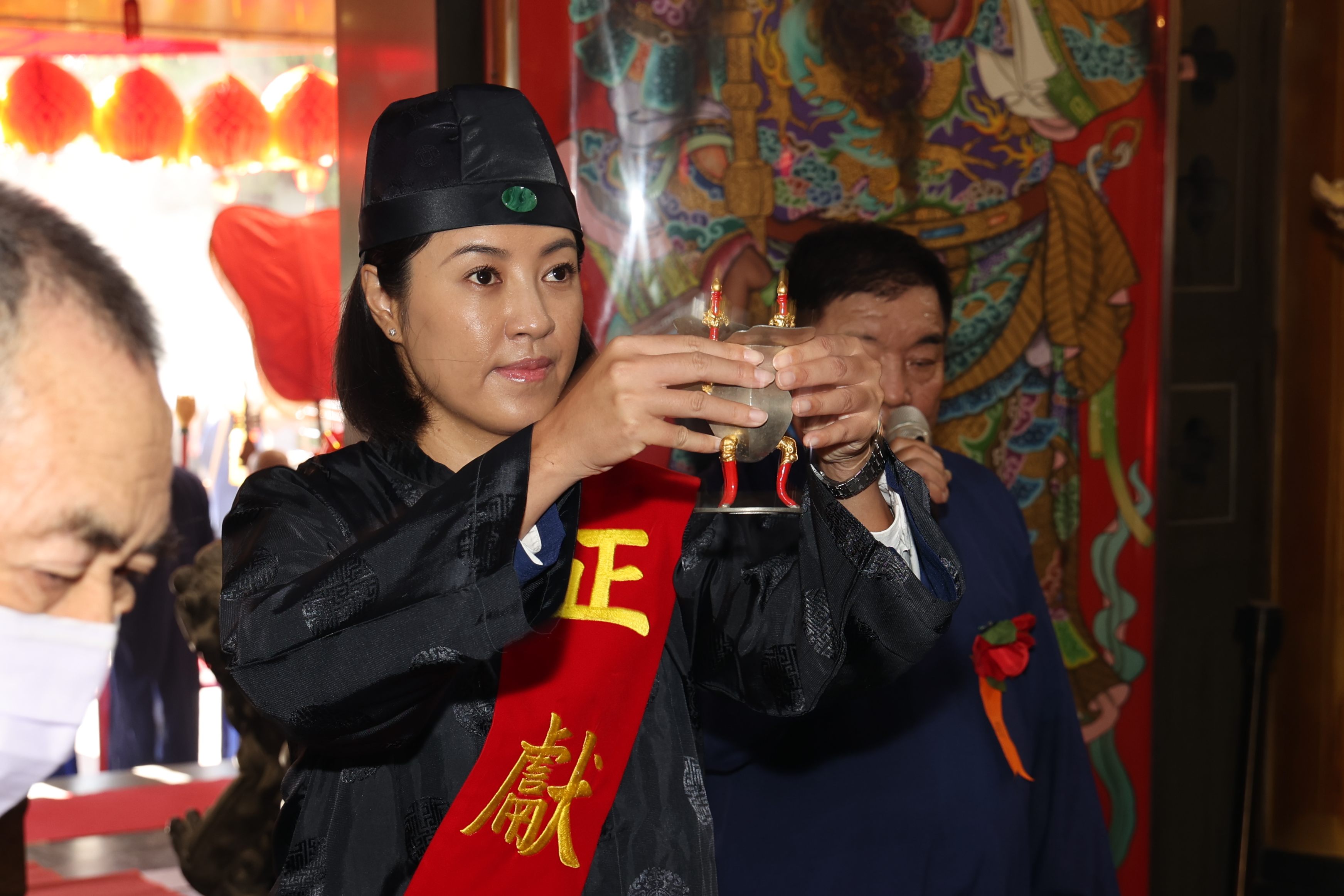 許縣長指出,今天欣逢關聖帝君1864週年誕辰,為追思先賢及弘揚武聖關公忠孝節義精神,在惠德宮董事會及全縣各界合力下,舉行盛大的三獻釋奠大典來向武聖關公賀壽,這項祭典遵循古儀,發揮了傳承祭典教化人心的真諦,舉凡鐘鼓聲、六佾舞的奏演,希望都能讓參加民眾,不忘先賢之德,牢記古禮儀典,她特別向關聖帝君祈求,庇佑南投縣闔境風調雨順、社會祥和安康、國奉民安。