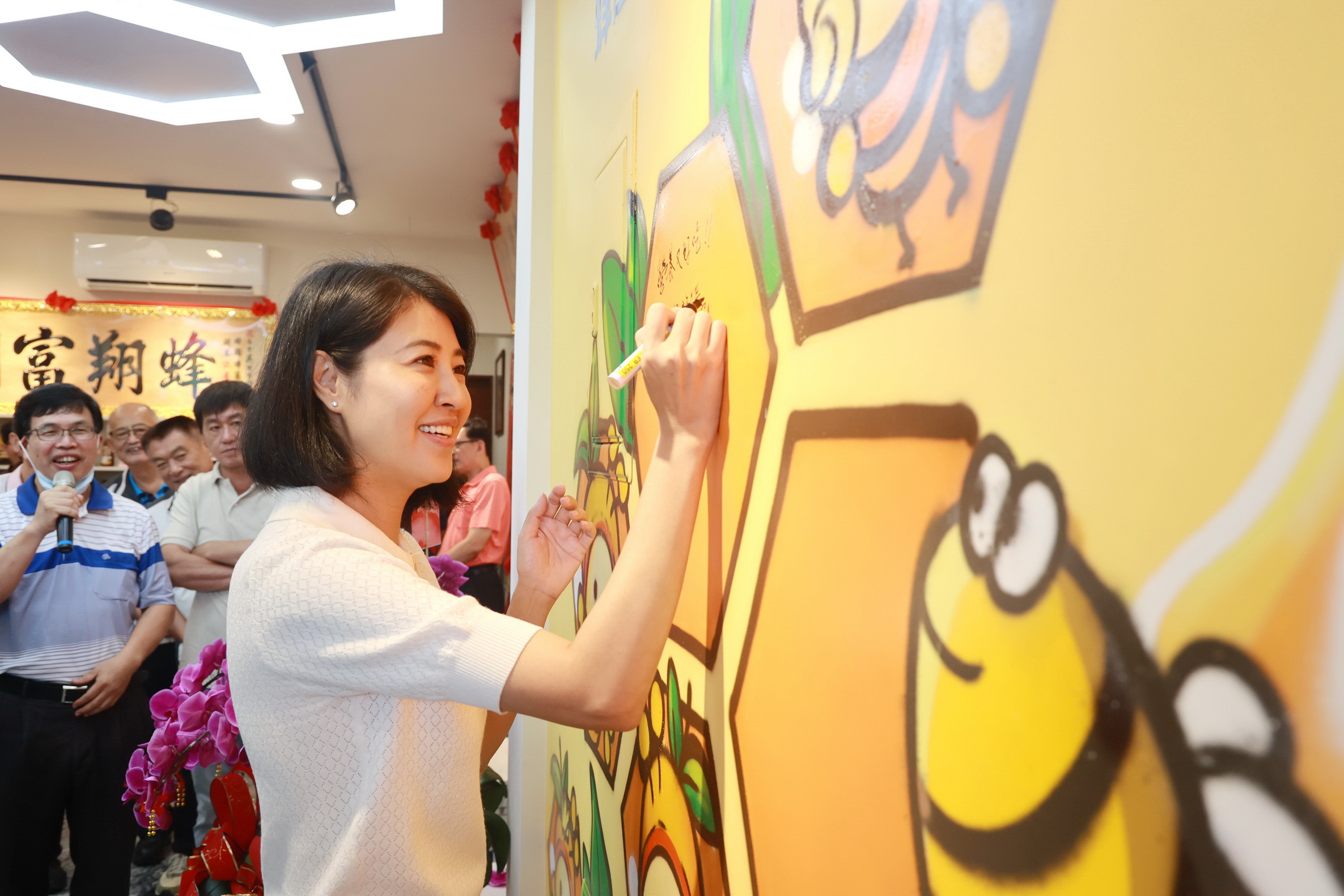縣長許淑華13日上午前往中寮鄉蜂國蜂蜜莊園出席展售門市開幕茶會,祝賀董事長吳俊賢、總經理劉京妮伉儷,開展養蜂事業新里程,並頒贈特等獎匾額給劉總經理,表彰其榮獲112年全國國產蜂蜜品質評鑑荔枝蜜特等獎殊榮,許縣長除祝賀該莊園業績長紅外,也期許吳董事長伉儷繼續努力,將蜂國蜂蜜莊園發揚光大,引領中寮鄉養蜂業再創高峰。