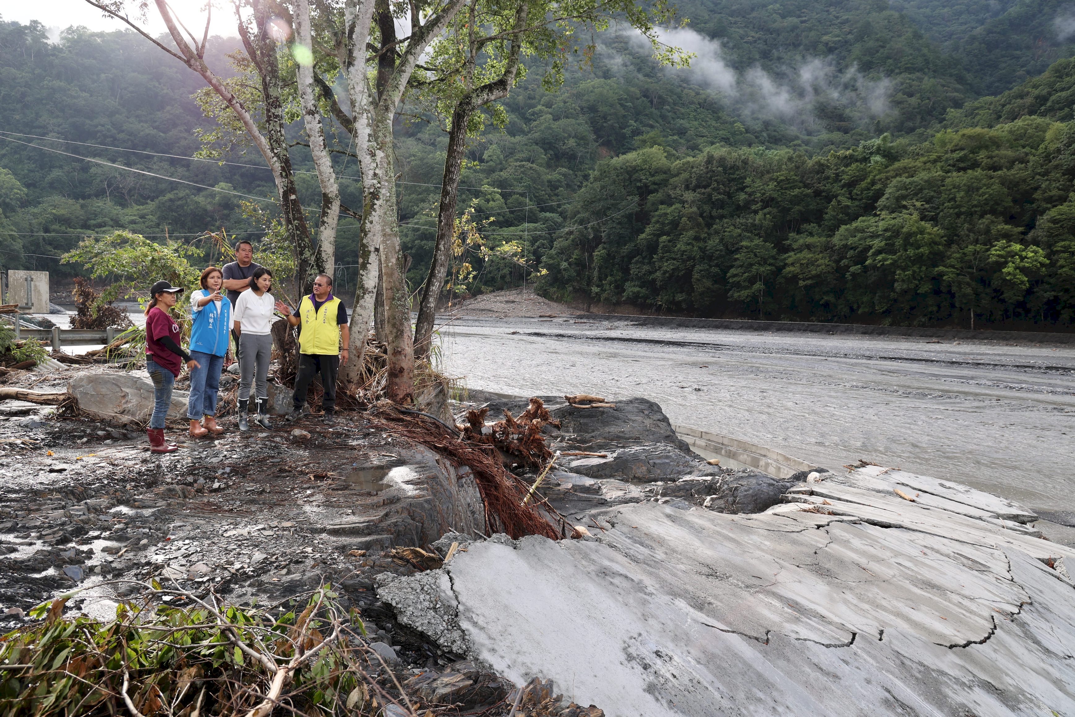 最後,許縣長一行冒險挺進親愛村松林部落松林橋濁水溪上游右岸的「親松外環道」勘查,許縣長看到原來的道路,因臨溪護岸遭沖毀上百公尺,已經幾乎消失不見,不僅有一座臨溪的貨櫃屋受災隨波逐流消失無蹤,大片路旁的農園也嚴重流失或遭土砂埋沒,許縣長說,這處護岸必要優先加以保護,否則再遇大洪水,就不只是道路受損,甚至會危及廣達三分之二的松林部落,她會立即責成縣府工務處優先提報災修復建工程,爭取徹底加固堤防改善,確保部落村民家園安全。