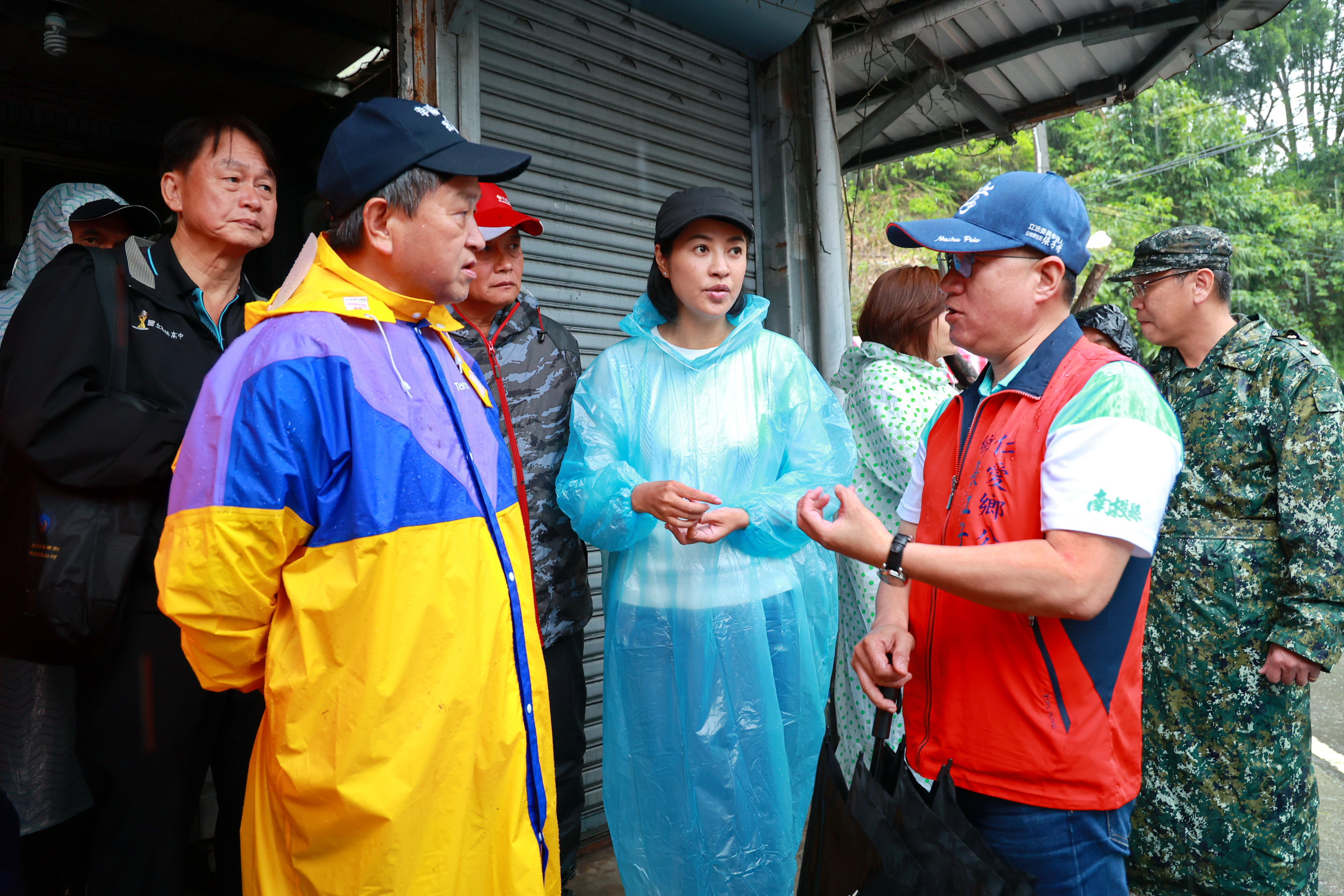 許縣長也慰問了春陽村一家也遭土石流嚴重損壞的多肉植物特色農園,看到國軍弟兄冒雨仍賣力的動用機械及徒手清土挖泥,連連向章指揮官及所有辛苦的國軍弟兄致謝。