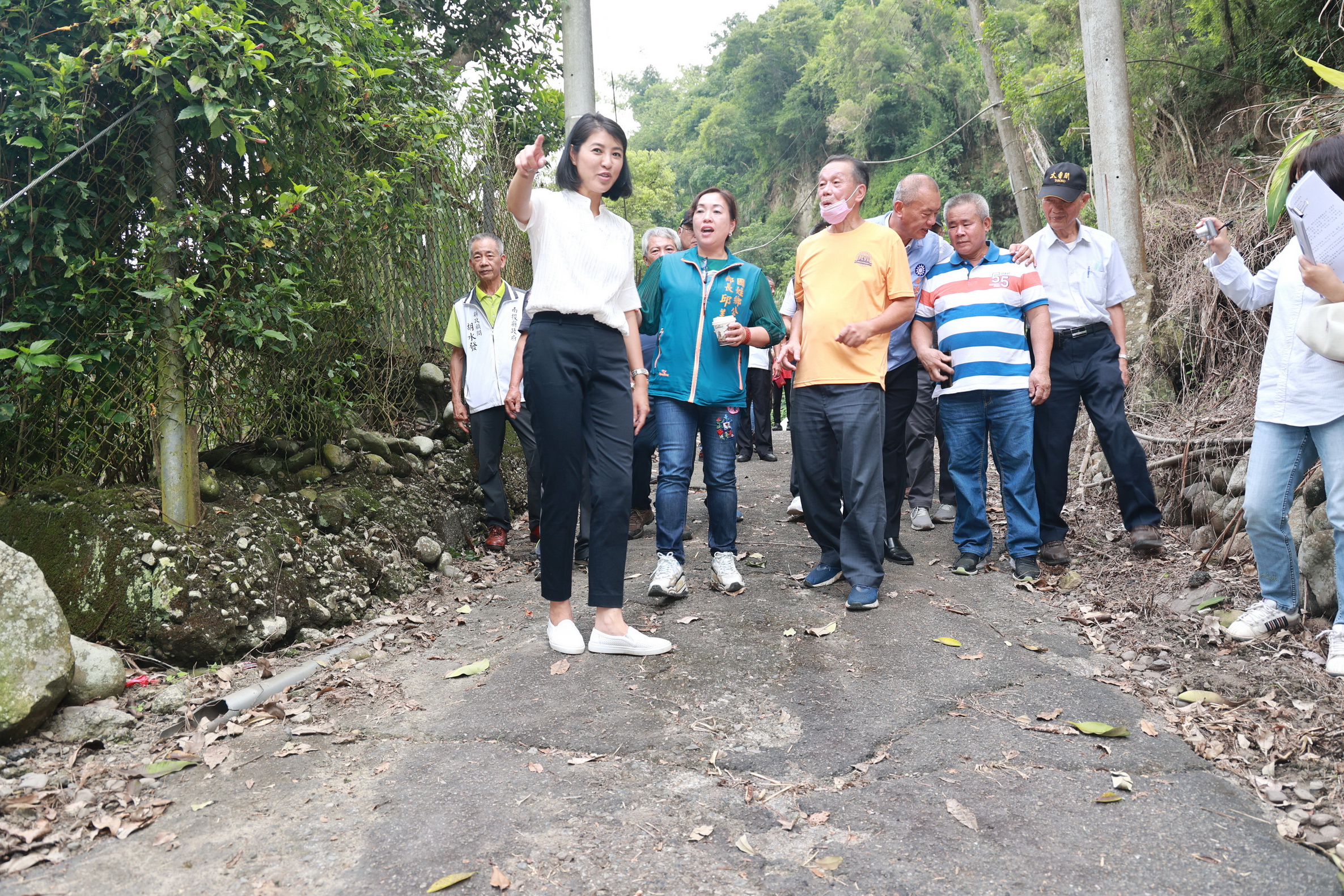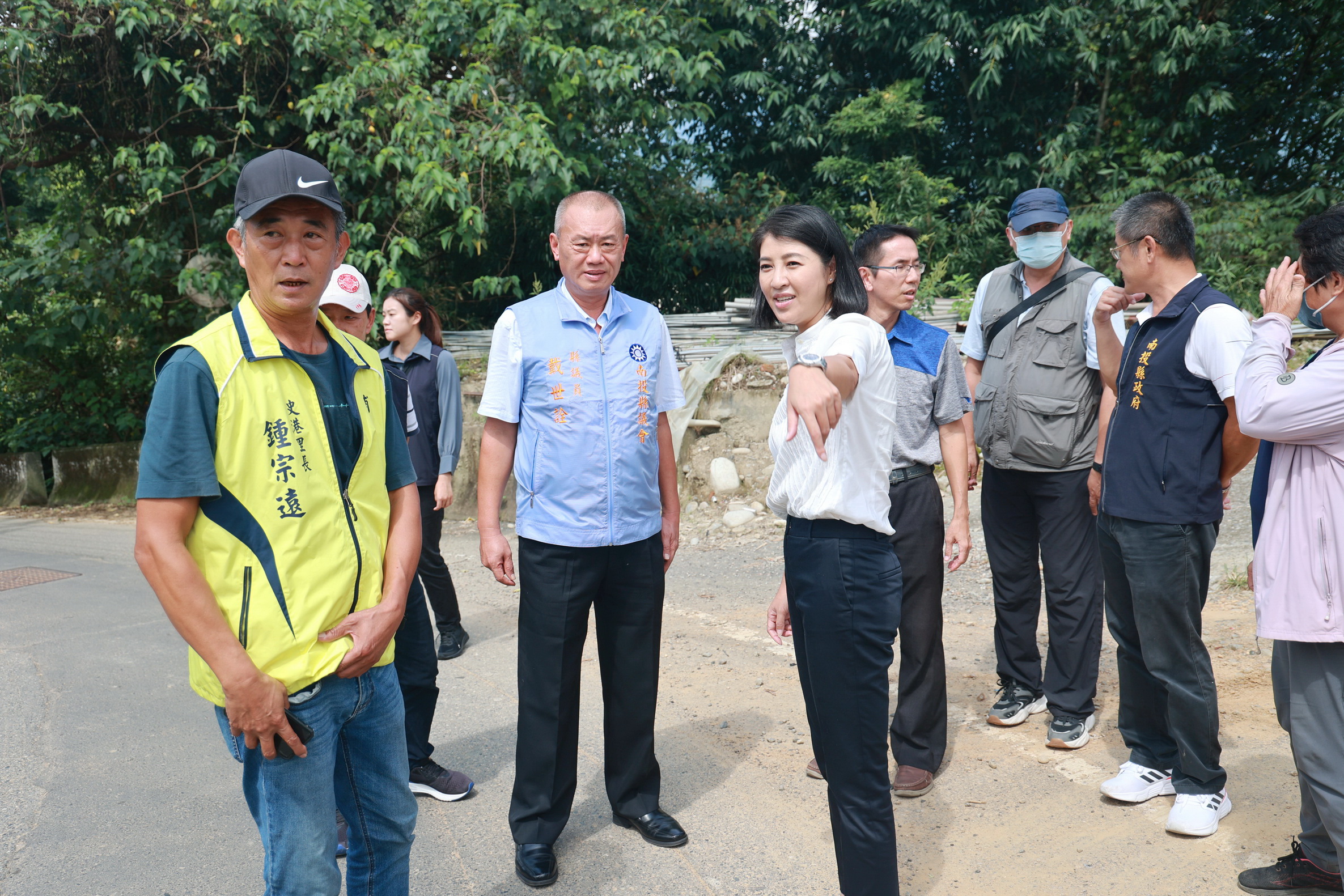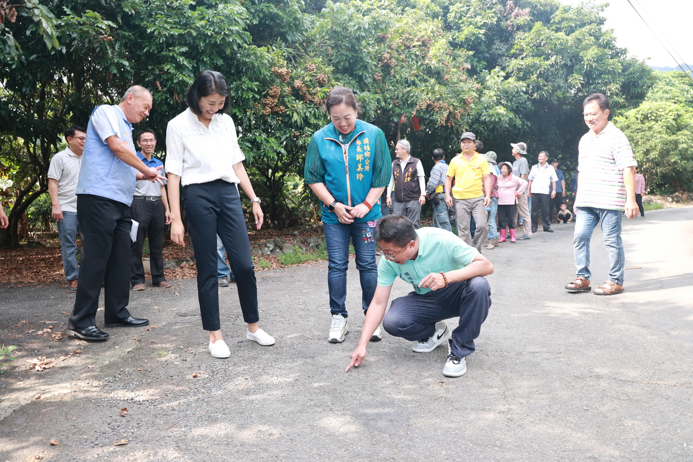 許縣長說,卡努風災造成本縣仁愛鄉重大災情,縣府在第一時間與公所攜手投入救災,搶通道路,也在中央及國軍協助下,幫助受災社區復健家園,農損及災損也提報中央爭取補助復建。為了維護通行安全,縣府對於其他鄉鎮有安全之虞的老舊農路也加強評估改善。國姓鄉以農業為主,村落多在山區坡地,居民出入及農產運輸交通均需仰賴農路,路面品質及安全至關重要,因此特別針對柑林村、福龜村、乾溝村、長豐村、長福村等5村8條有急迫改善需求農路進行會勘改善,經會勘後,除原先評估路段外,發現周邊也有需要一併改善的地方,即當場指示工務處追加預算併案設計發包,總經費達1200萬元規模,就是希望能提供鄉親更安全平穩的通行運輸品質,維護民眾安全。