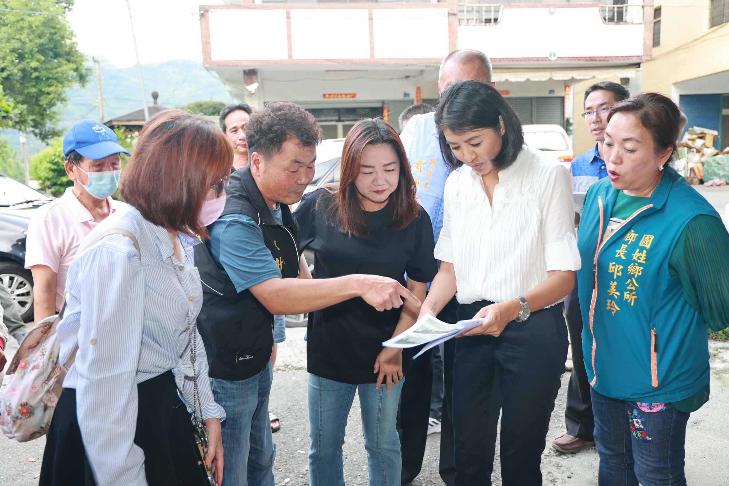 縣長許淑華25日下午前往埔里鎮永安路及國姓鄉8處農路,經實地勘查,9處待改善路段均年久失修,路面龜裂破損嚴重亟需儘速改善,維護通行安全,許縣長指示工務處盡快設計發包改善,總經費約需1200萬元。立委馬文君、縣議員戴世銓、國姓鄉長邱美玲、國姓鄉代表會主席賴權藝也到場關心。