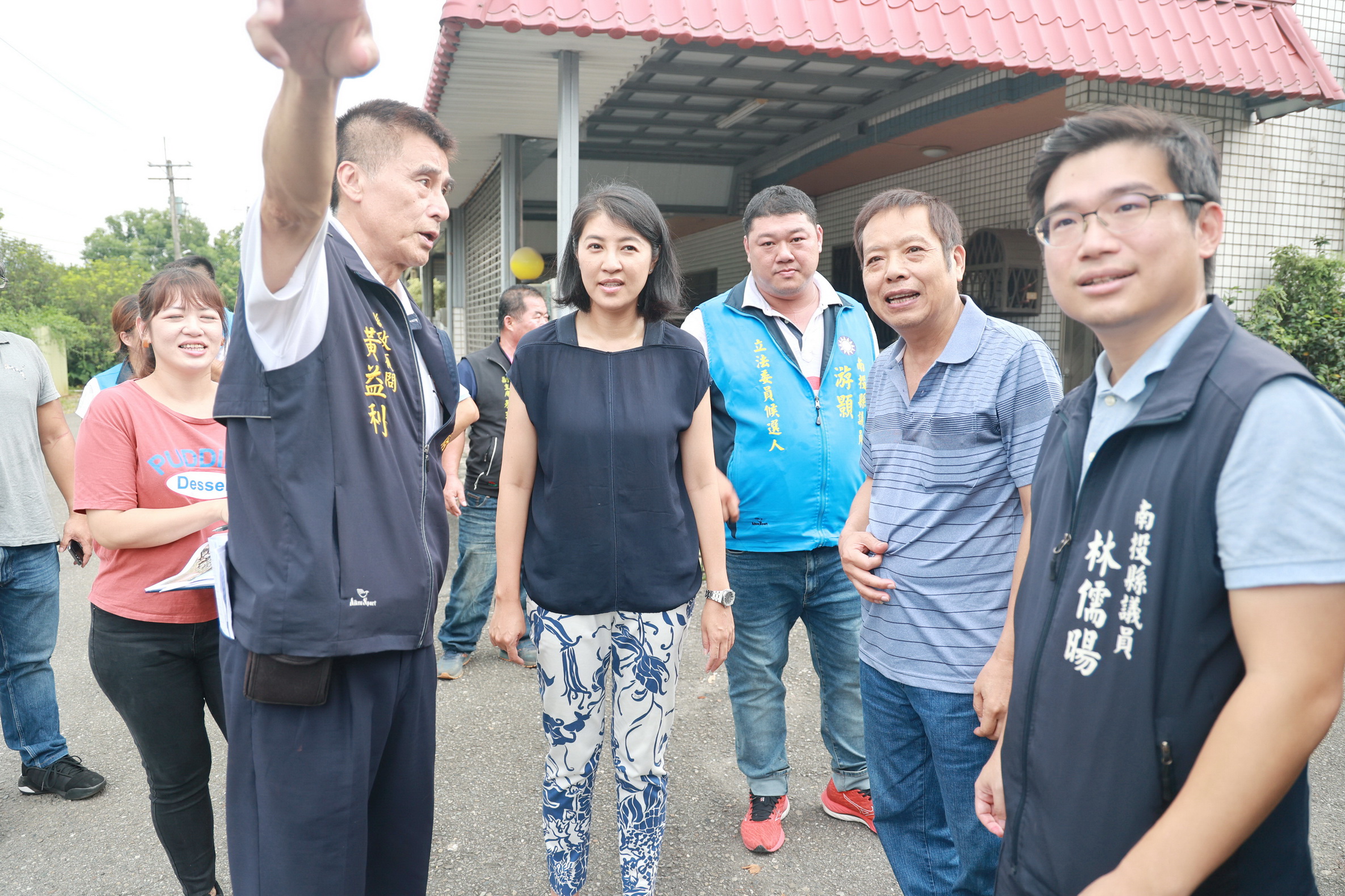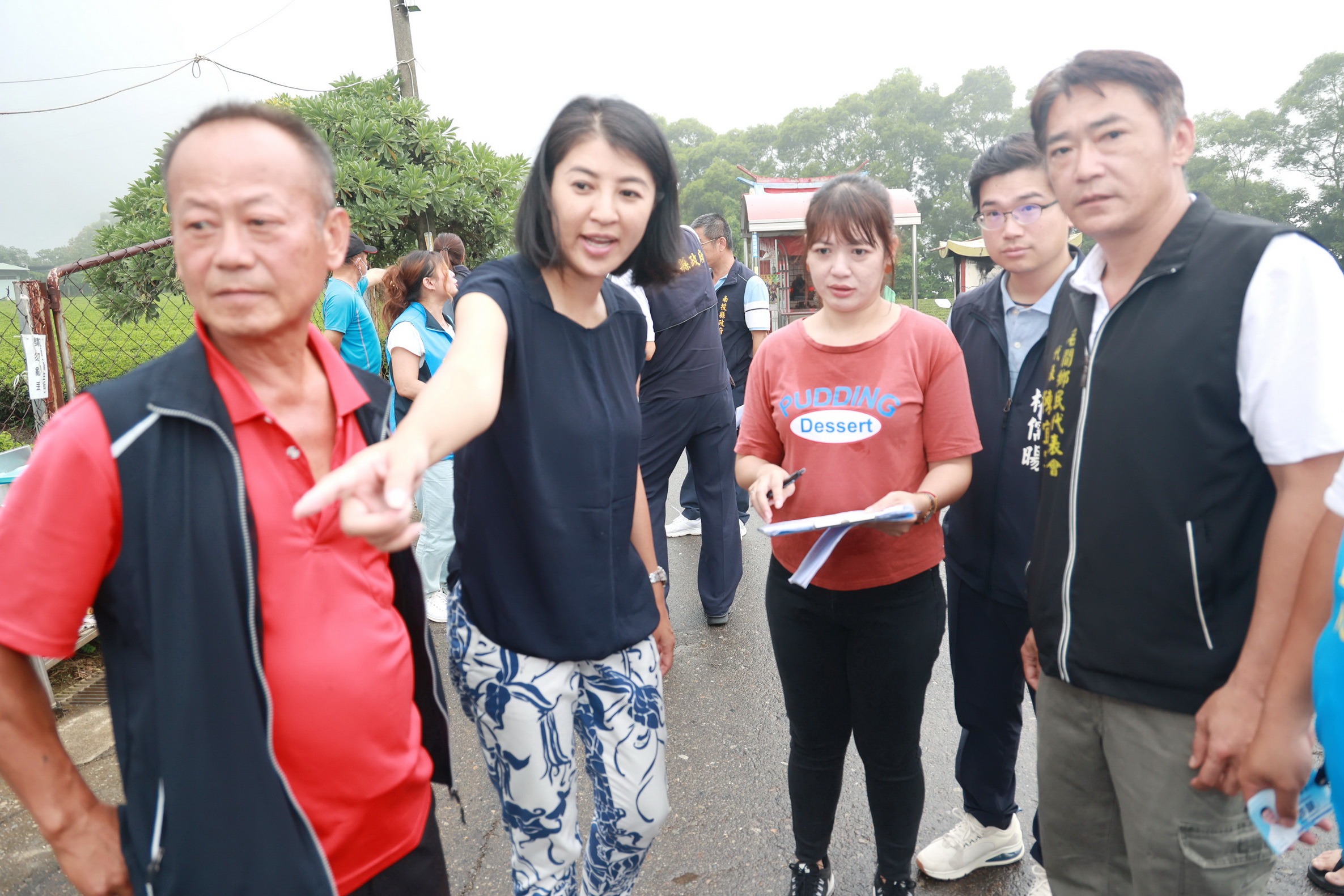 另大庄村大廈巷86-1號宅前路面老舊破損嚴重影響用路安全,預計將簽核65萬元經費重新鋪設瀝青混凝土封層,經民眾現場反應,道路入口處茶園約100公尺,未施設護坡,導致雨水沖刷土石淤積路面影響行車安全,改善路段也因無排水設施,逕流水混雜農地土砂淹沒道路及民宅,亟待改善,許縣長了解後,該項路面改善案暫時保留,另行安排現勘後再行研議。