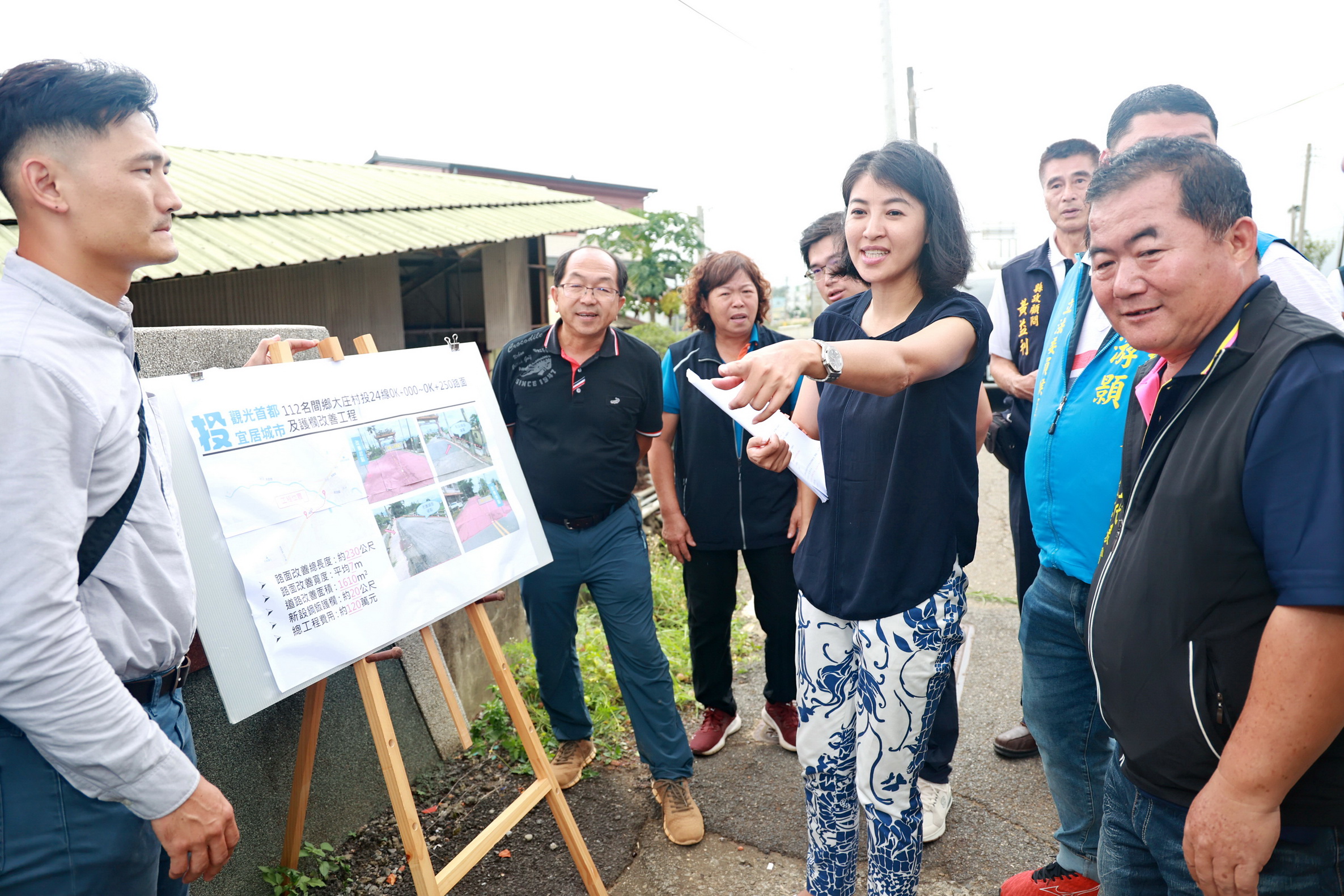 大庄村投24線0K+000~0K+250路面老化龜裂嚴重,影響用路安全,既有護欄高度過低,功能不彰,亟待改善,工務處將儘快發包改善,所需經費約需120萬3,000元,另村長楊碧雲也針對道路右側既有鋼管護欄老舊鬆脫,影響安全及觀瞻,建議改善,許縣長仔細勘查,確有改善必要,指示工務處追加預算併案改善,增加經費約需50萬元。