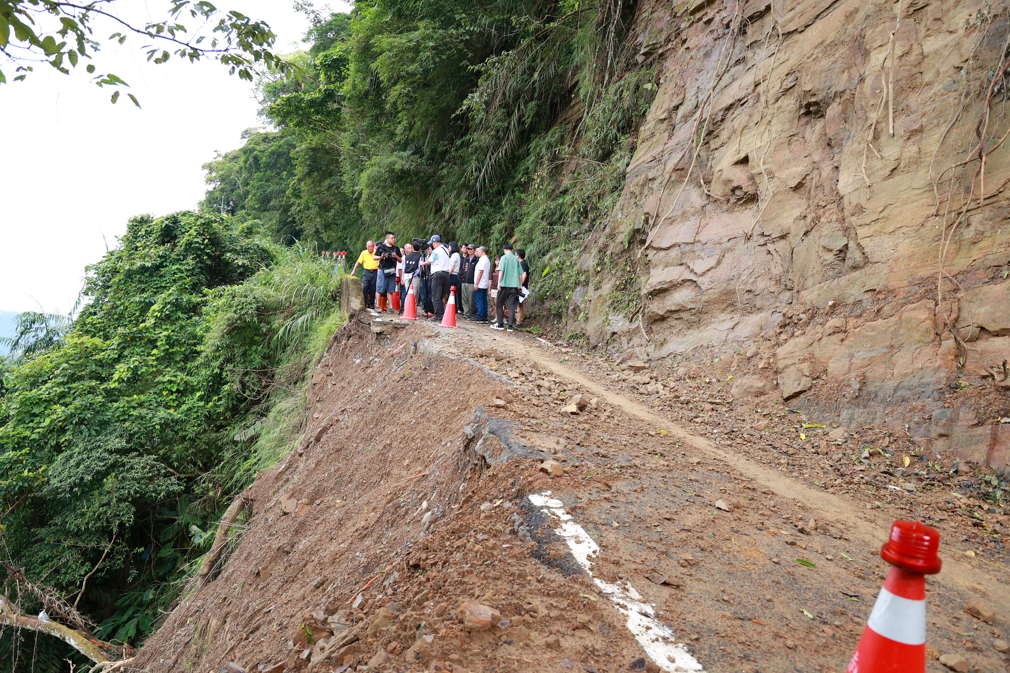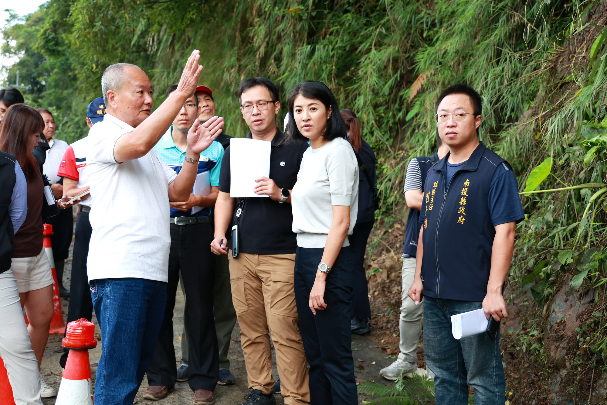 縣長許淑華12日前往鹿谷鄉會勘4條道路改善工程,其中通往德興瀑布的山豬湖產業道路因日前颱風豪雨導致山坡土石崩落及下邊坡路基掏空,目前已由鄉公所進行災修搶通工程,許縣長表示會協助公所進行後續的道路改善,並納入颱風災害復建工程,向中央爭取經費復原。 許縣長在竹林村村長林宏山、鄉代表蘇聰明、柯彩玲等人陪同,前往山豬湖產業道路會勘了解道路受損狀況,現場也有多名農友到場關心。蘇代表表示,此條農路為鹿谷鄉重要的農產運輸產業道路,每天都有許多農友進出耕作,目前雖然暫時搶通,但下邊坡路基塌陷嚴重,路面狹窄實在很危險,希望縣府能協助盡快改善。 許縣長在聽取各界意見後表示,目前鄉公所正在研議此路段的復建工程,暫時會以打鋼樁方式穩定下邊坡,以先讓小貨車可以通行為原則,在經費上縣府會來協助;未來則是以提報中央災修復建工程爭取經費,施做長期且更穩定的道路改善工程,至於民眾反映沿線的小型路面改善工程,縣府也會一併考量和改善。 隨後許縣長則是前往小半天投55線旁的光復路會勘排水溝加蓋工程,縣議員游顥轉達民眾反映的陳情意見,游議員表示此路段只剩此處約20公尺長的道路排水溝未加蓋,希望縣府能盡快改善。對此,許縣長表示同意,兩線道的大馬路只剩該路段排水溝未加蓋,確實不夠完善,也會造成當地民眾出入危險,將責由縣府工務處盡快施作改善,初估經費約20萬元。 最後,許縣長則是在縣議員吳瑞芳、彰雅村長余靜芬的陪同下前往凍頂農路興產段會勘,了解道路改善工程,余村長表示,此路段前半段已有鋪設PC路面,但是只做到一半,還有約150公尺長的路面仍是泥土路,希望縣府能協助改善,將路面重新鋪設,方便茶農及車輛進出。 許縣長表示,凍頂農路興產段周邊皆為茶園,有10多位茶農反映此農路後半段路面沒鋪,下大雨就會積水嚴重且泥濘不堪,甚至無法通行,進出確實很不方便,縣府會盡快改善,初估工程經費約115萬元。