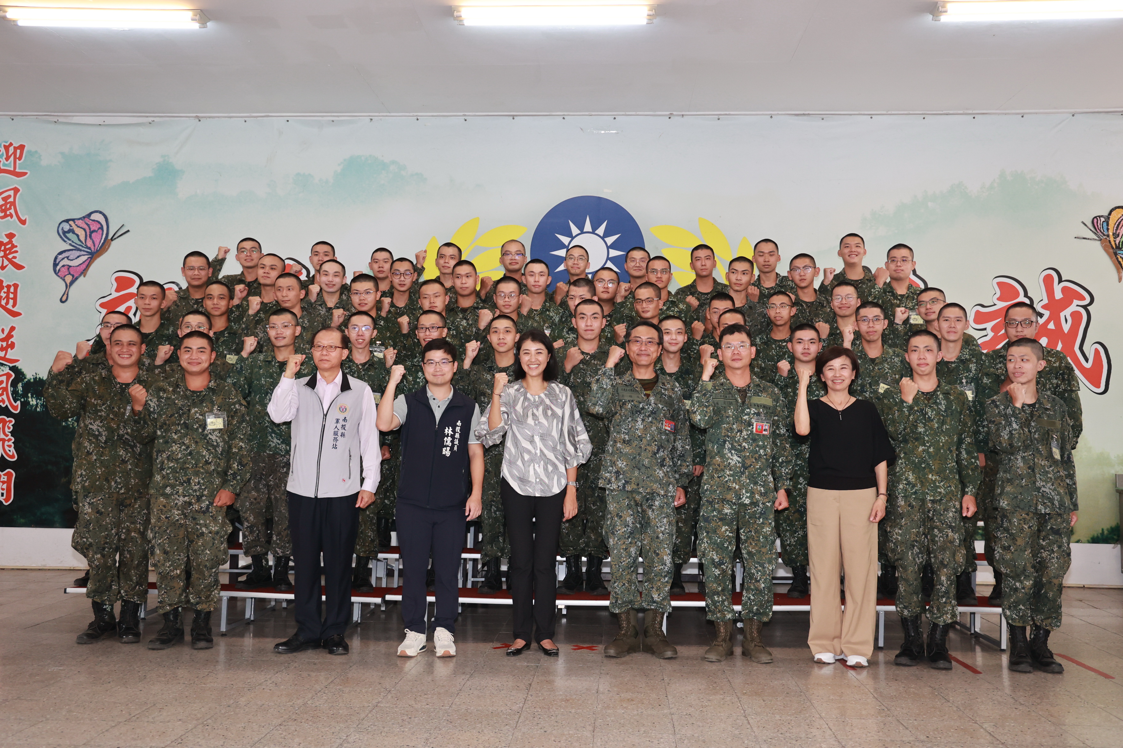 許縣長指出,退伍後回回歸社會也不用擔心,縣府除積極推動各項建設,打造宜居城市,開發產業園區招商創造就業機會,完善青年政策鼓勵青年返鄉創、就業外,為了幫助社會青年就職,每年也會舉辦多次就業博覽會,如果大家有需要,退伍後可透過博覽會找到適合自己的工作,也期盼大家出社會後,能盡量留在南投發展,縣府正在努力的創造就業機會,陸續開發微型工業園區、福興農場等,並將興建青年住宅提供年輕人能輕鬆購屋,希望能有好的發展環境,讓更多人留在南投發展。