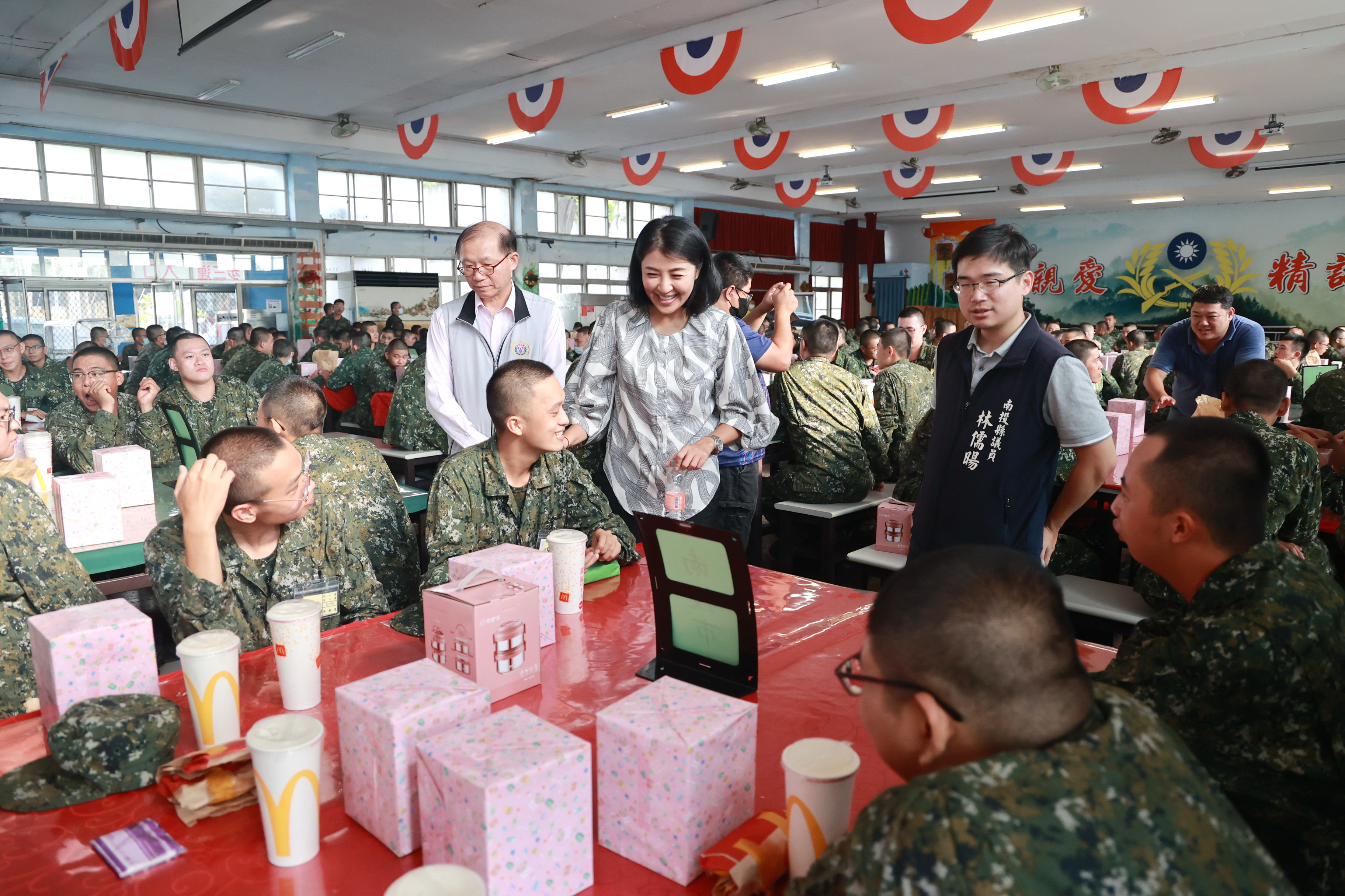 縣長許淑華22日至嘉義中坑陸軍步兵第257旅營區勞軍,與十軍團第五作戰政戰副主任熊碩成上校、第257旅政戰主任吳立德上校一同探視第183梯次縣籍常備役男,致贈加菜金2萬元,由吳上校代表接受,縣府民政處也準備麥當勞給役男享用。許縣長除感謝隊部各級長官,對本縣子弟兵生活上的照顧,也逐桌與各鄉鎮役男寒暄,詢問是否能習慣規律的軍中受訓生活及未來人生規劃,詳談縣政規畫及青年政策,過程溫馨。