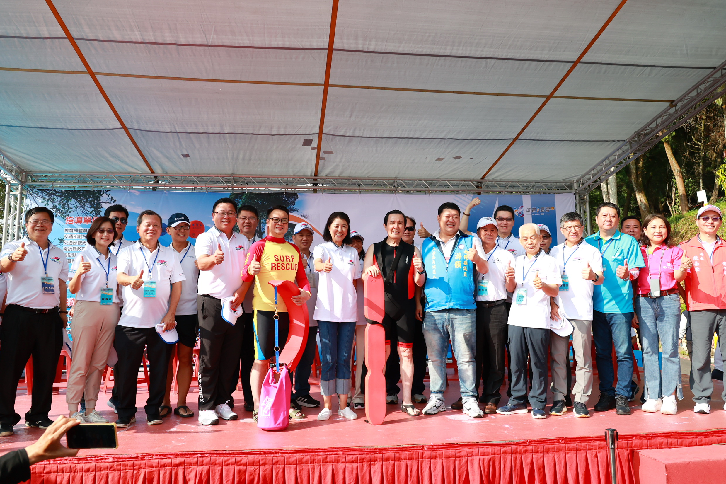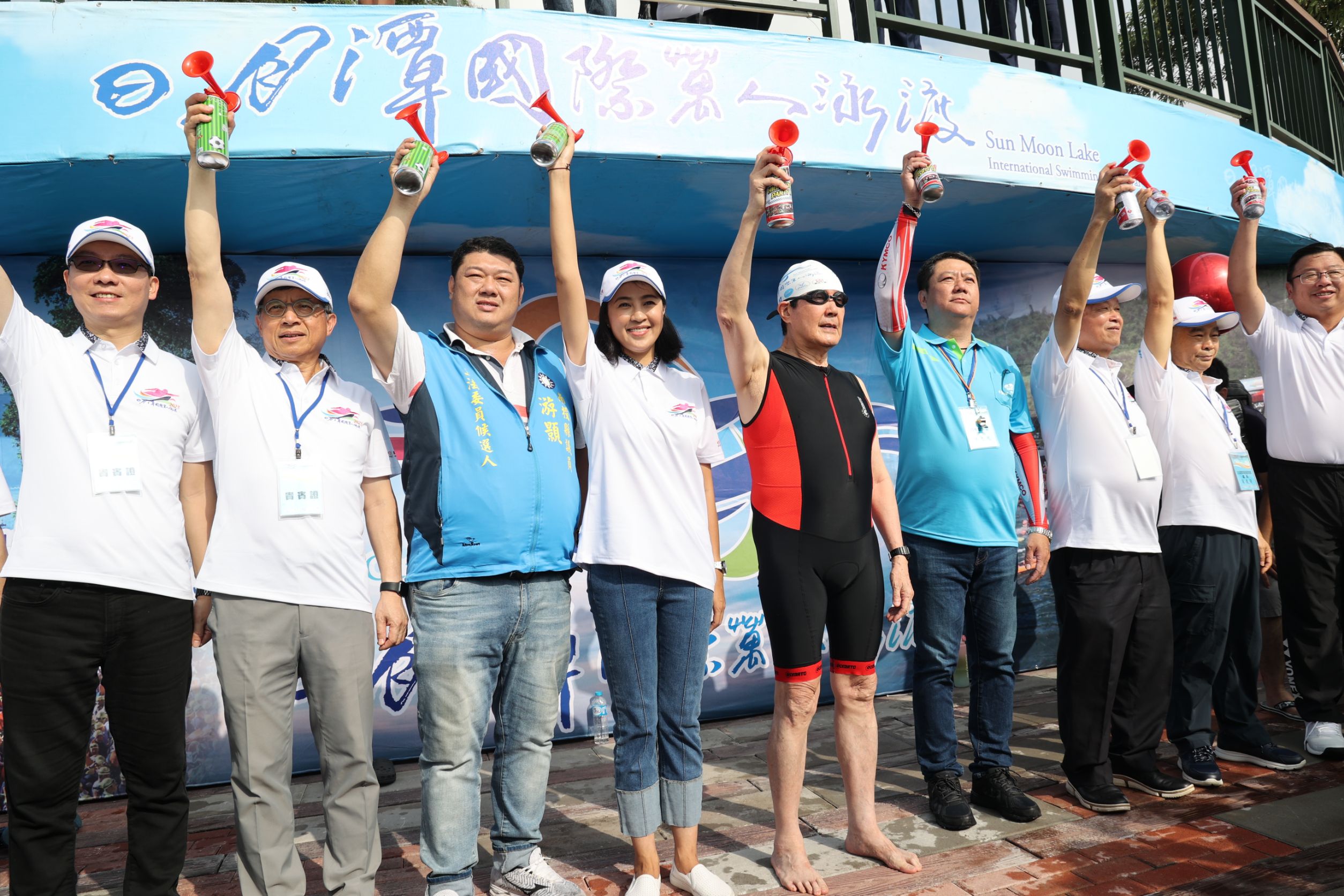 許縣長表示,深受國內外泳士選手喜愛的日月潭萬人泳渡,今年吸引了2萬4千多位報名參加,歡迎全國各地泳客及所有報名隊伍團體一起響應全民泳起來運動,縣府也配合教育部體育署推動運動i臺灣全民運動計畫,打造臺灣國際運動品牌賽事,讓日月潭萬人泳渡活動成為名副其實的世界級體育活動,可為南投帶來運動觀光產業及經濟商機發展。她也特別感謝國內各大企業贊助大會需求物品及活動相關設備,尤其是維他露股份有限公司、新光人壽等企業單位長期以來的熱情贊助。